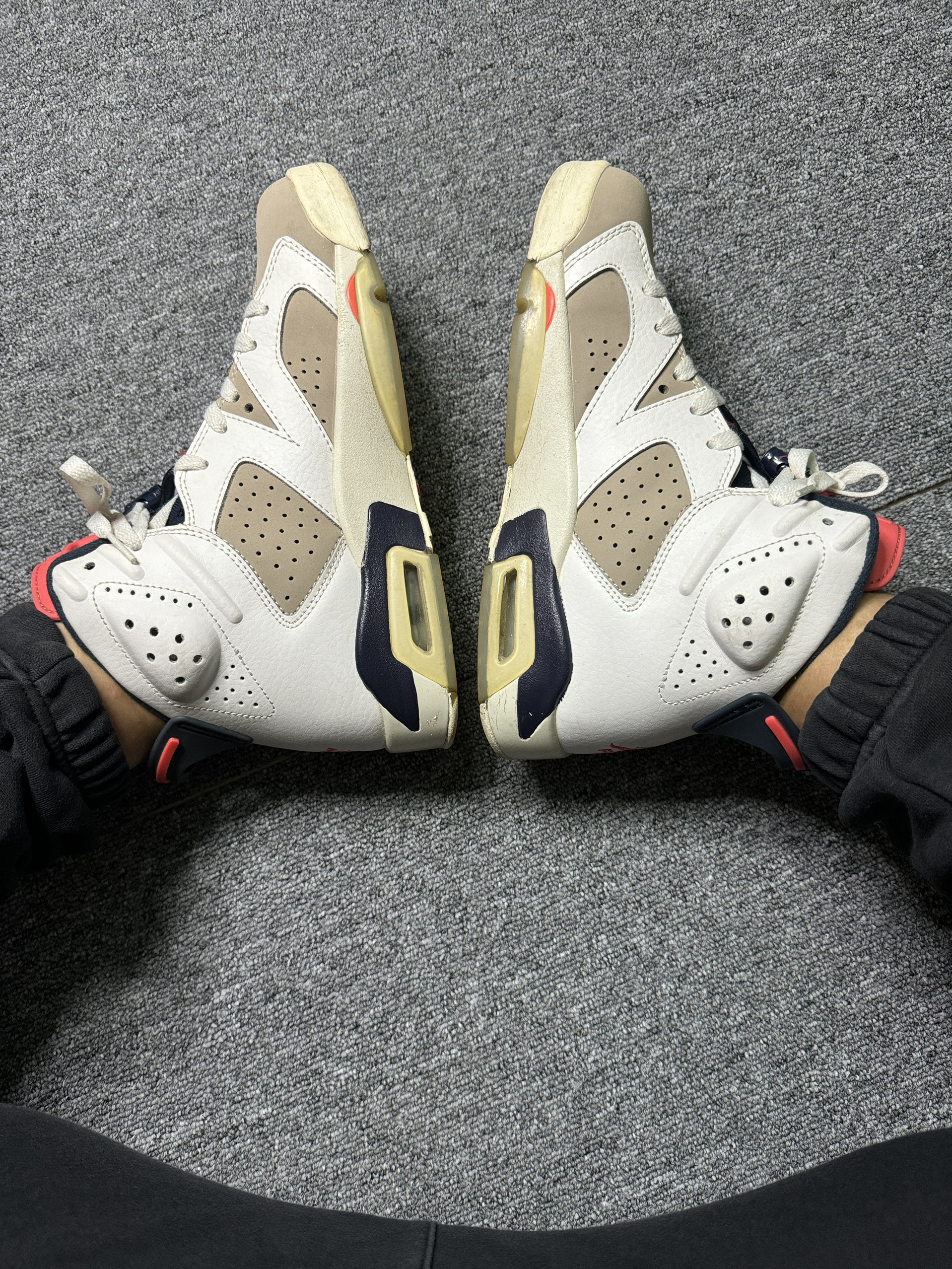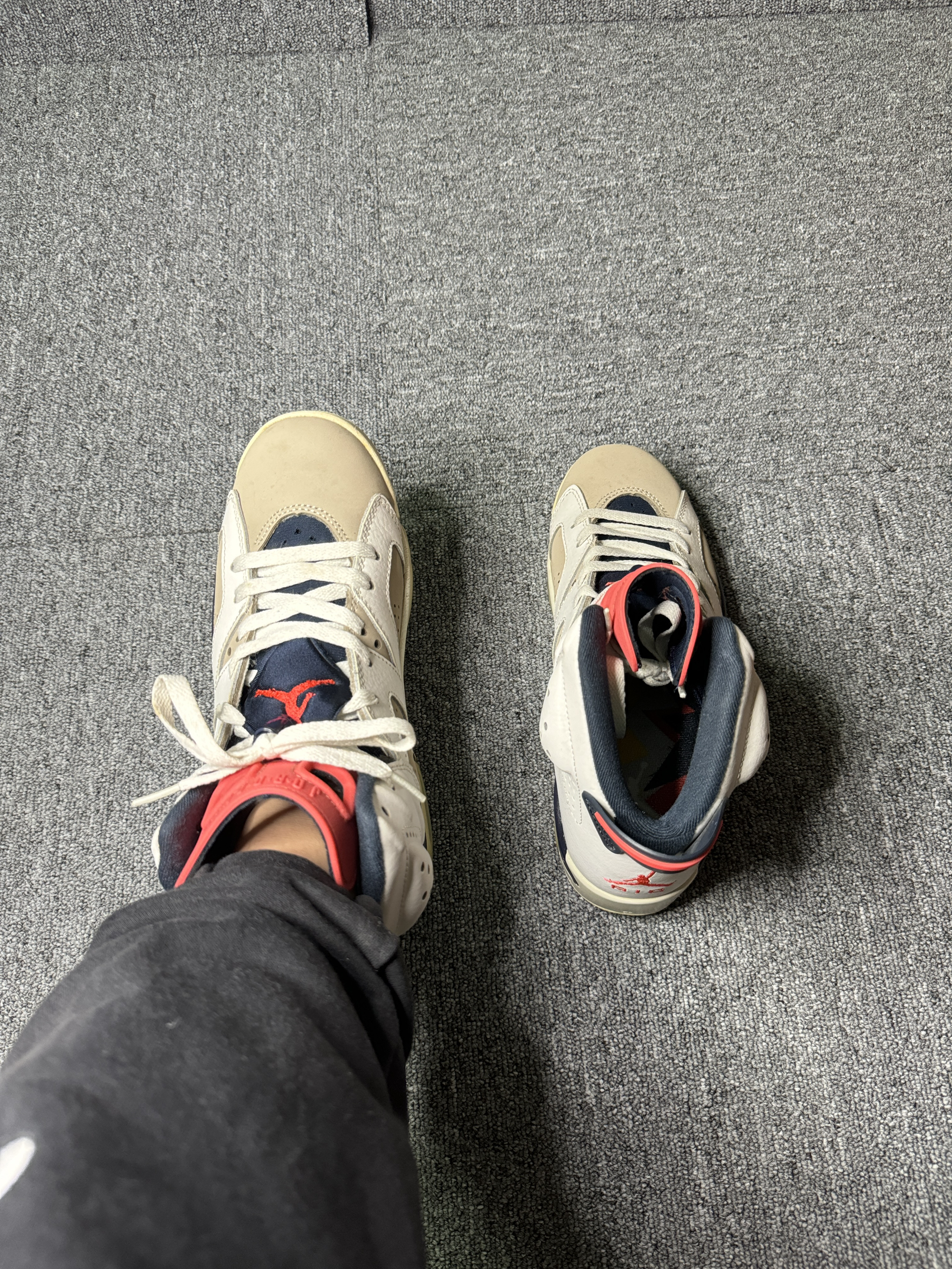 男孩子的鞋柜总得有一双AJ6吧 这双鞋包裹性强,脚感舒适! 高帮鞋型,增高明显! 颜值高👍🏻👍🏻👍🏻 搭配工装裤或者运动裤都是不错的选择 尺码标准脚背厚或者前掌宽的小伙伴建议加大半码!
