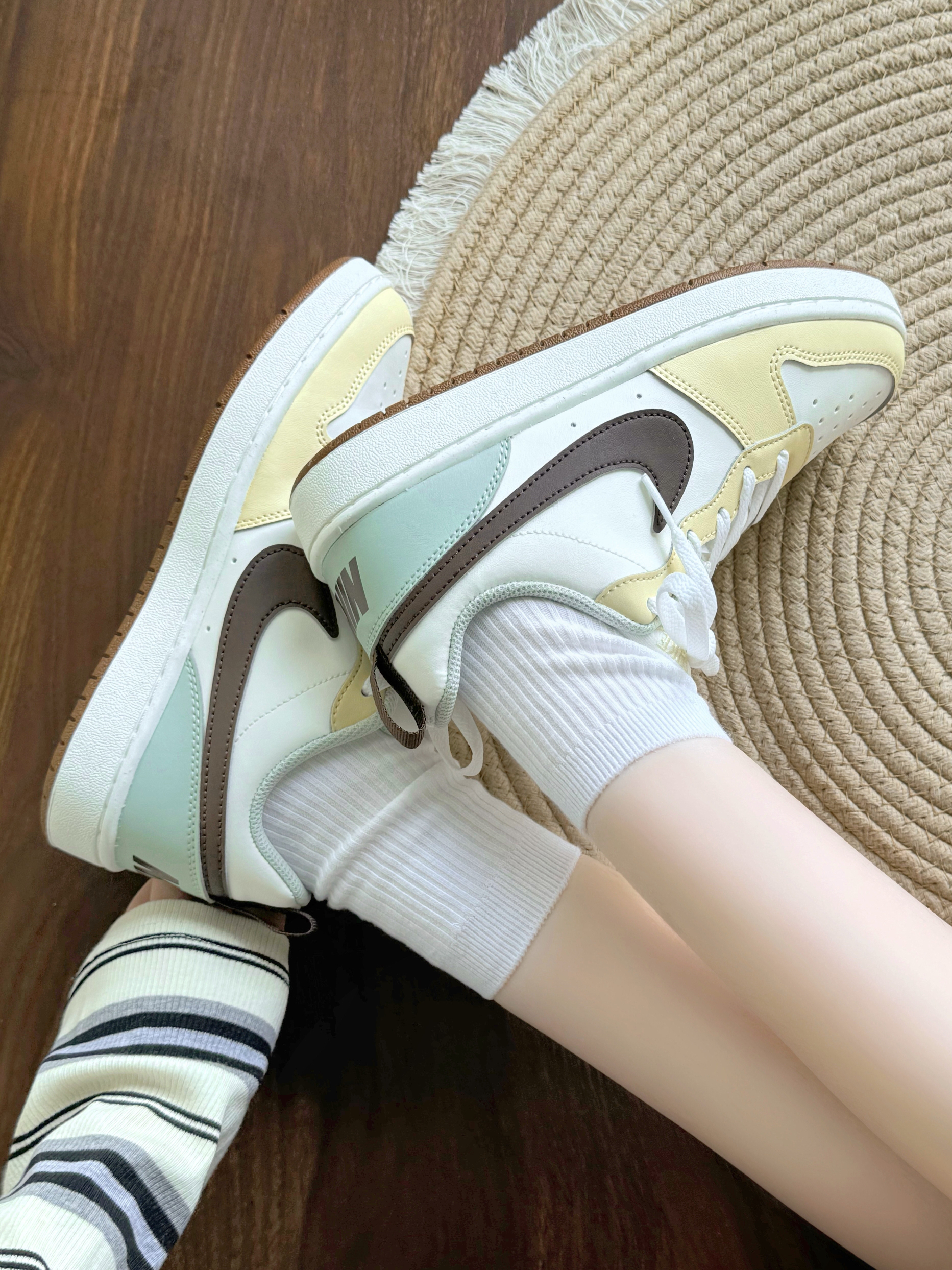 新配色好治愈呀🤤 低饱和度黄绿拼色 不会太张扬的感觉! court板鞋鞋型也炒鸡百搭
