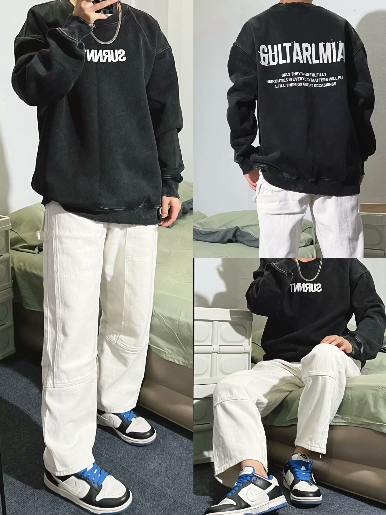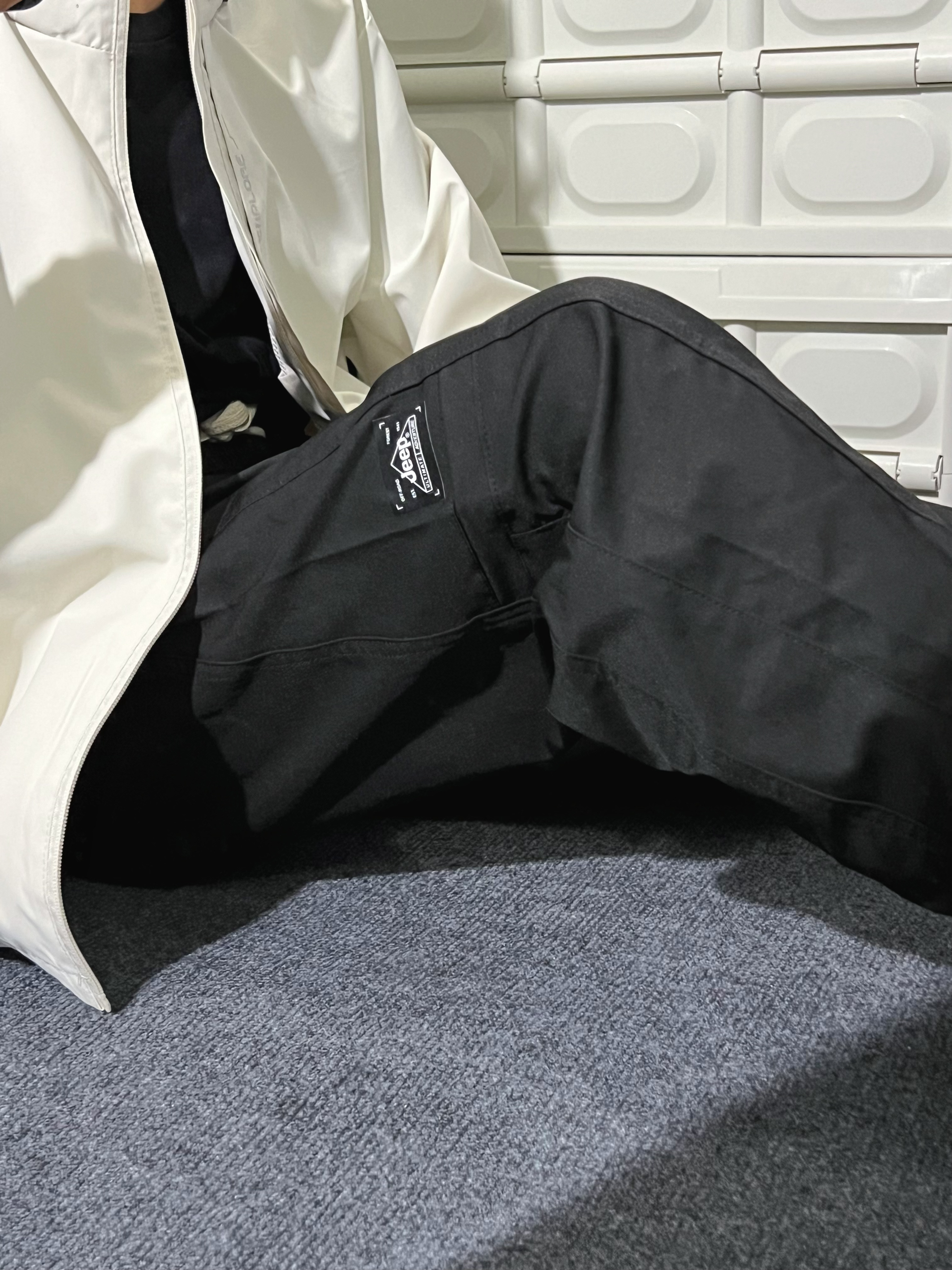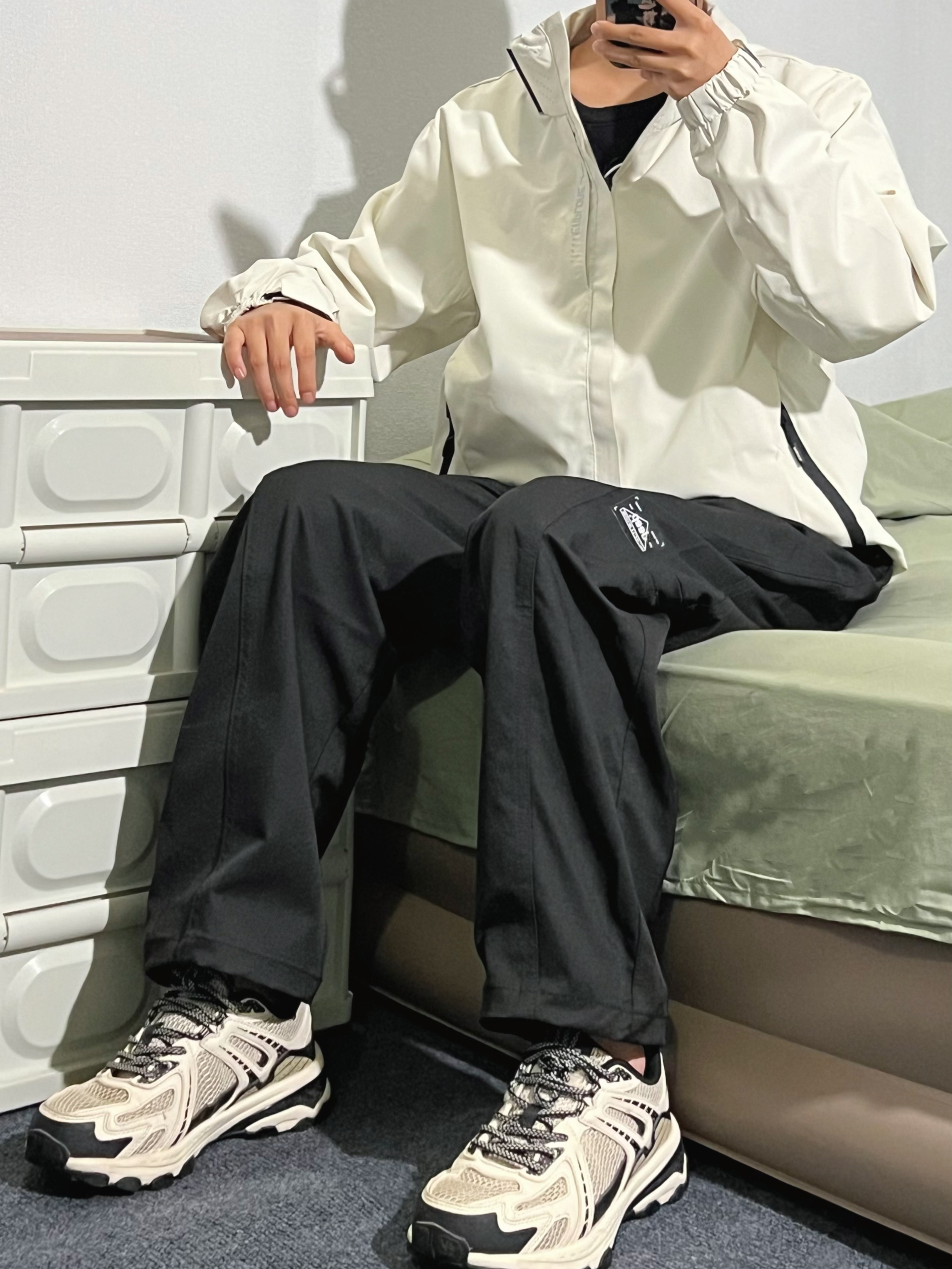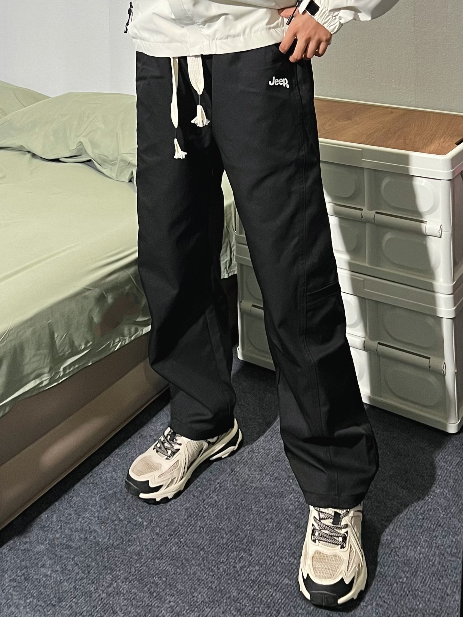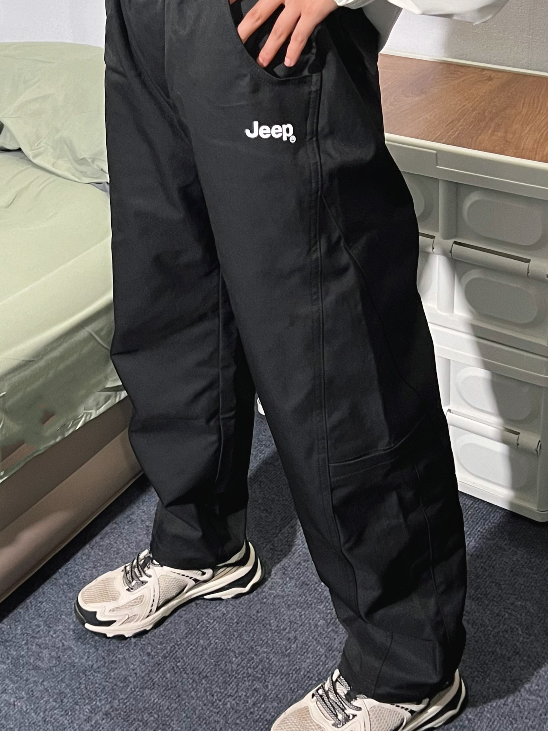 我今天准备和朋友户外爬山 提前在家搭了一套户外穿搭 白色冲锋衣搭配 Jeep 黑色工装休闲裤 裤子版型直筒宽松 搭配起来不挑腿型面料质感柔软