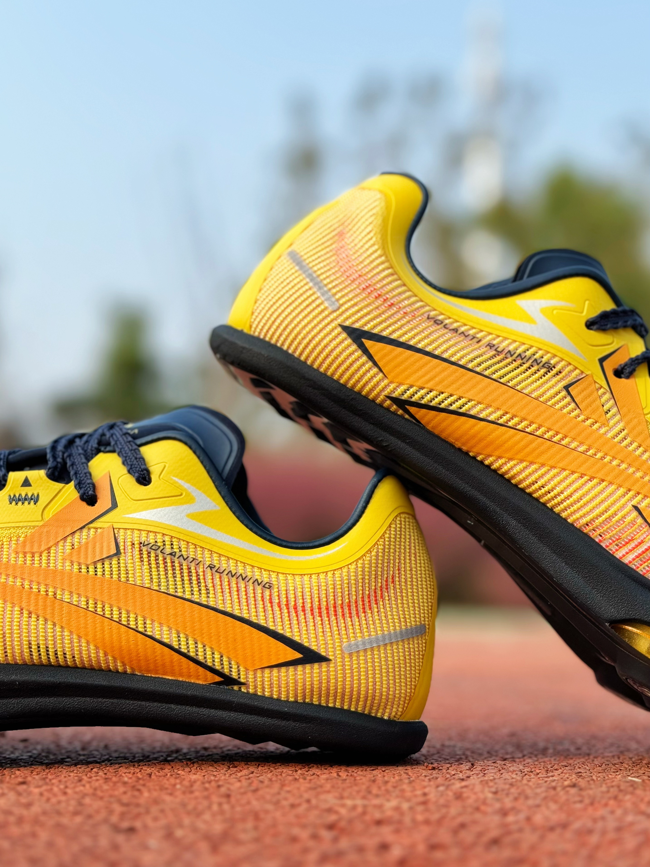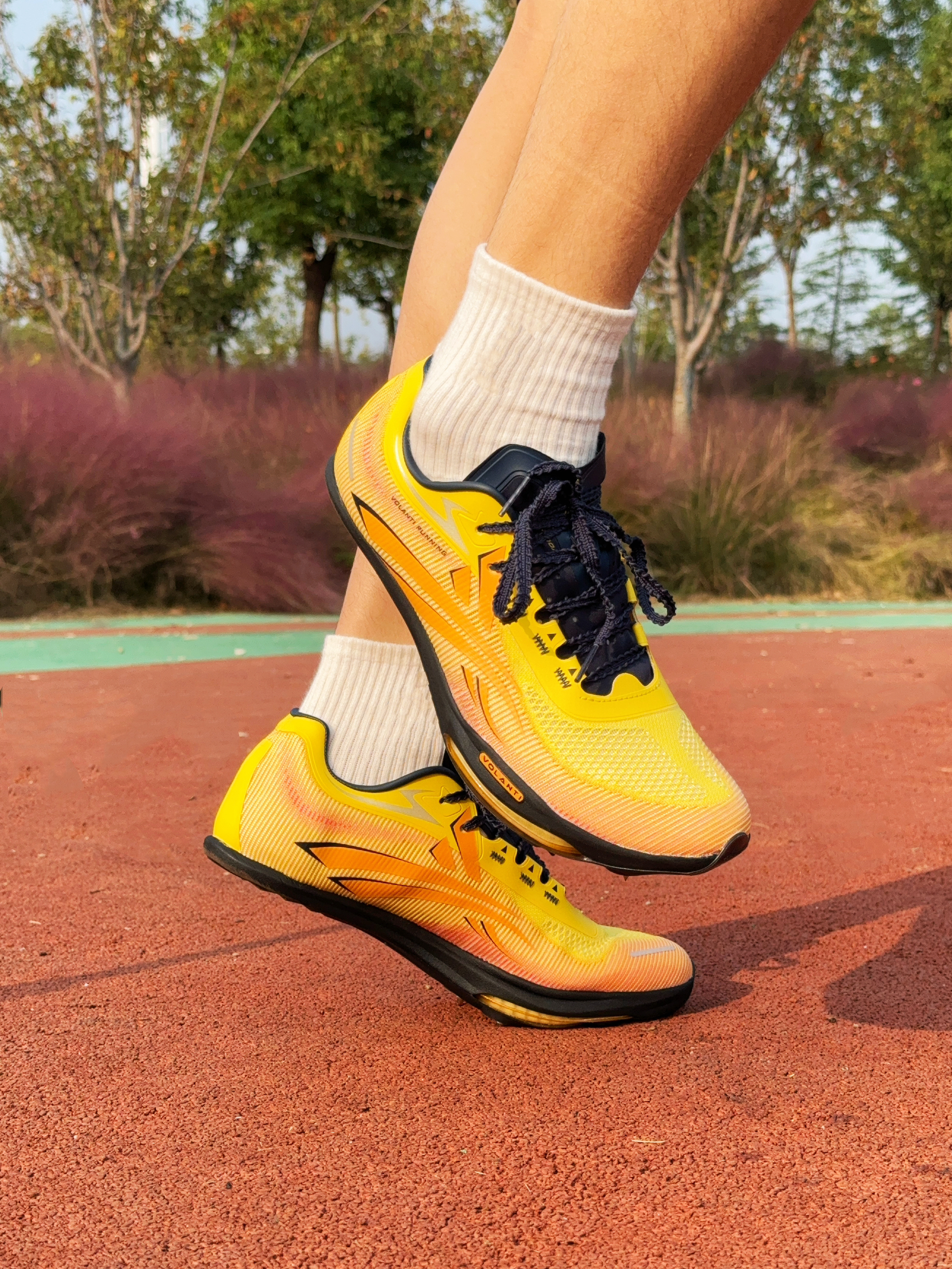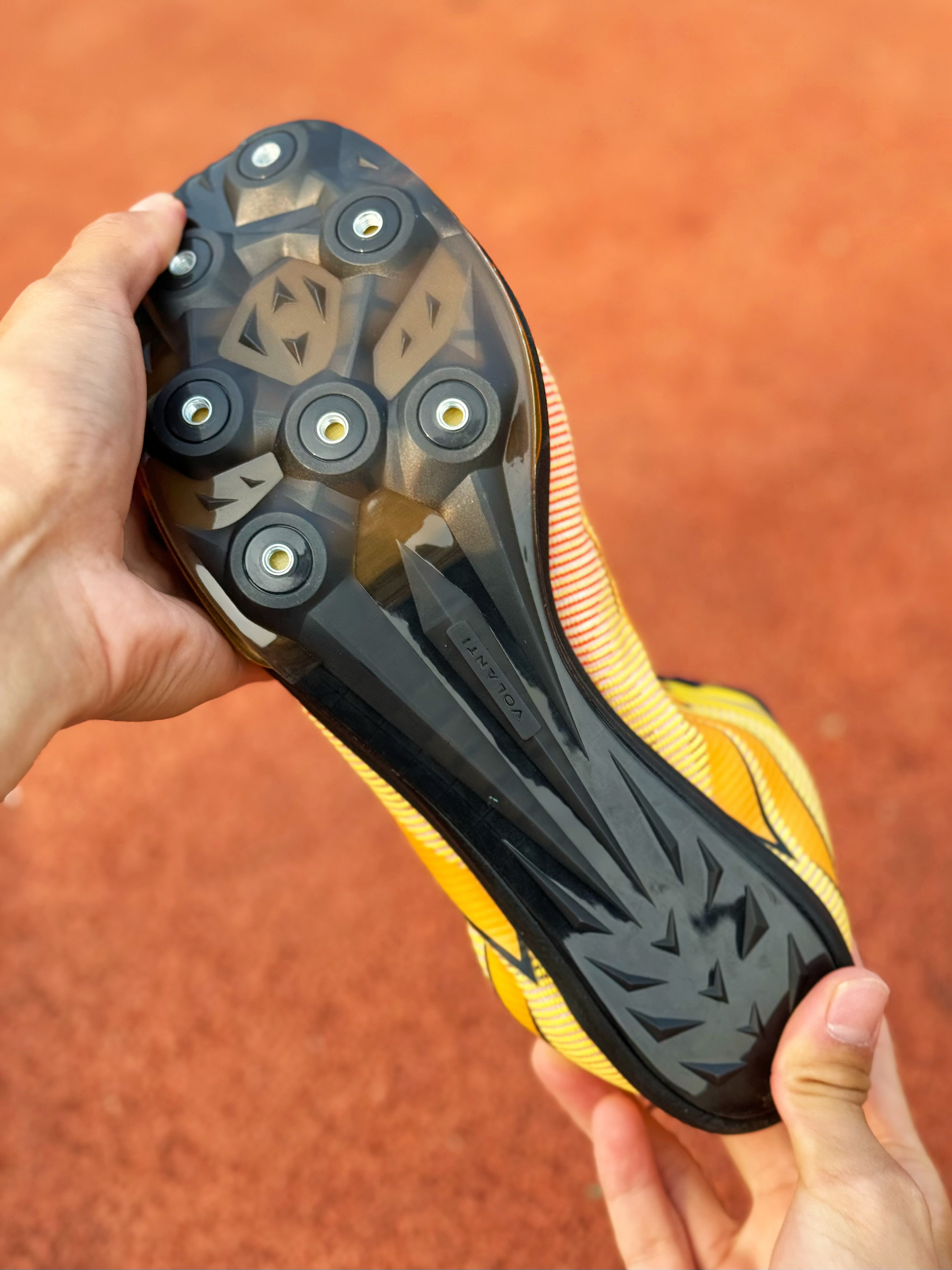 最近很多田径赛事也是众多运动员上脚的钉鞋—— 火箭气垫 火神! 首先整体的颜值配色比较酷!上脚也是有种竞速感的! 作为沃兰迪“顶级”钉鞋 配置也是到拉满了! 前掌大面积气垫搭配全掌V1100纯碳板!内置加强筋脚感配置对标maxfly绰绰有余~ 碳板有着足够的刚性以及支撑感!另外搭配全掌气垫回弹!整体比较均衡~ 💯尺码不偏 正常即可!价格在500➕左右!终身质保你敢信🤓!