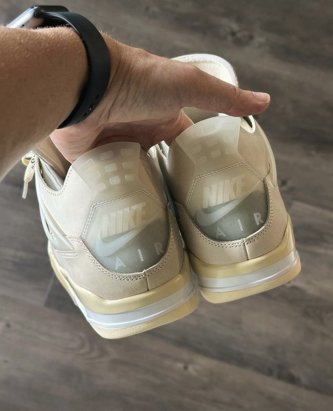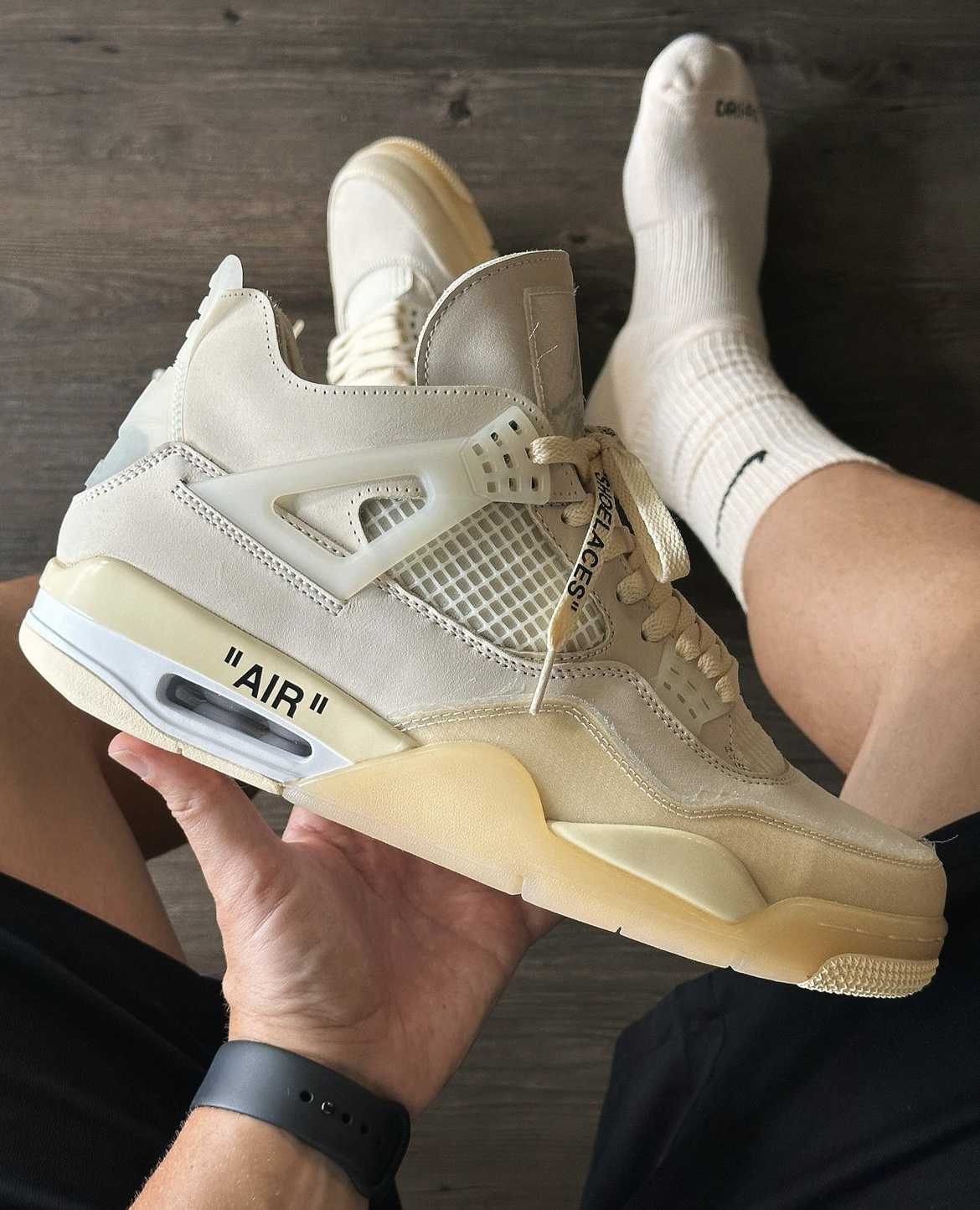 OFF-WHITE x Air Jordan 4(简称AJ4OW)联名鞋款是街头时尚与篮球鞋文化的一次重要融合。 AJ4OW在设计上保留了Air Jordan 4的经典轮廓,同时加入了Virgil Abloh的解构风格,如代表性的防盗扣与标语元素,以及透明材质的鞋带扣等,为鞋款带来了新颖的视觉效果。鞋款采用麂皮+蝉翼的设计,提供了高级的质感和层次感,奶白色的整体色调与深色的蝉翼设计相结合,使鞋子...
