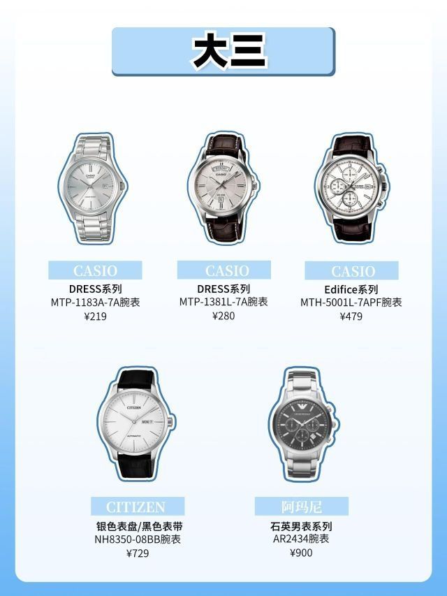 本篇笔记关联了Casio/卡西欧 G-SHOCK&YOUTH&City Battle系列 树脂表带大表盘龙年双显防震200米防水运动石英男士手表 红色 GA-700-4A、Citizen/西铁城 经典机械系列 不锈钢表带防水全自动机械男表 银色 NH8350-59AB、Armani/阿玛尼 简约经典钢带三针防水石英男士手表 银盘银色钢带 AR1819等商品,为用户提供真实的使用体验和购买参考。