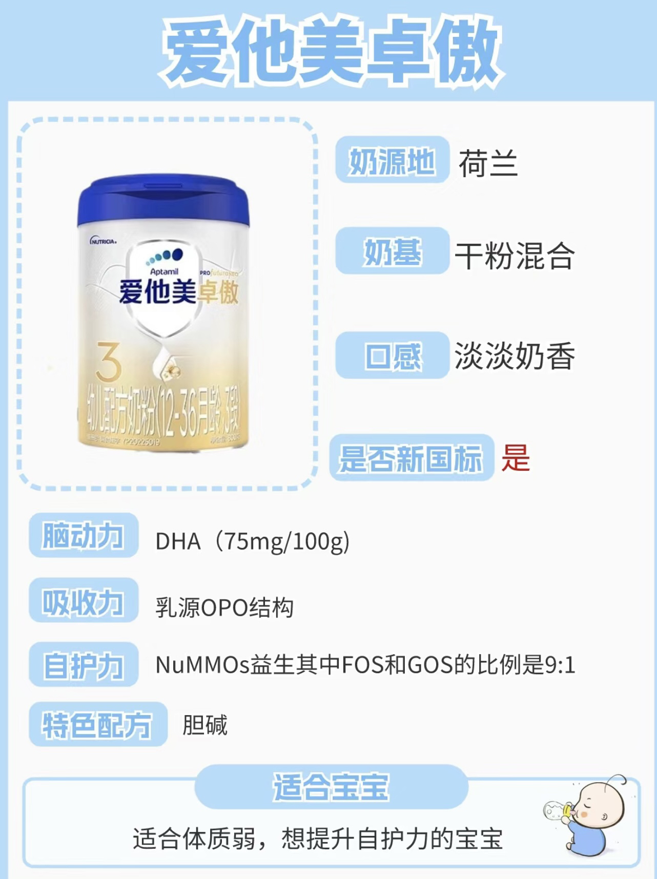 奶粉作为宝宝特别需要的口粮,我是一直都有关注的, 尤其是现在新国标之后,不少奶粉都做了新升级。不 过,作为成分党妈妈,在大家都卷保护力吸收力的时 候,我的关注点,更多还是放在脑动力成分上。因为对 于小baby来说,在0-3岁这个國成长的黄金期,及时 补充脑营养对宝宝末来技能的提升以及各方面的发展都 有着很大的帮助,谁都不想错过,对吧~ 所以今天呢,我就把我这段时候刚刚实测过的四款热门 三段奶粉,分...