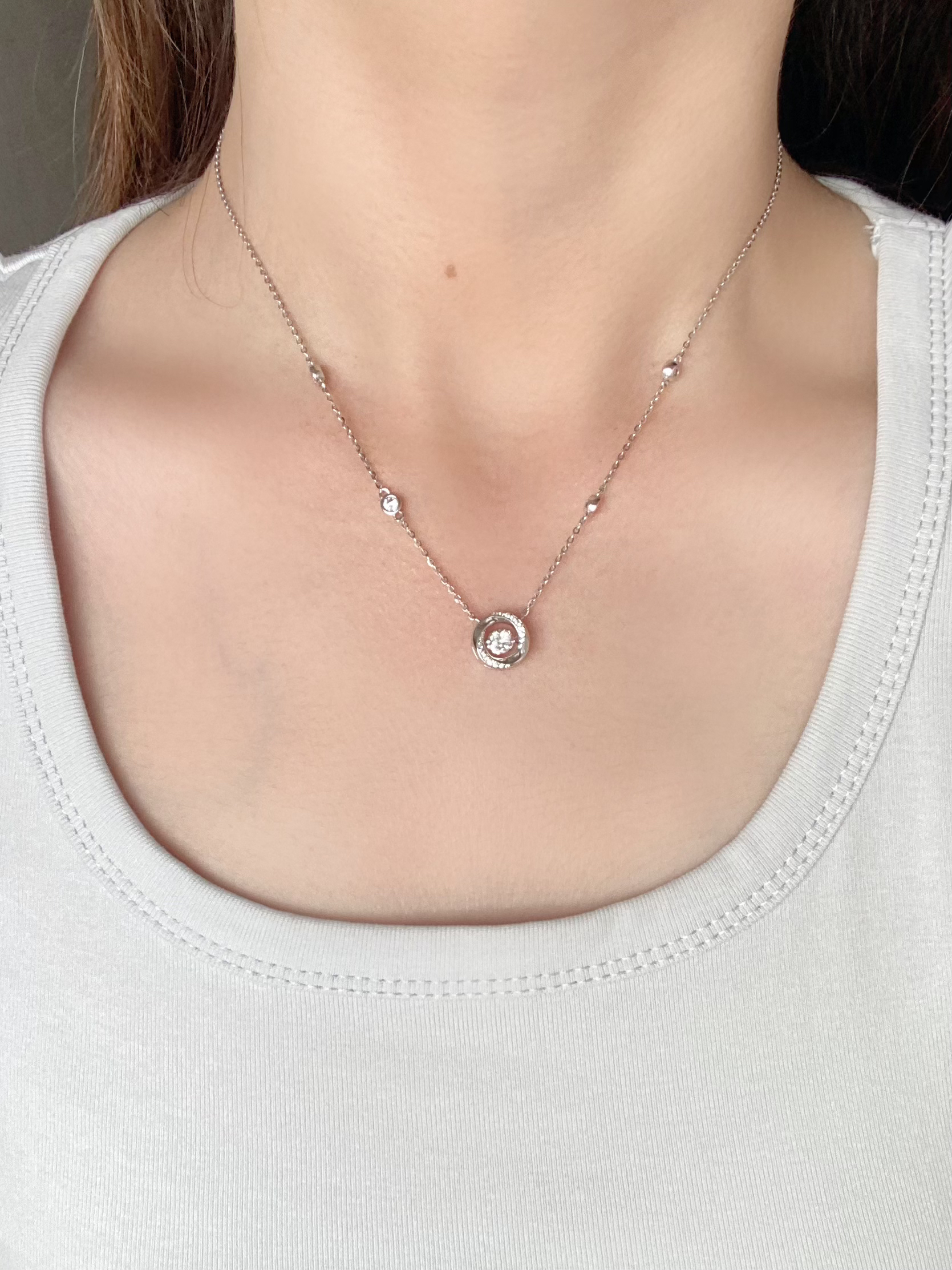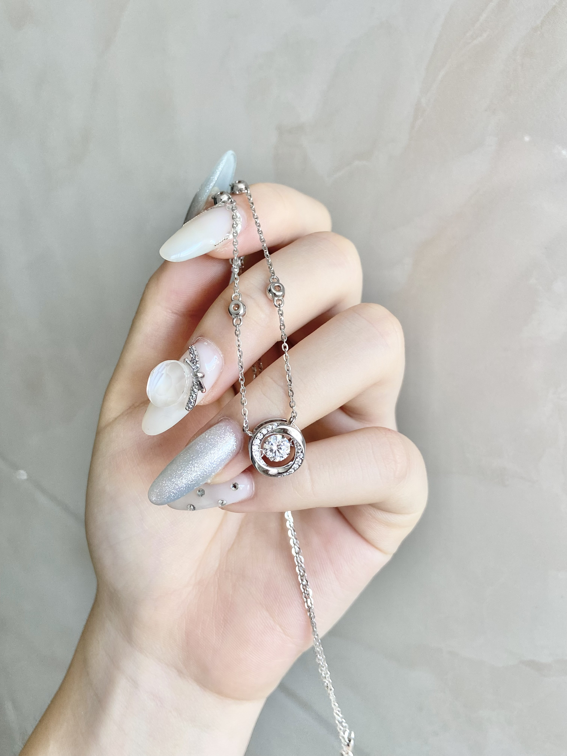 进入秋天了 怎么能没有一条氛围感项链呢~ 这条新项链真的有美到我🥹 中间的大锆石是悬浮镶嵌的 佩戴时自然晃动很灵动闪耀~ 链子上还镶嵌了四颗小钻 增添了不少精致度~ 日常百搭的一条项链 高级感满满~