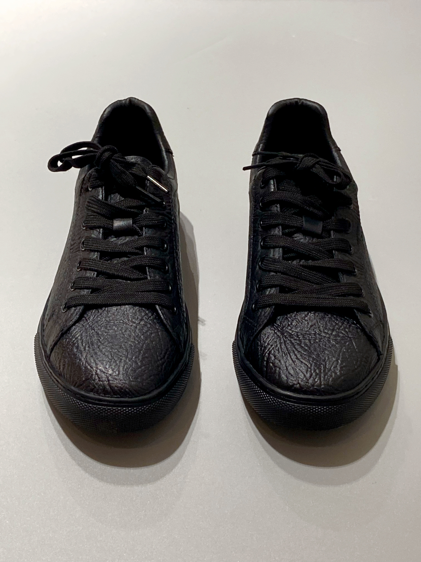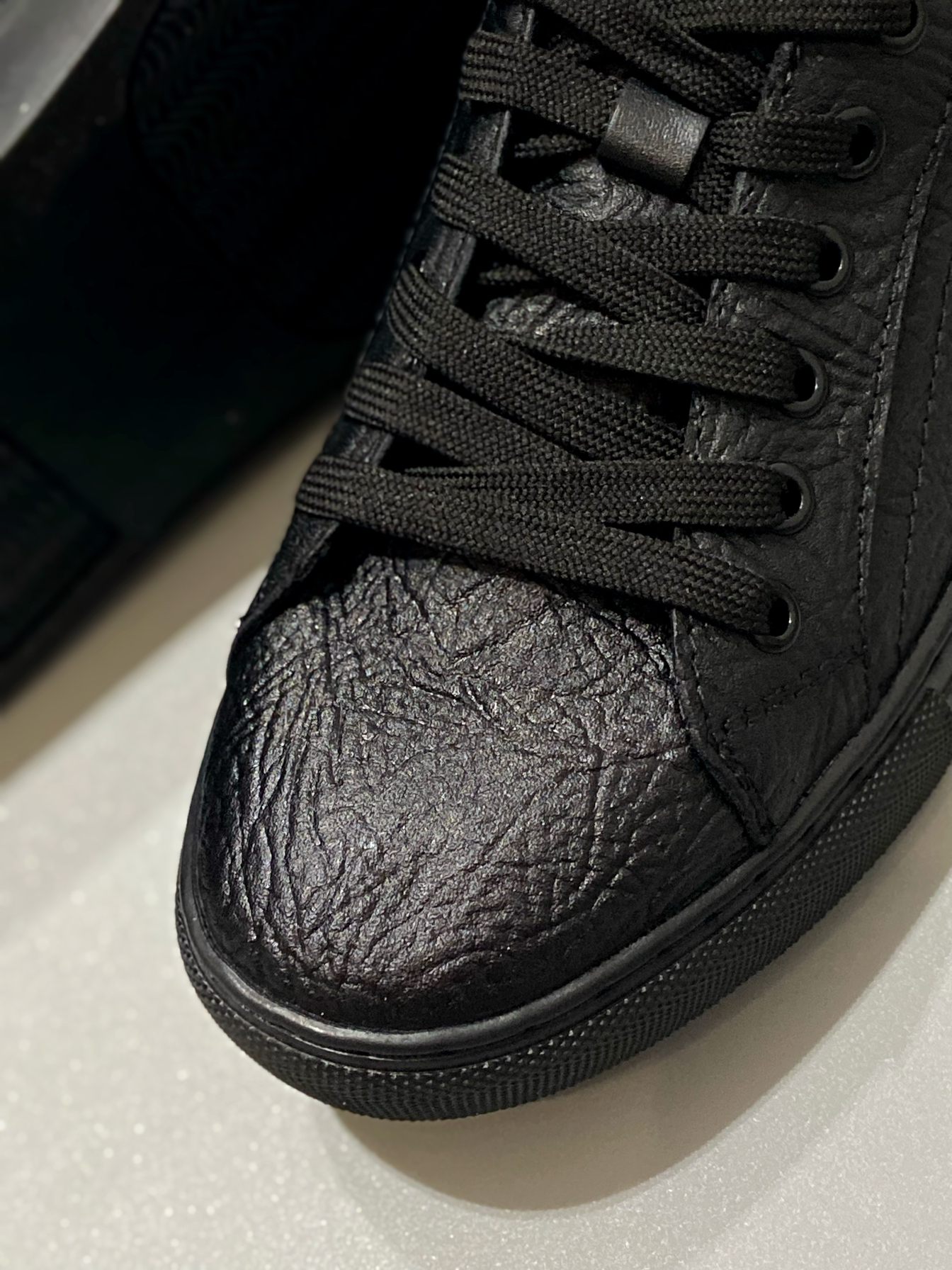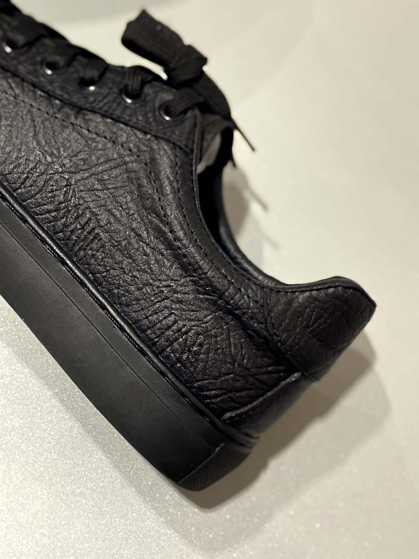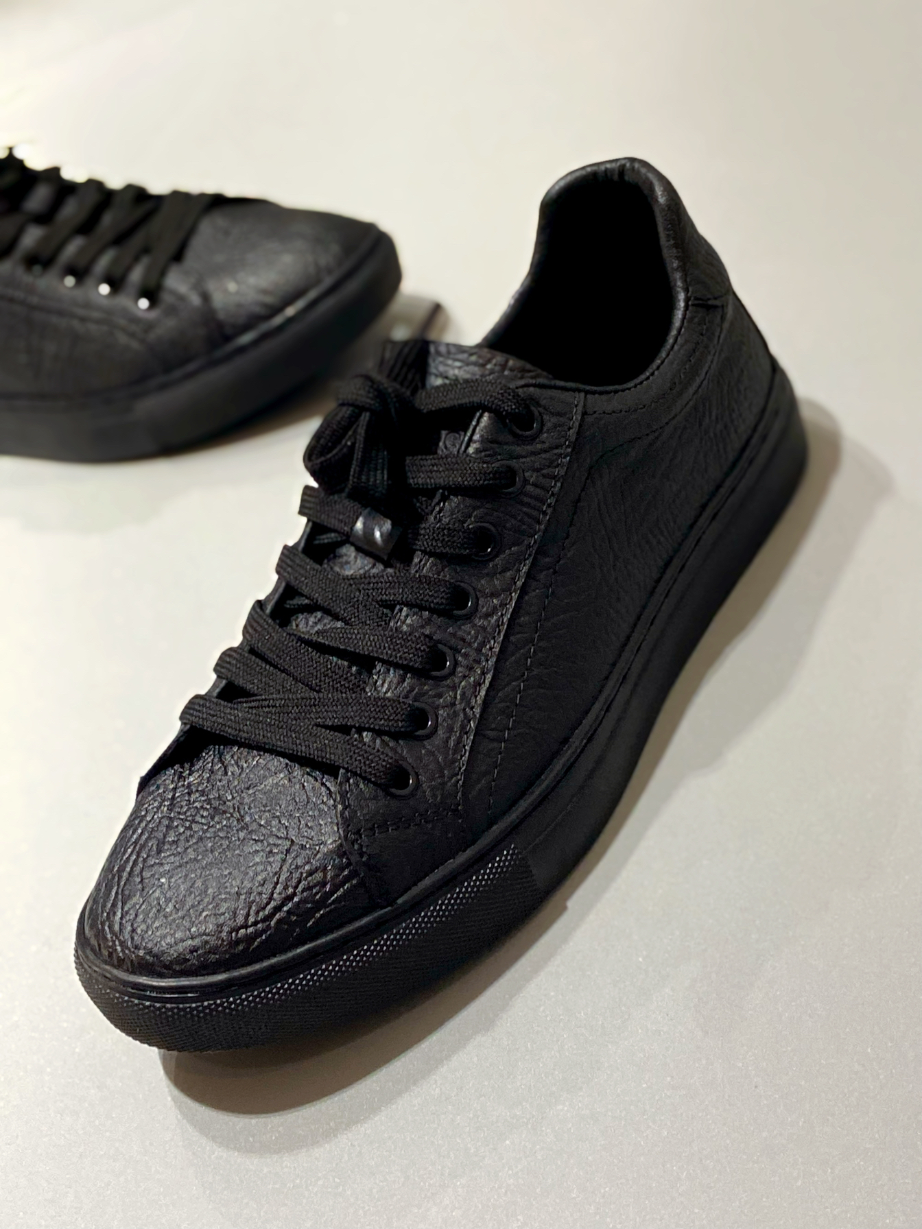 最近种草的这款黑武士板鞋 整个鞋子都是黑色 质感满满 穿着脚感蛮舒服的 软硬适中 日常休闲、商务通勤都可搭配 鞋面和内衬都是皮的 舒适透气 鞋型偏瘦,我穿尺码正常 脚背高的建议拿大一码 !