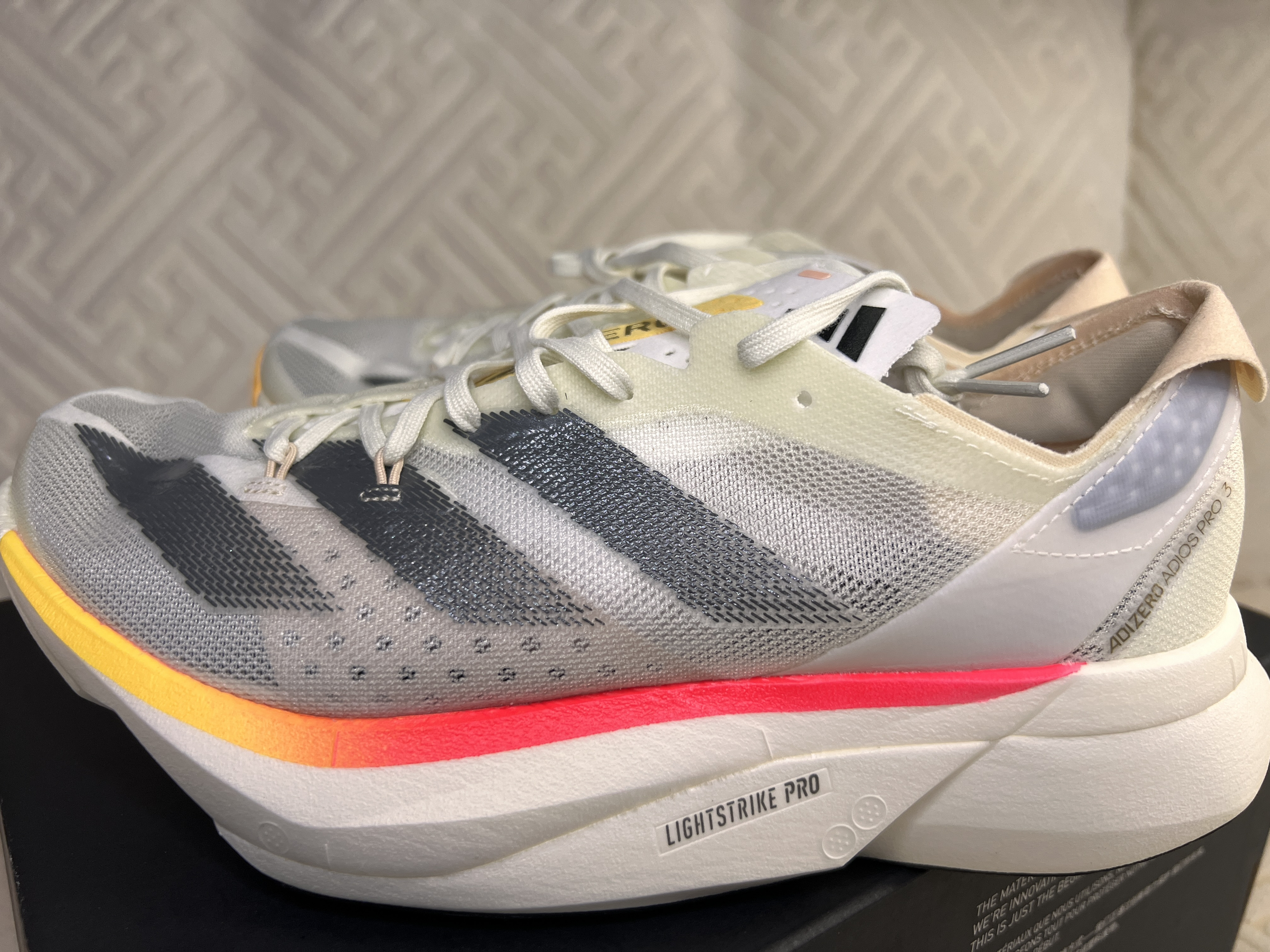 本篇笔记关联了adidas Adizero Adios Pro 3 缓震 织物 马拉松 跑鞋 白色/黑色/红色等商品,为用户提供真实的使用体验和购买参考。