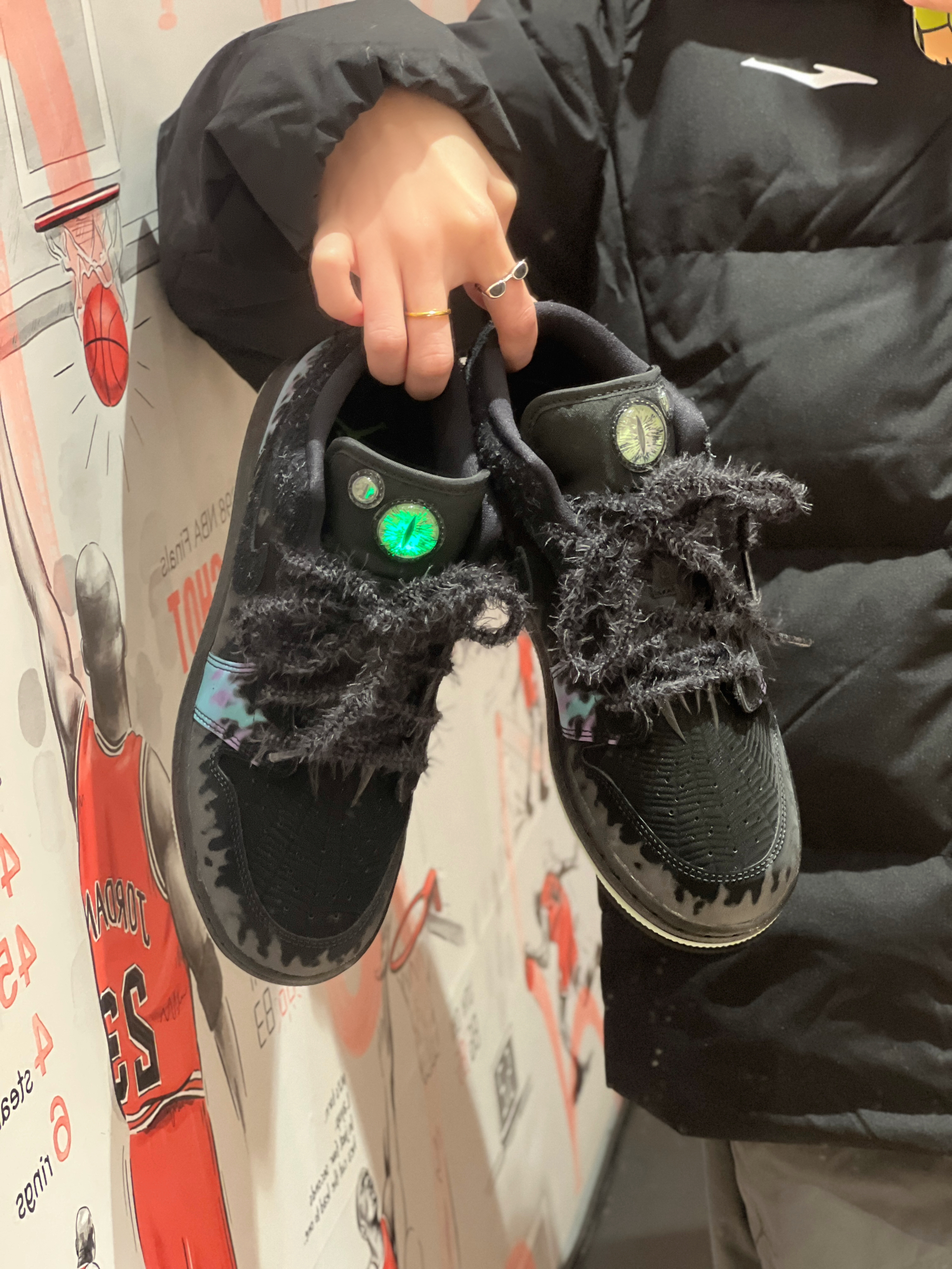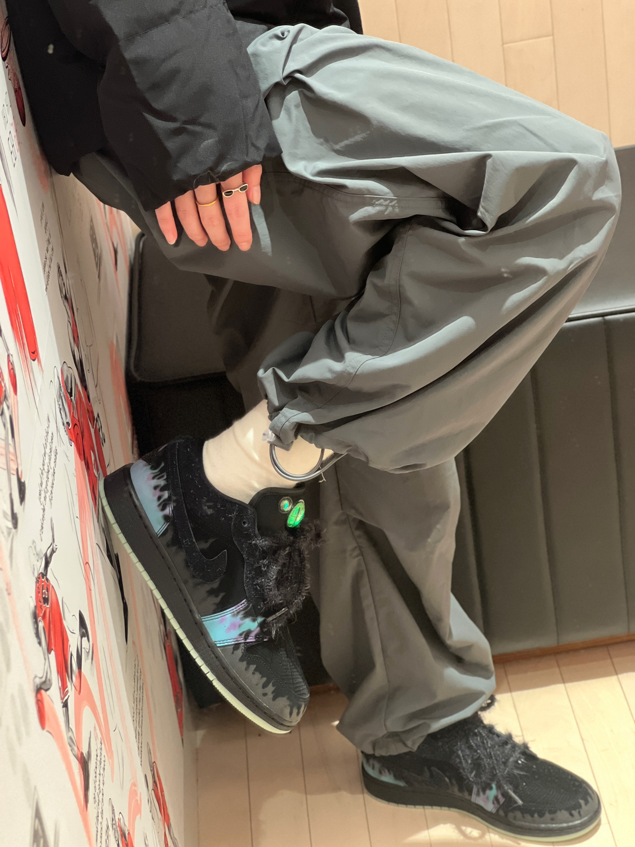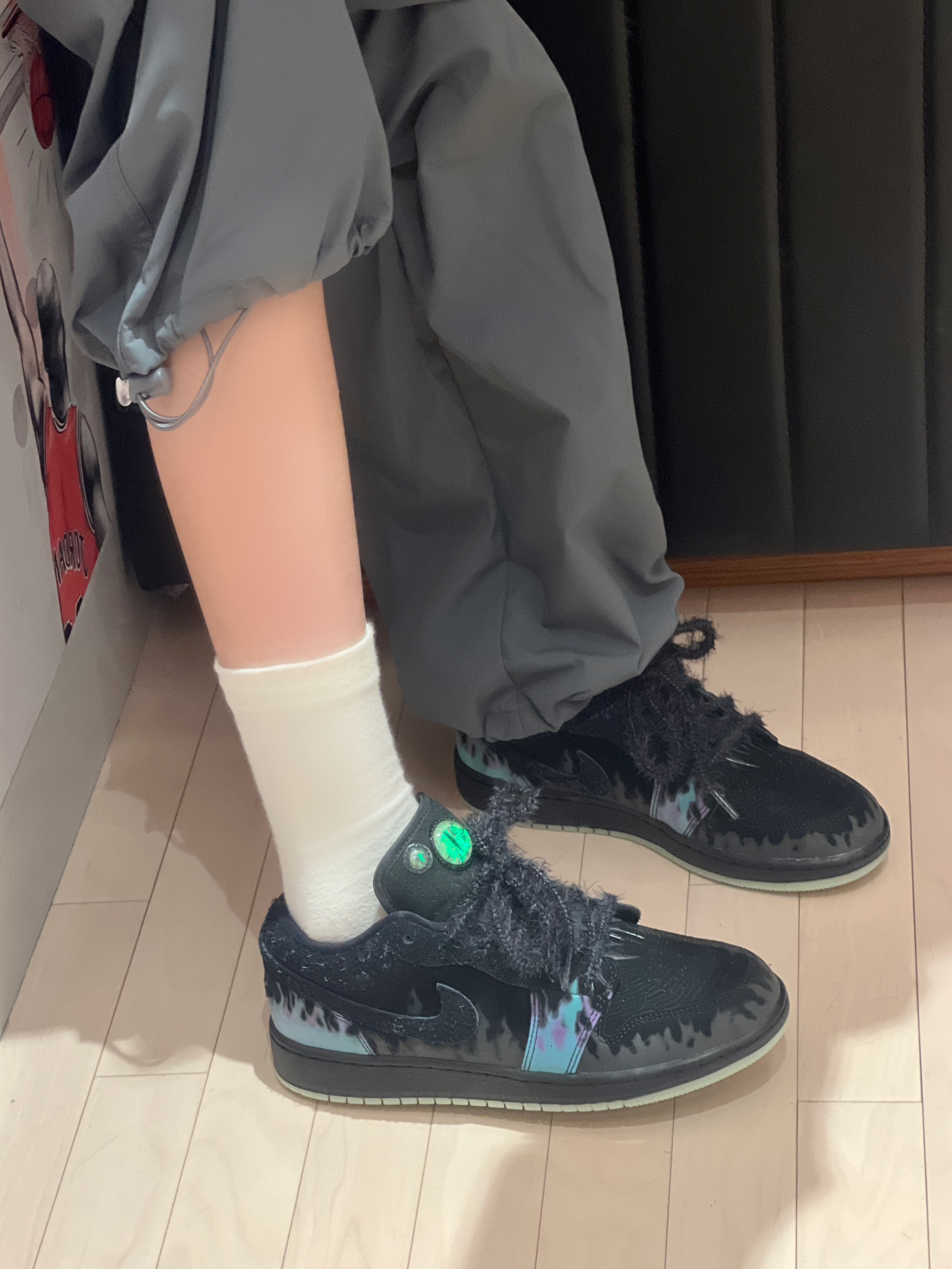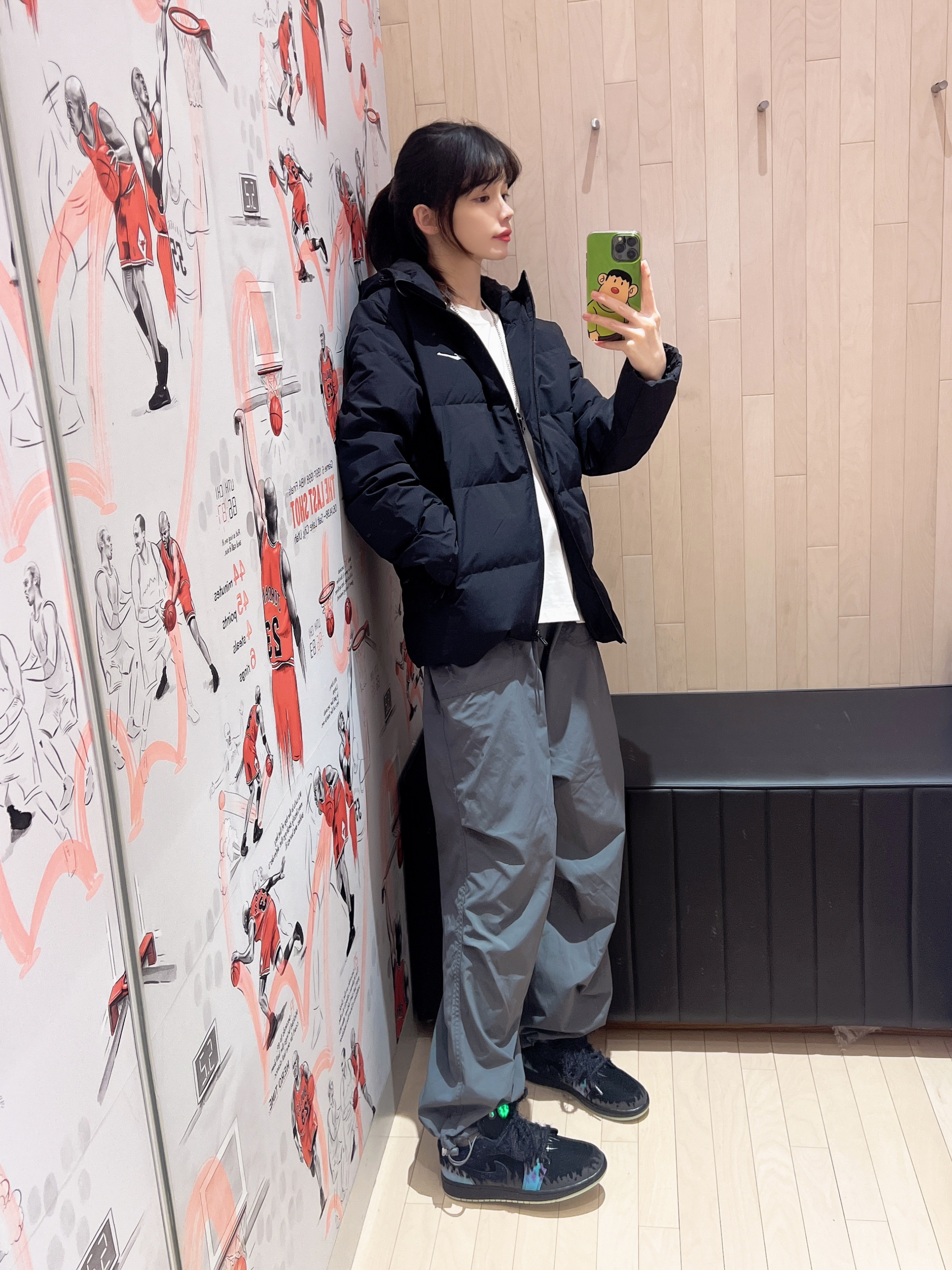 今日穿搭黑色羽绒服➕灰色休闲裤 👔是 鸿星尔克 🏡滴 经典黑的配色设计 简简单单的款式就很实穿 ☺️版型比较修身 不会显胖 帅气又随性呢 并且还防泼水防风透湿 上身暖暖的也很抗风 百搭单品呀! 👧166/43kg M码 👟是AJ1低帮万圣节🎃配色 整体黑色系为主 鞋舌的猫眼设计 还有夜光效果加上鞋带上的毛毛 有点酷呢还有蜘蛛🕷️的各种元素🕸️很惊艳!