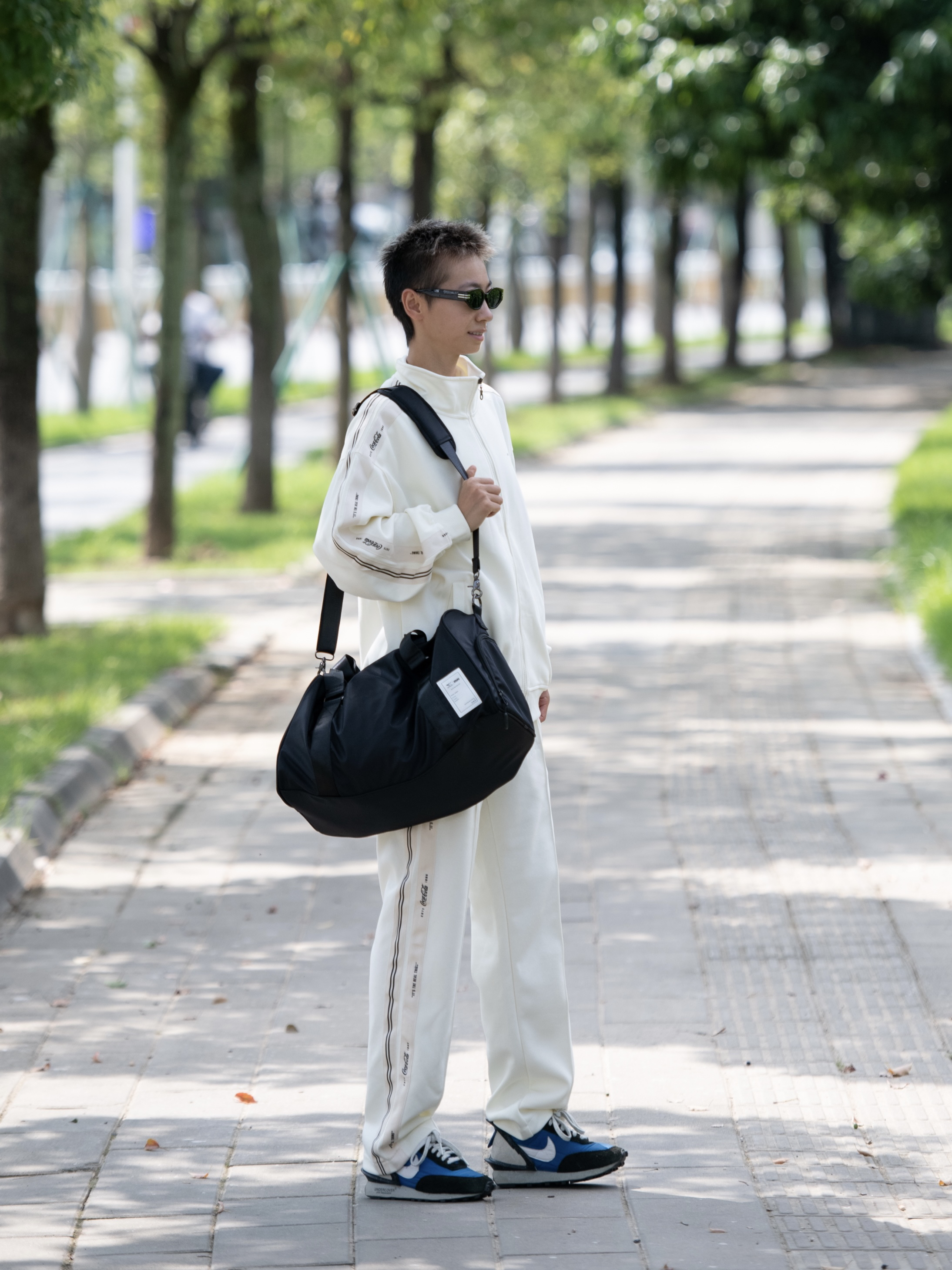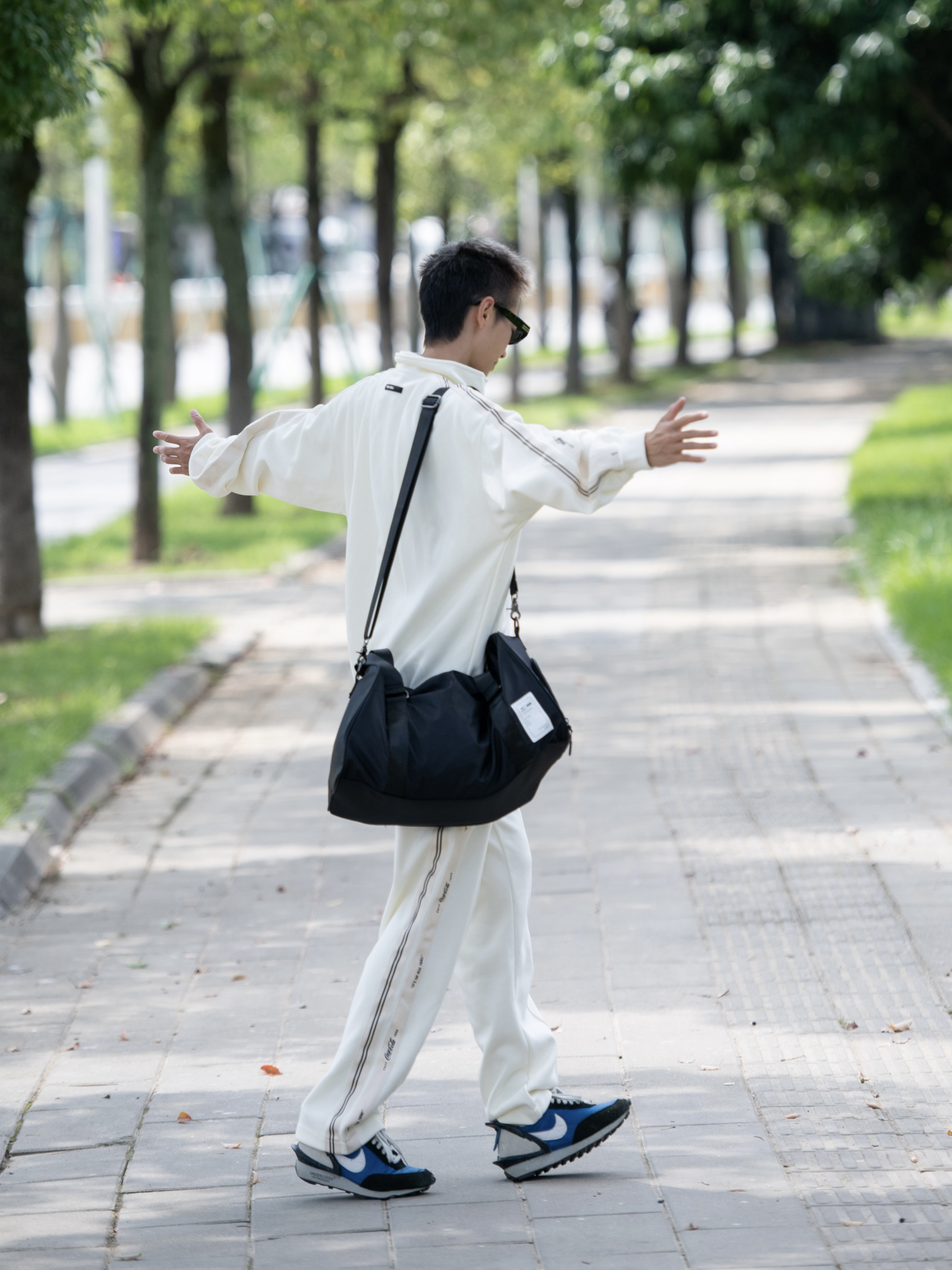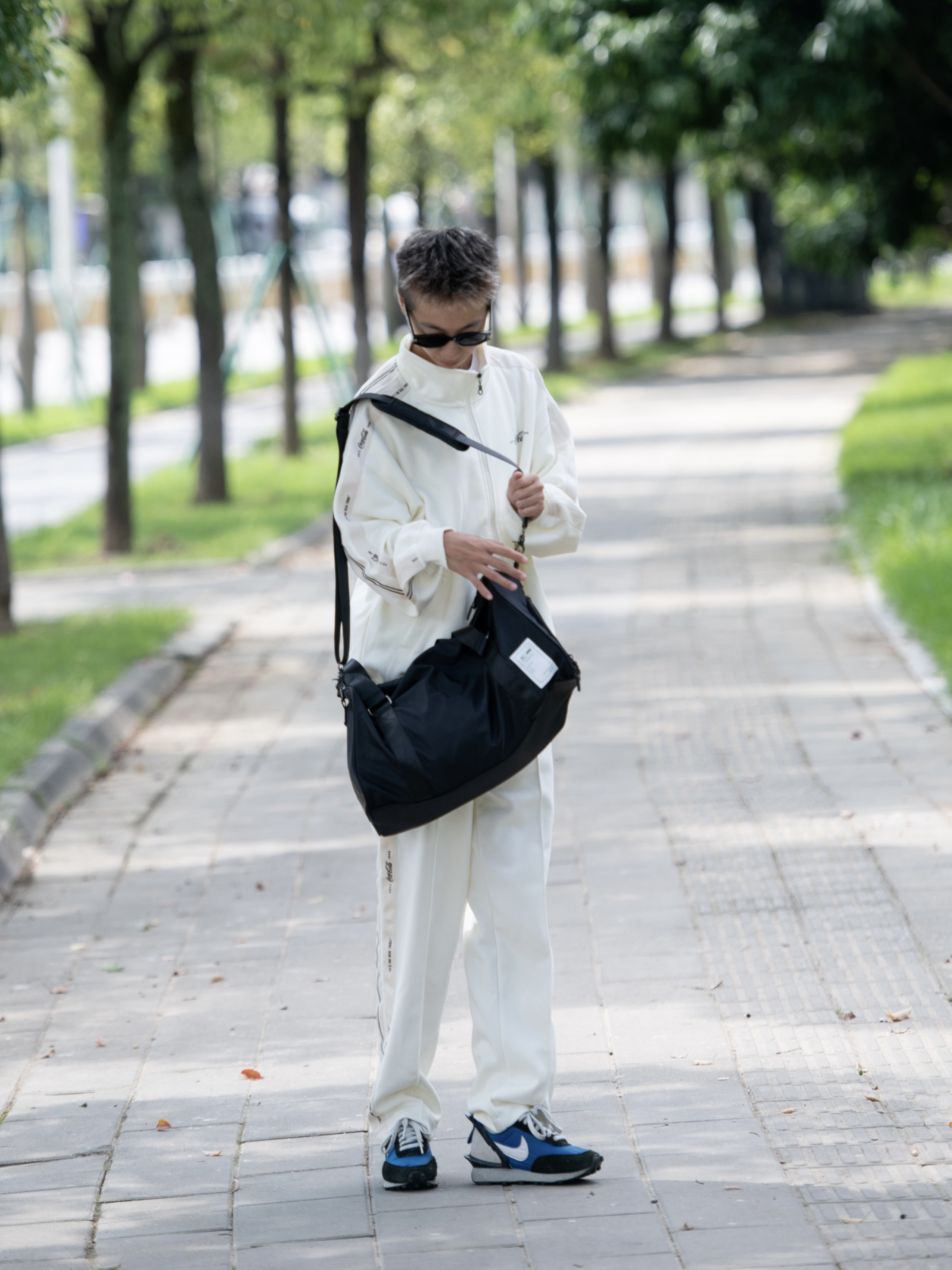 哈喽,欢迎来到哇哇哇穿搭分享频道! 172CM|55KG|👔:M 👖:m|👟:39码 秋冬出游 一包搞定出行必带物品 还可以用作登机包嘞✈️ 看我今日宠幸的单肩手提包👜 黑色系包包 容量挺大 惊喜的是它有干湿分离区耶 独立的鞋仓 出门就很方便咯 今日上身一整套套装运动服 提着包包 出门咯~