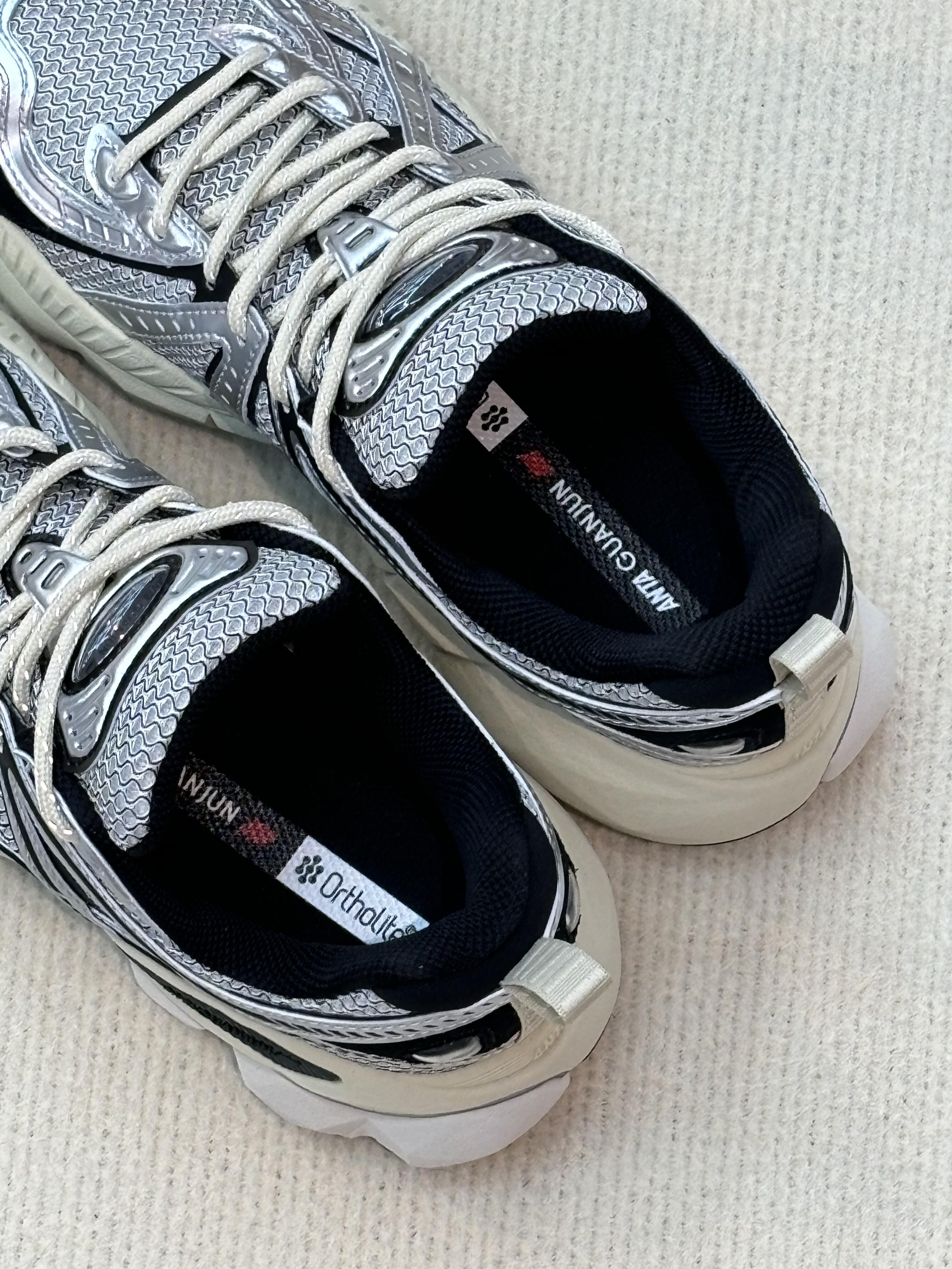 本篇笔记关联了【王一博同款】 安踏 冠军全天候系列AG-G02-V2 跑鞋 防滑耐磨减震软底网面透气复古百搭织物合成革 男款/银色/基础黑等商品,为用户提供真实的使用体验和购买参考。