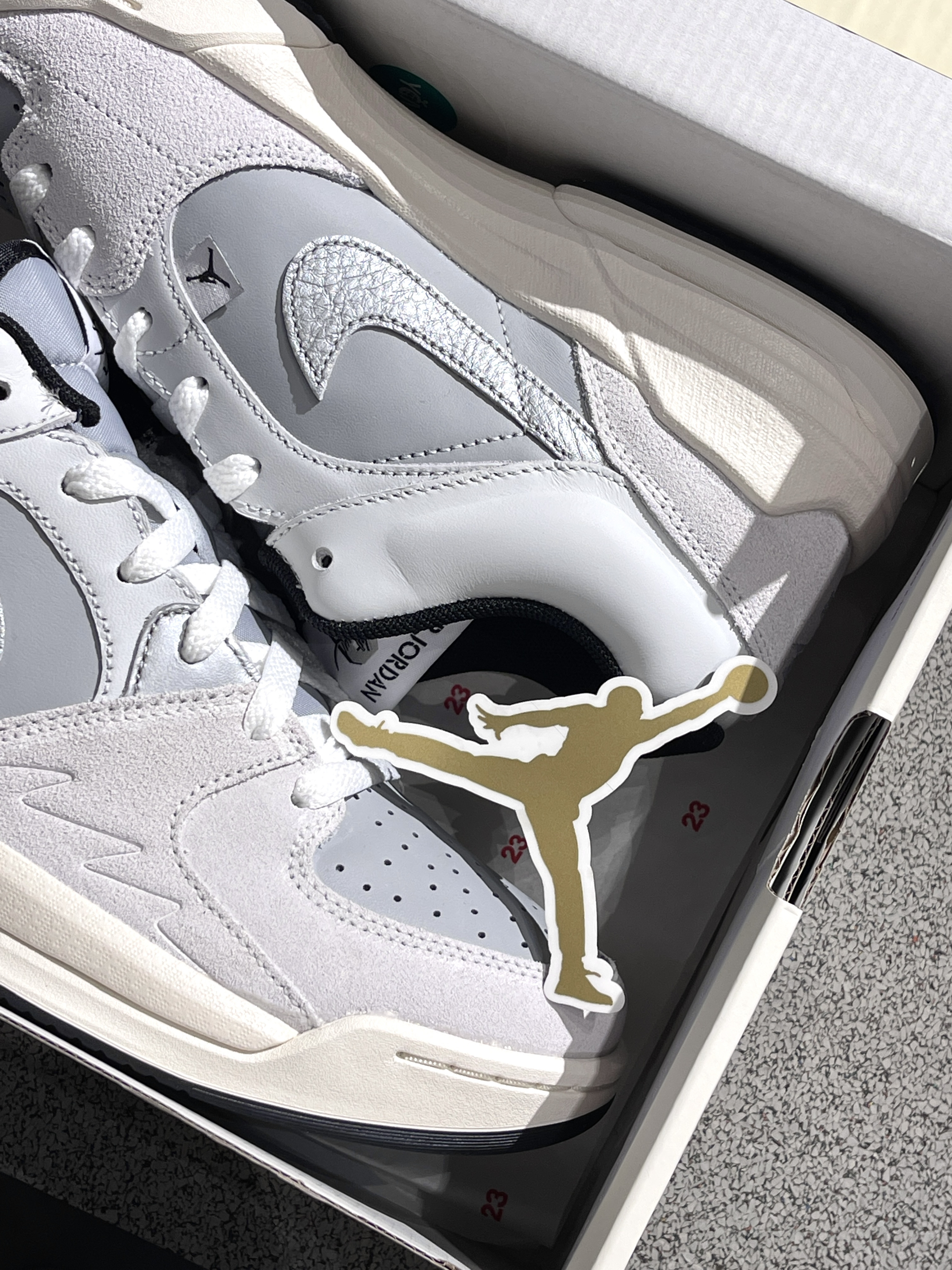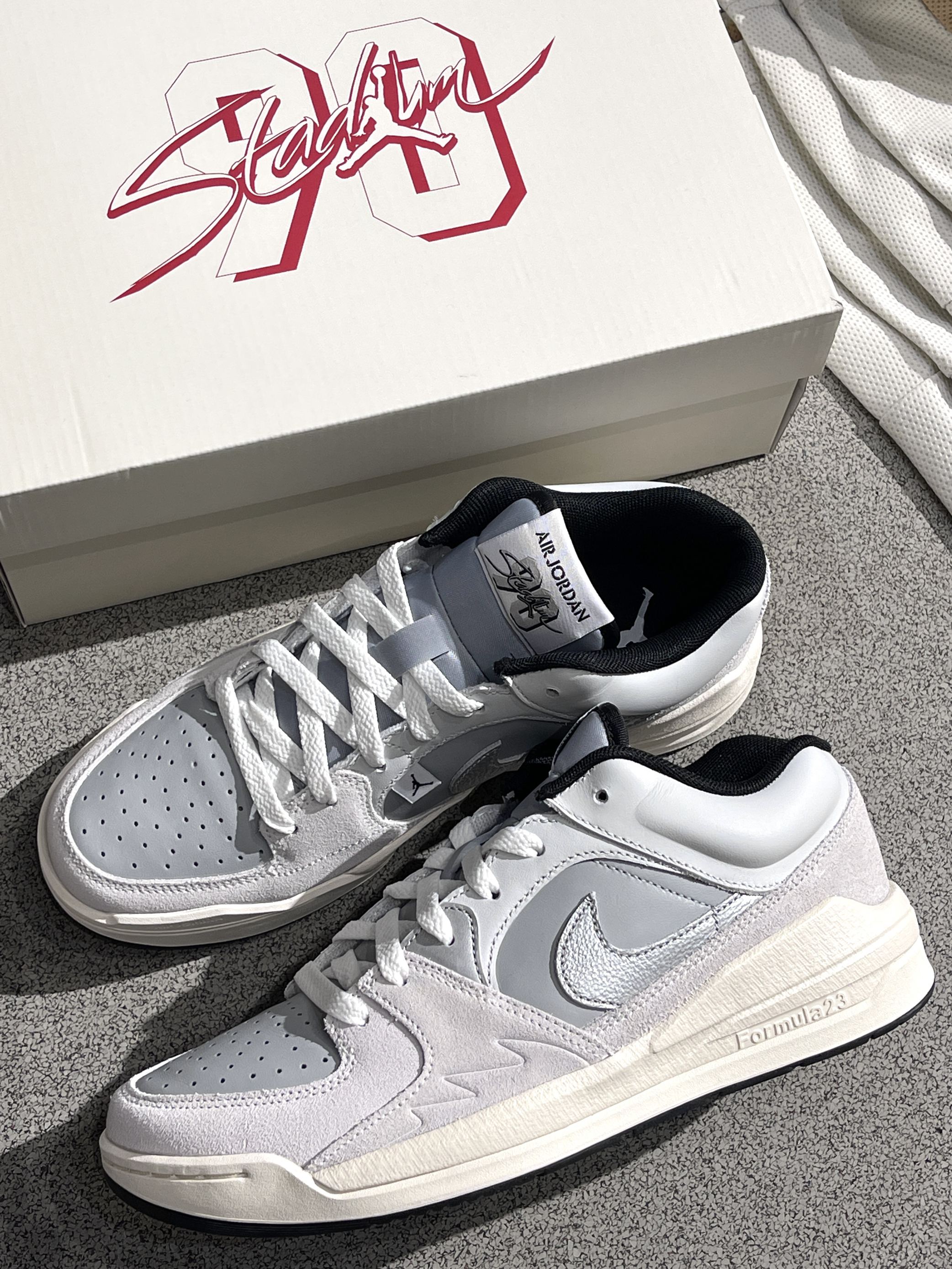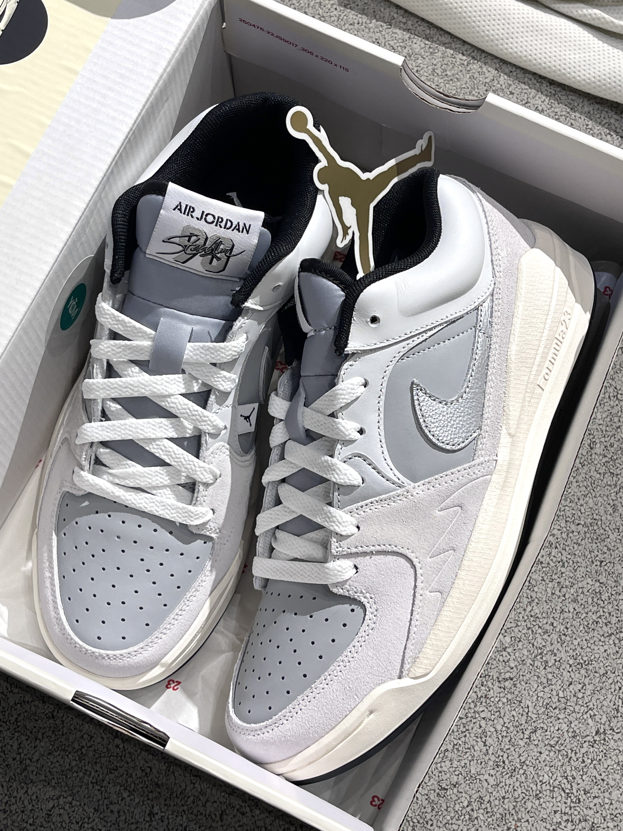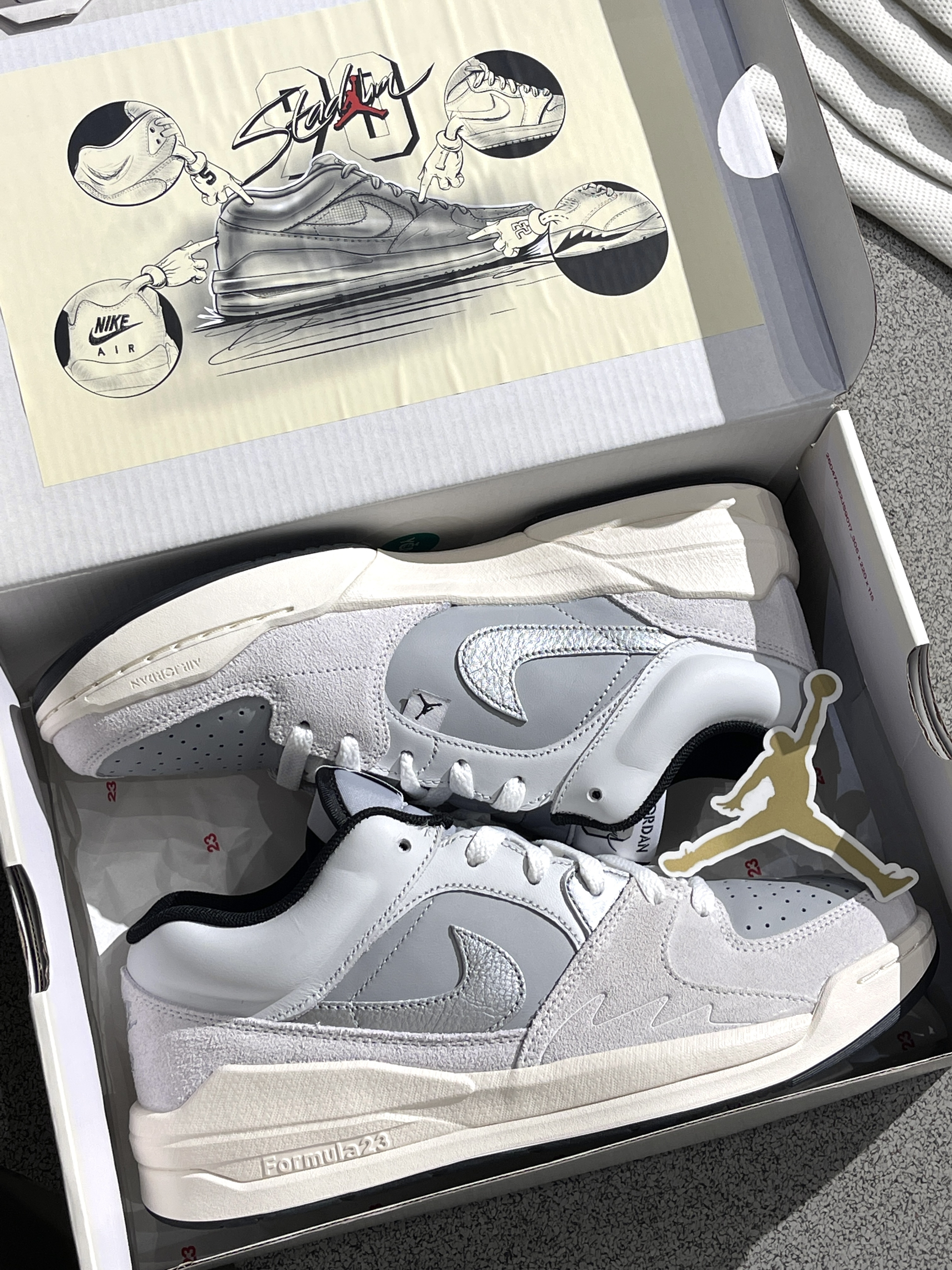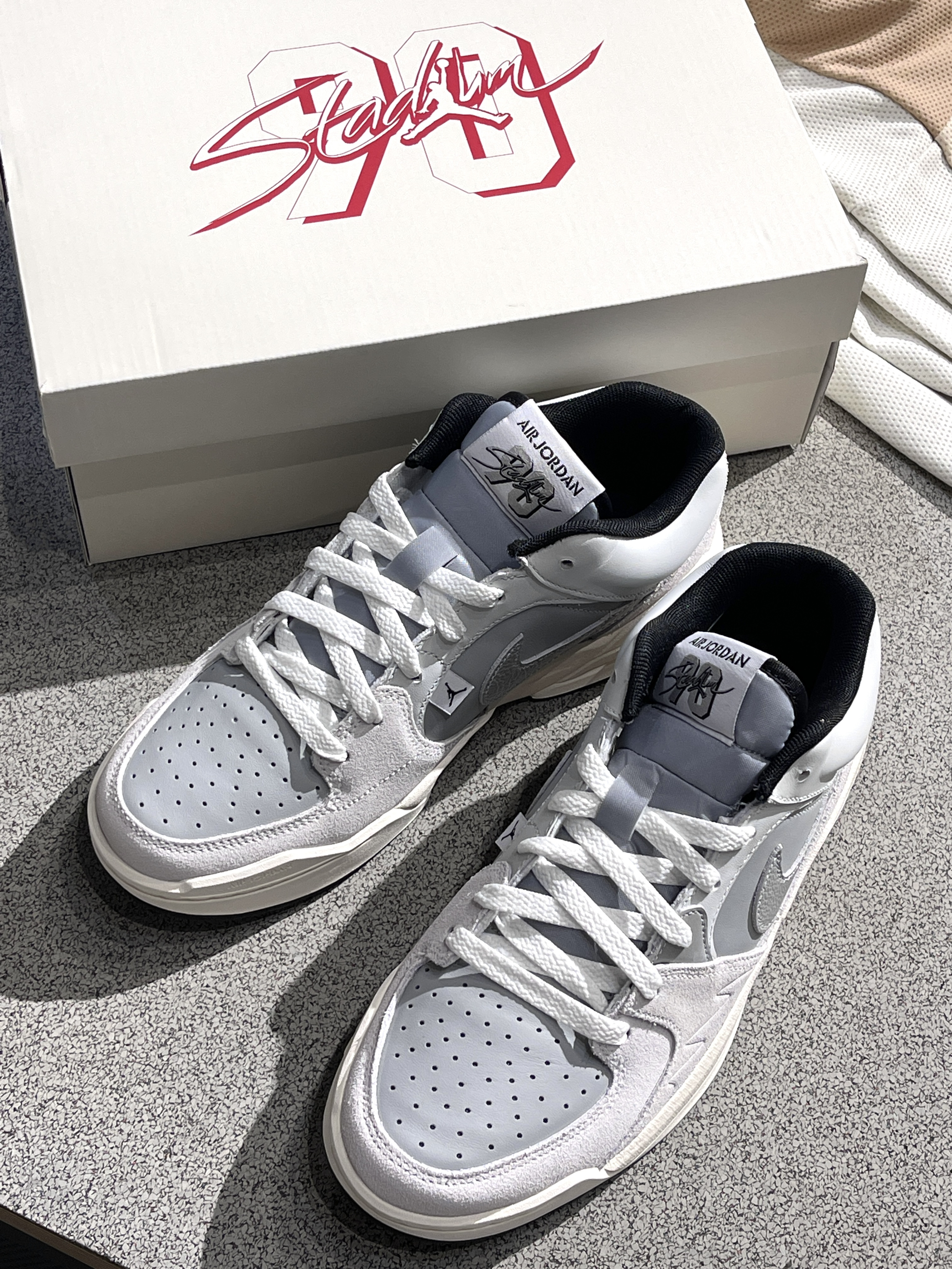 Nike新鞋型来咯,Stadium90~🔥 Jordan|Stadium 低帮休闲鞋“浅灰色”🐺,实物开箱小众高级,融合了aj5、aj1的经典元素,外观简约高级,银灰配色方案➕泡棉大底,百搭又好穿~😍