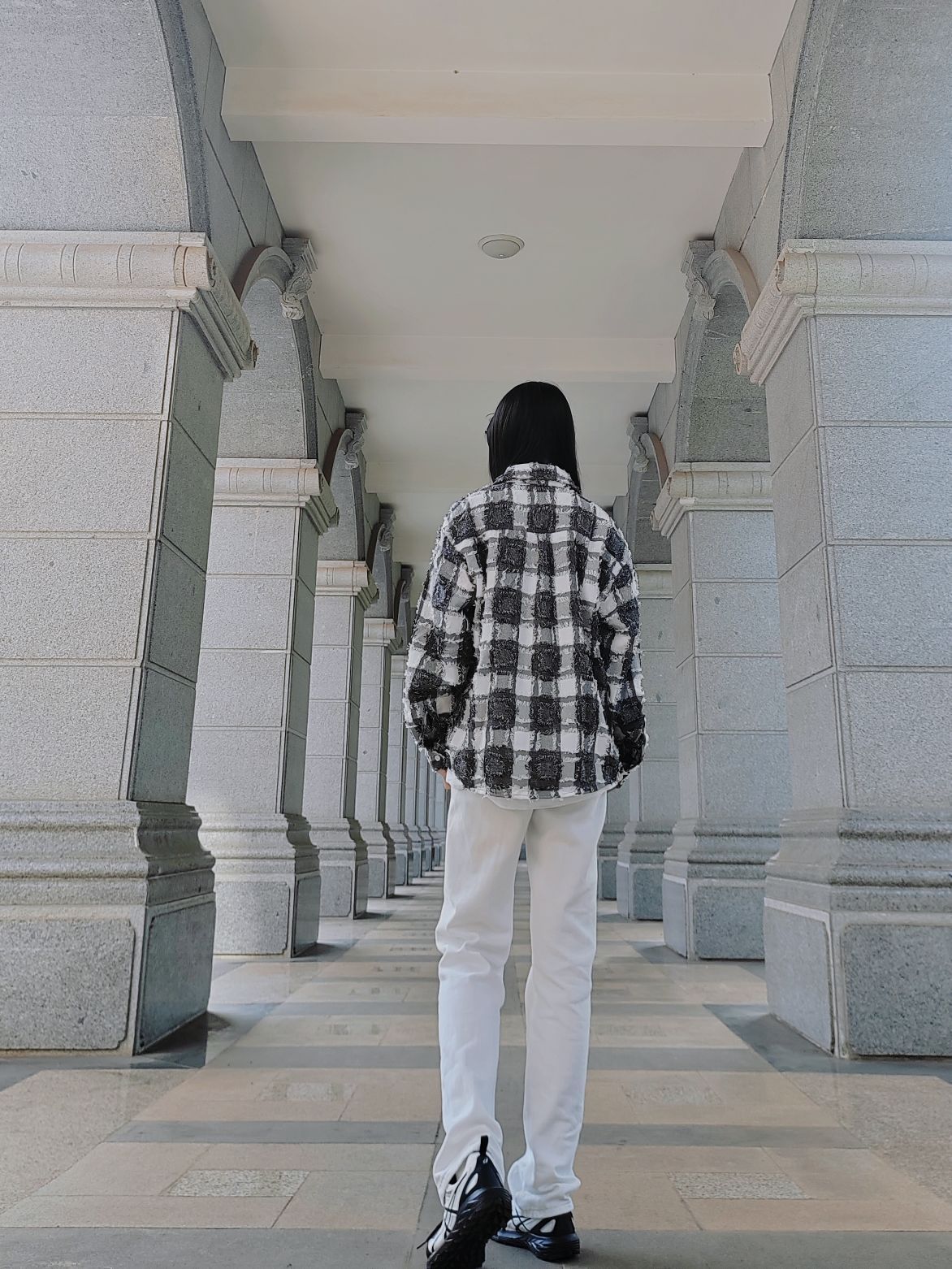 今天的穿搭好简约好美式吖 白色格子衬衫作为外套内搭白 下身搭配白色牛仔裤 穿搭灵感: 上半身:喜欢各种格子衬衫的我 当然离不开这件小香风大格子衬衫 小香风的设计蛮有特点的 整体有毛边设计 又潮有复古 内搭白色T恤或者白色圆领卫衣增加层次感 下半身:我选择的是同色系的白色牛仔裤 如果选择其他的牛仔裤也蛮好看的 黑白格子衬衫经典又百搭 鞋子我穿的也是同色系的黑白鞋子 今天这一身好干净好高级