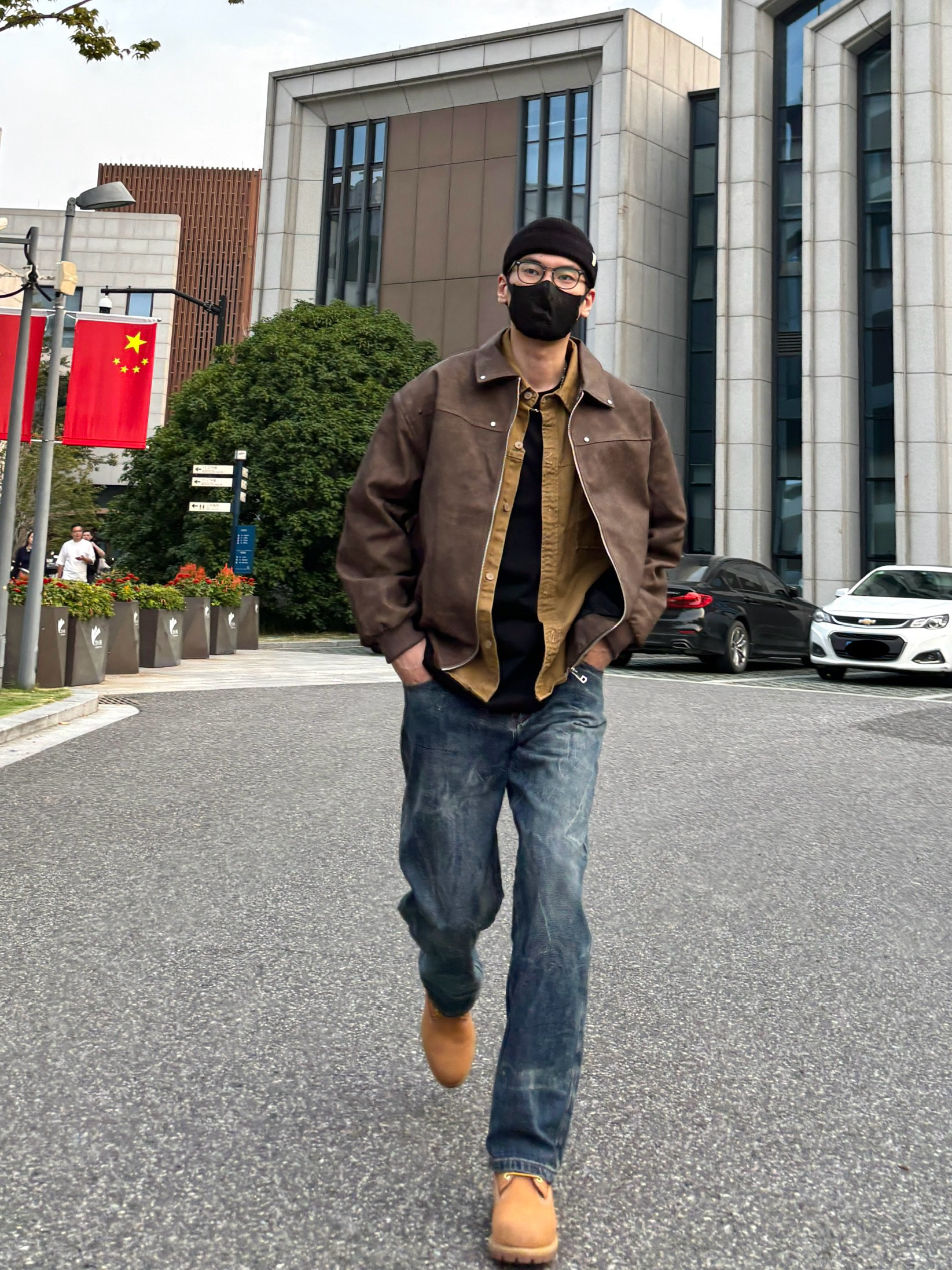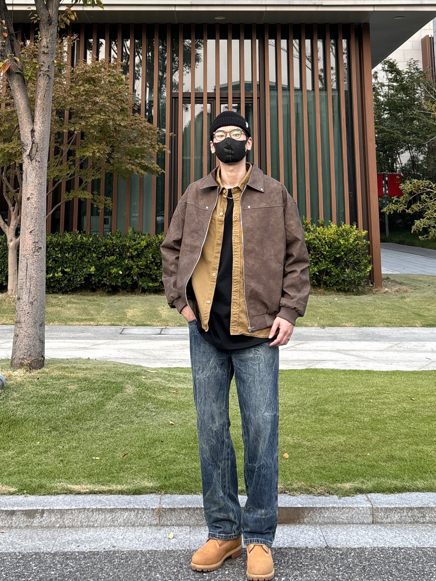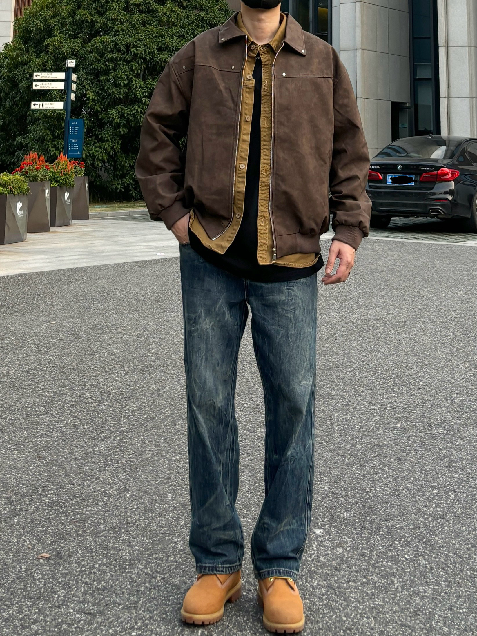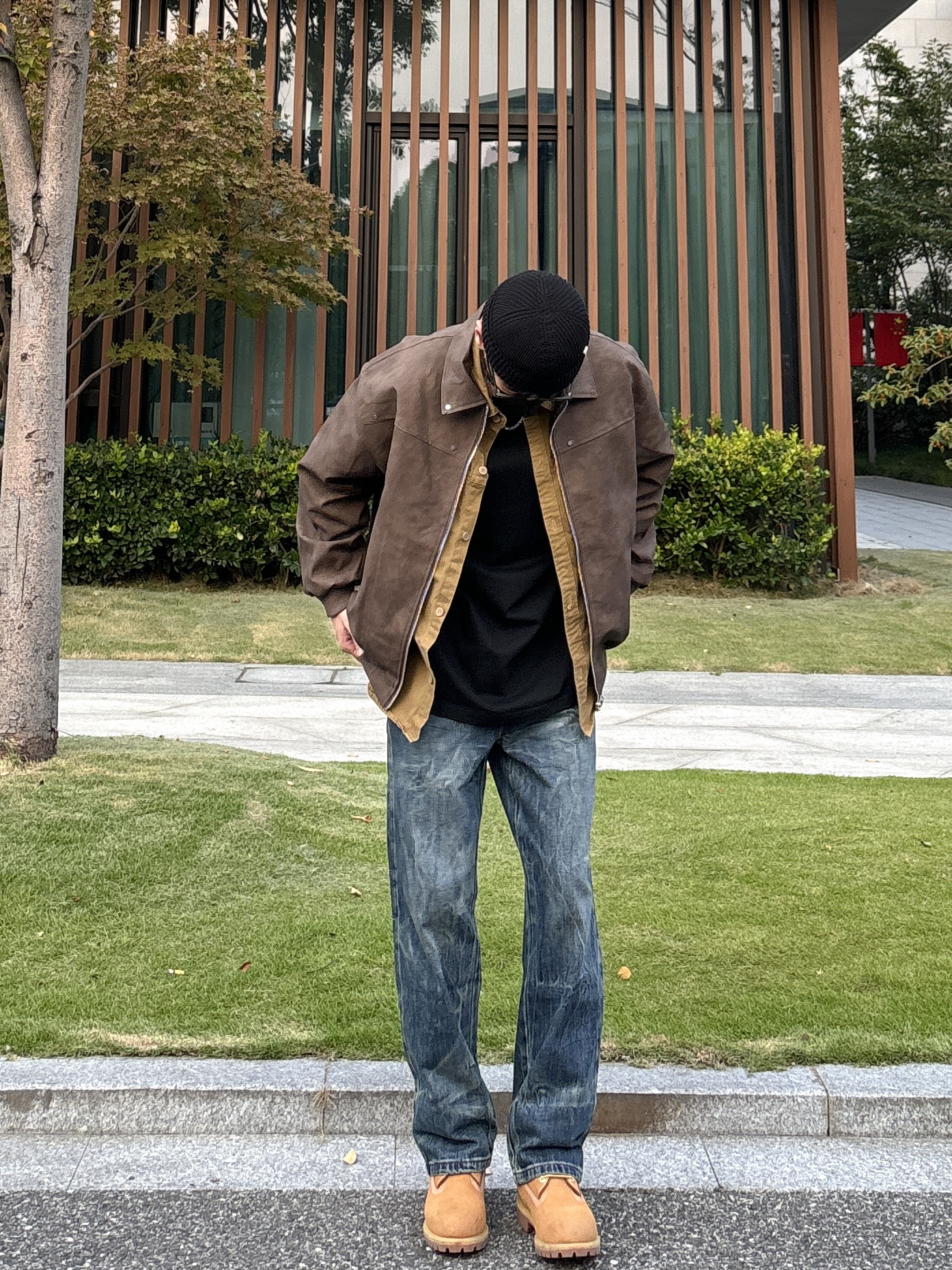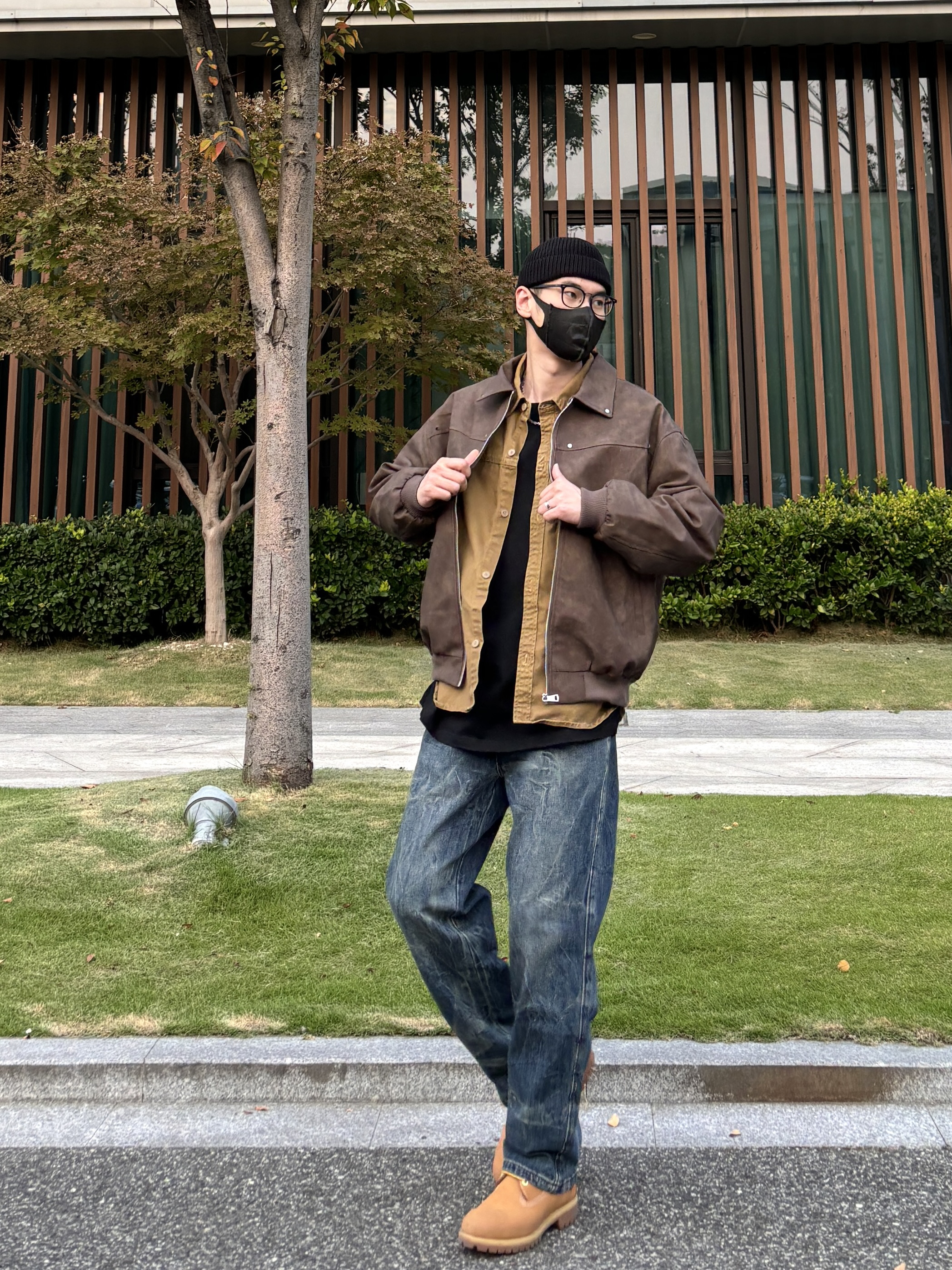 今天这套先用卡其色做旧工装衬衫做叠穿 ⬇️ 裤子选择不挑腿型的水洗直筒闪电纹牛仔裤 ⬇️ 鞋子上脚硬汉必备的timberland大黄靴 ⬇️ 接着套上深棕色宽松阔版复古翻领皮衣夹克 ⬇️ 最后戴上黑色线帽点缀一下整体穿搭 - 今日搭配 衣服裤子:NICE LILI 鞋子:timberland