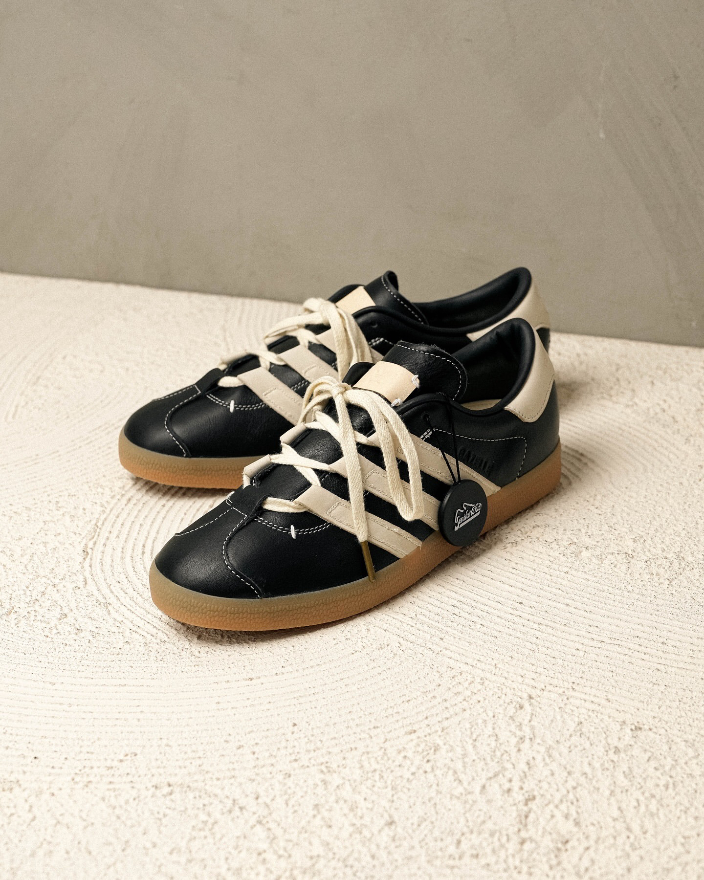 Adidas Gazelle室内x足部工业黑霜 用这双独特的穿搭来完成你的街头服装风格!鞋带的细节确实很准确,使黑色上面白色缝合的组合更加突出。非常适合谦卑的人,但仍然时尚