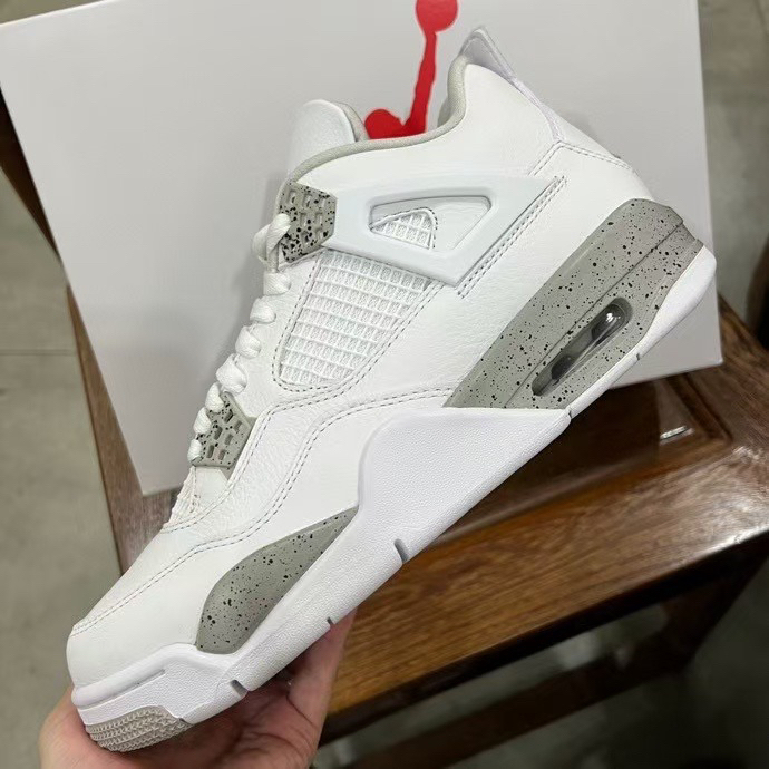 ⚪️Air Jodan4白奥利奥🍪第一眼看上这双鞋就直接爱上,一见钟情了属于是 ⚪️穿上这双鞋子,穿搭是不用愁了,真的百搭好看 ⚪️鞋面质感荔枝纹路,质感细腻,不过不够耐脏 ⚪️细节方面,醒目的红色飞人logo超帅 ⚪️建议穿长袜,有点磨后脚跟