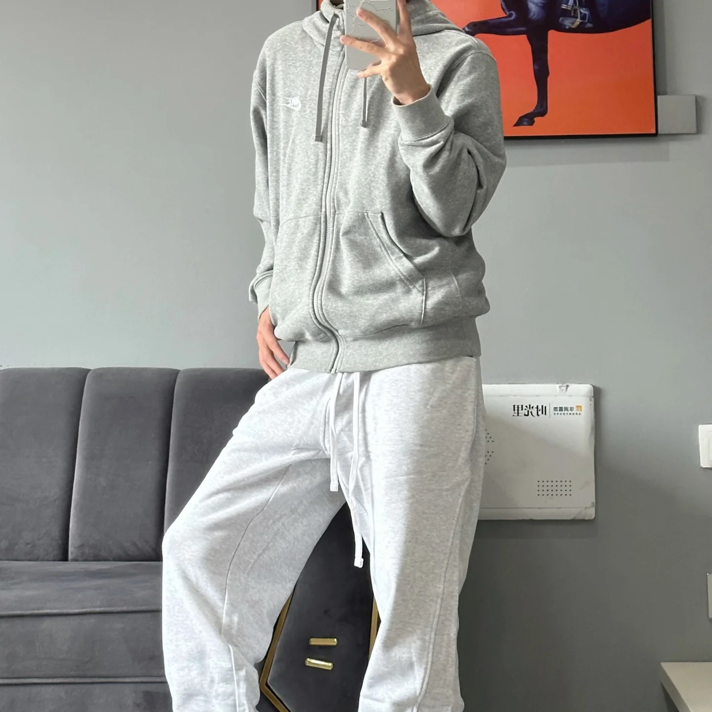 男生衣柜里必备的灰色休闲运动套装! M上衣是nike的灰色连帽卫衣 搭配一条灰色运动裤🫥 全身搭配起来整个人都精神了不少满满的荷尔蒙运动气息~~ 图片来源于@Nancy