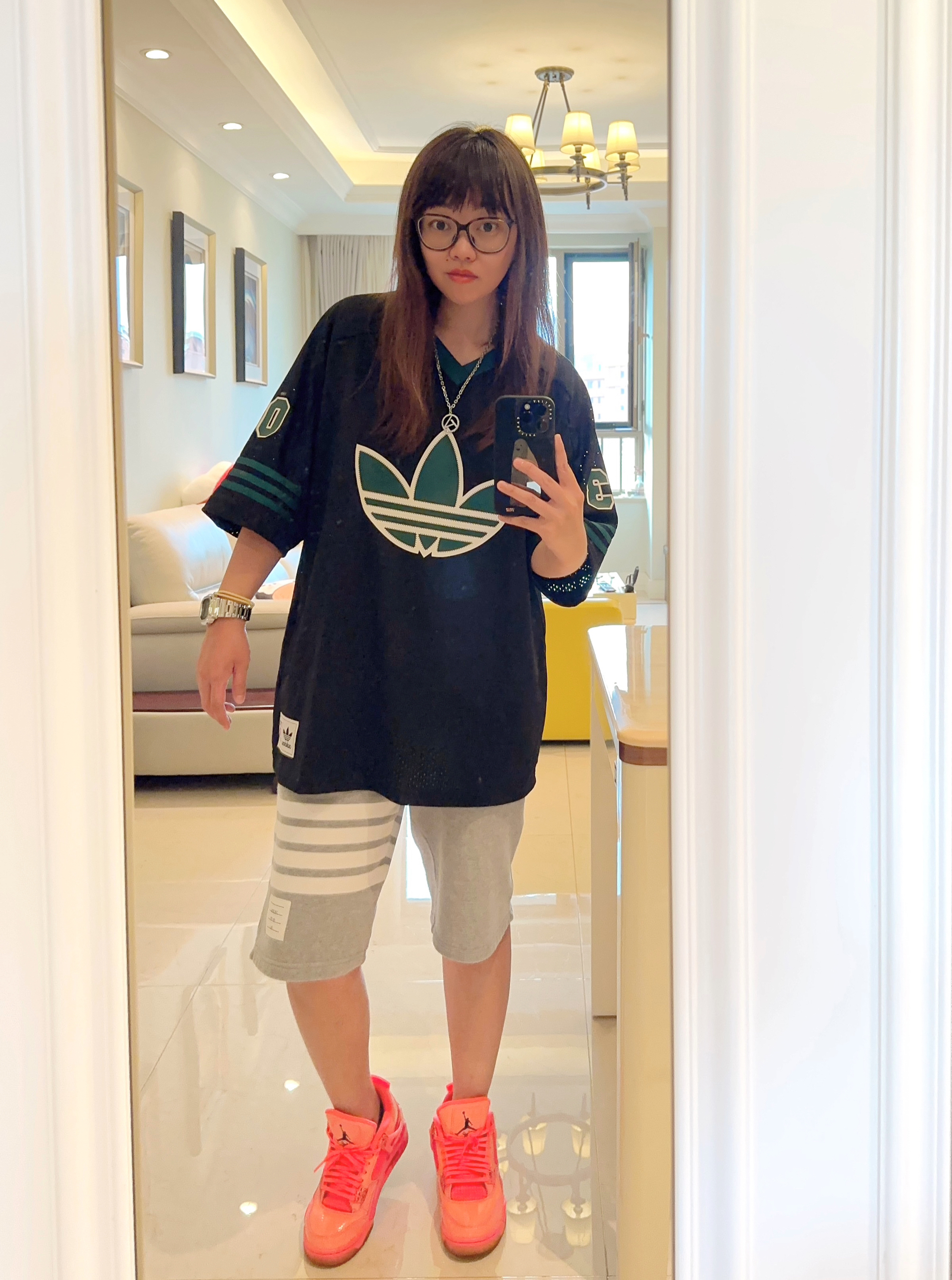 针织开衫真的好爱,里面搭一个白t,简约不简单 当然,在没风的天气里,单穿是很好的。大风天气不太行