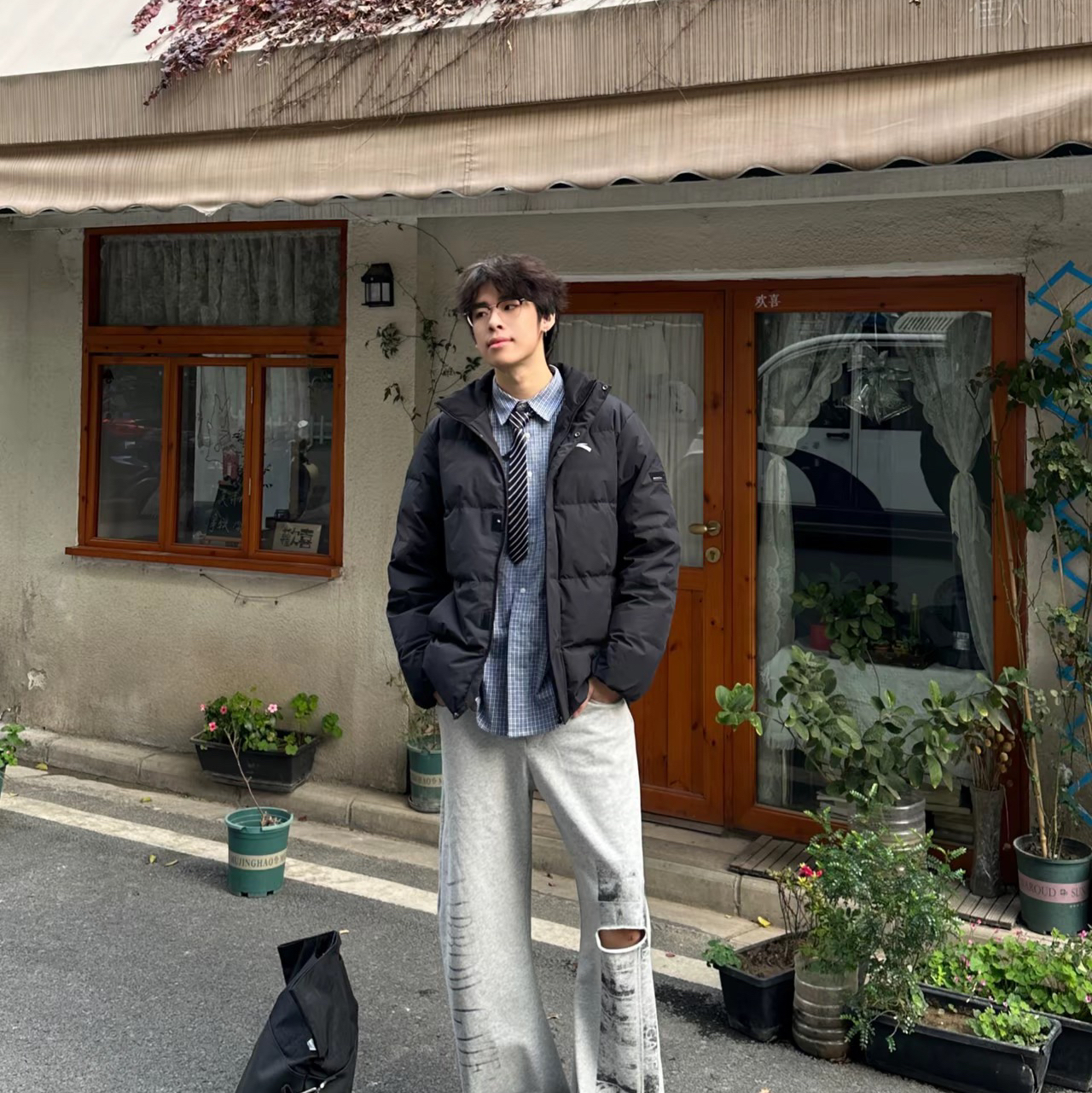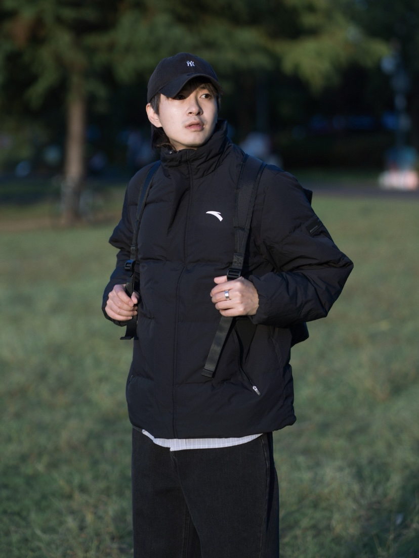 天冷的好快 浅试一下冬季的搭配🦴 整体还是偏深色的搭配上衣来自安踏的羽绒服 整体很轻薄 蓬松度很好🍁 防风防泼水实用性也特别高 黑色羽绒服的话可以选择内搭一件衬衫 这样整体不会太沉闷🍓 @巧克努努力