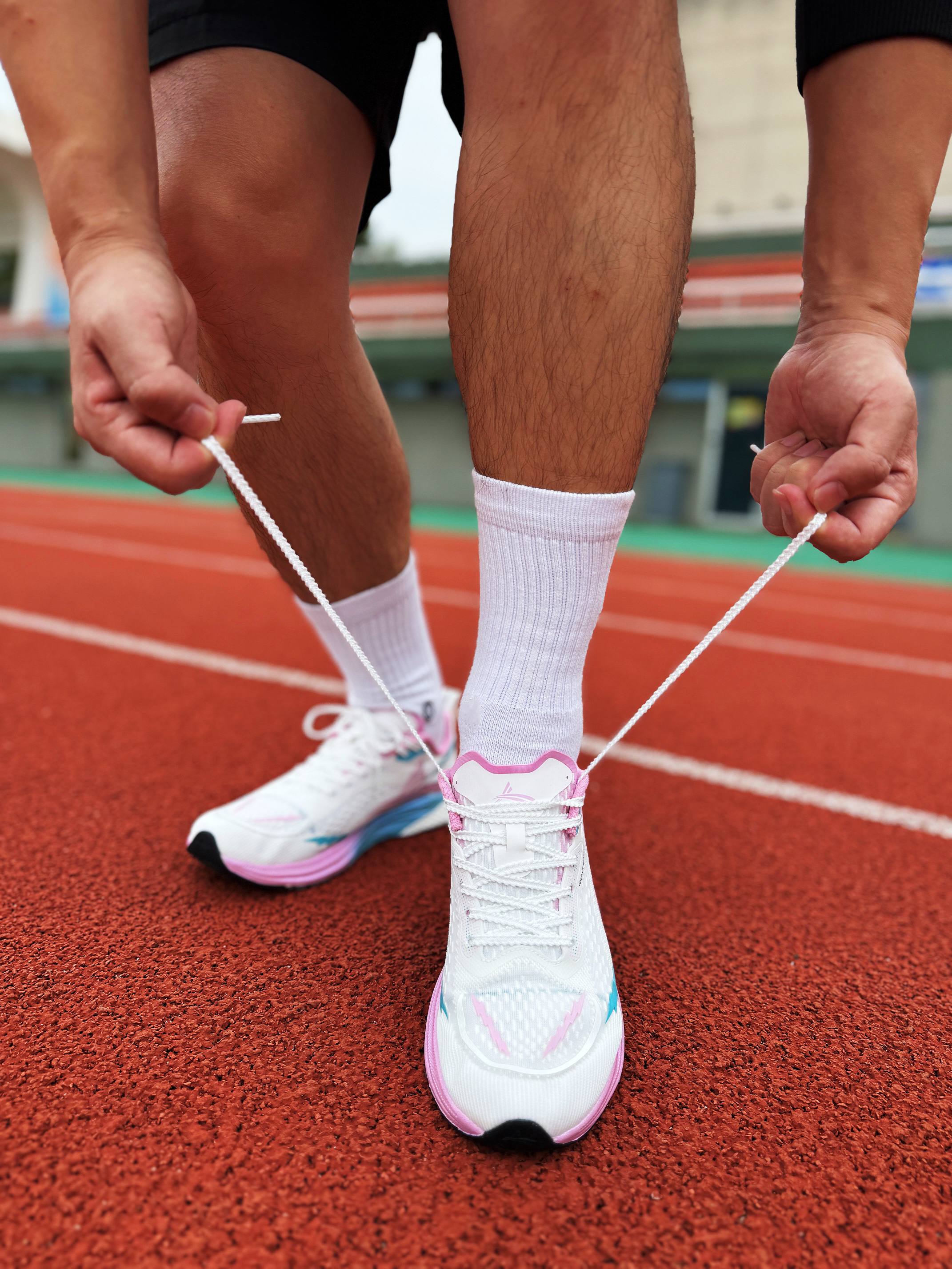 沃兰迪911梦幻闪电跑鞋真的太火了!今天上脚的这双GL联名配色真还不错 白粉蓝的组合搭配清新脱俗 让我有种重回校园的感觉! 中底采用的V800纯碳板搭配超临界鞋垫 鞋子上脚轻便韧弹 推进力给我的感受很激进!运动中的稳定性也不错 重点不泄力!CPU + GCU的外底组合 前掌碎钉也保证了鞋子的抓地性!身边一些体育生、学生党朋友体测体考有在穿 毕竟销量摆在那!薄底设计也非常适合场地运动 跑起来真的挺...