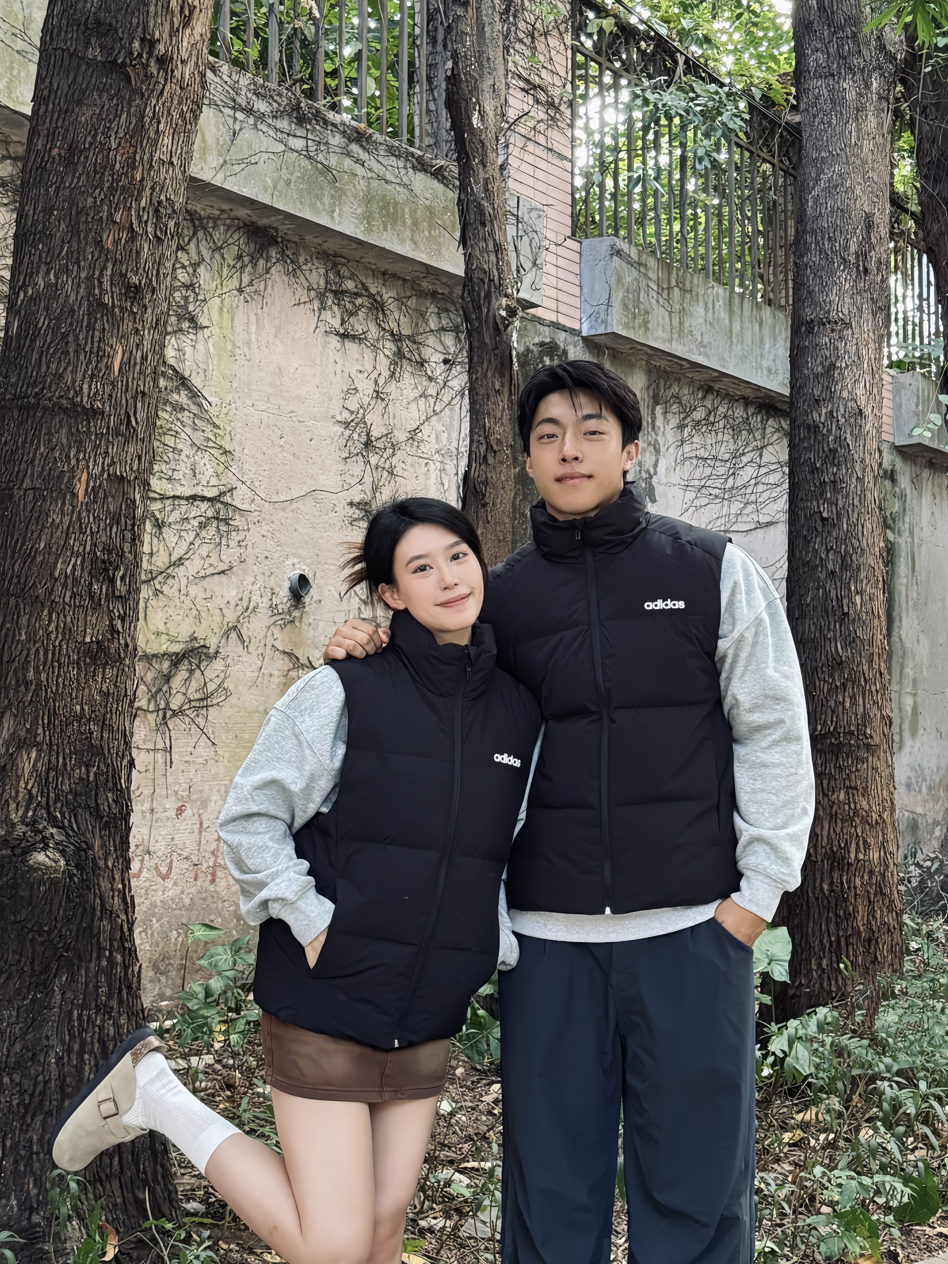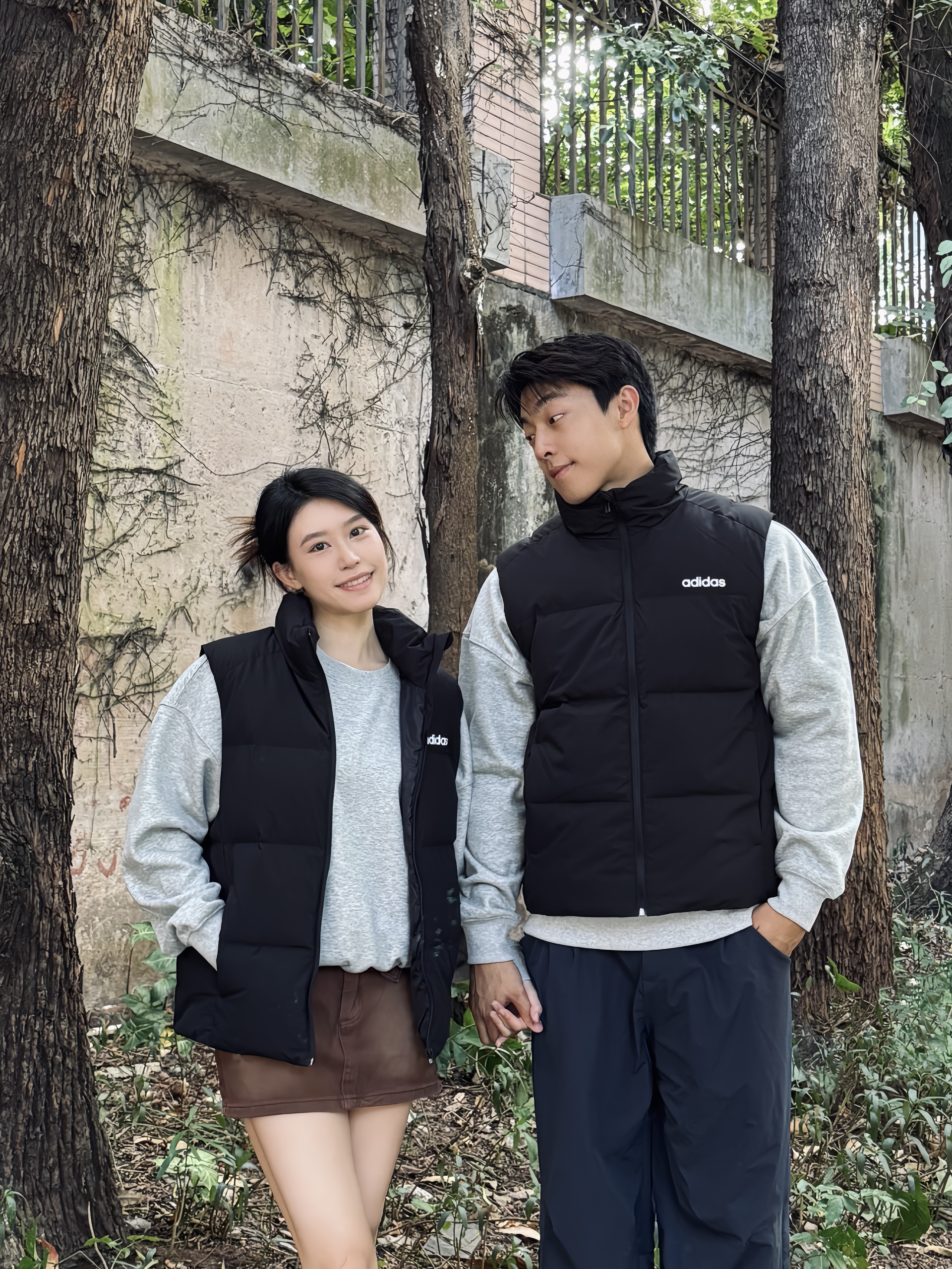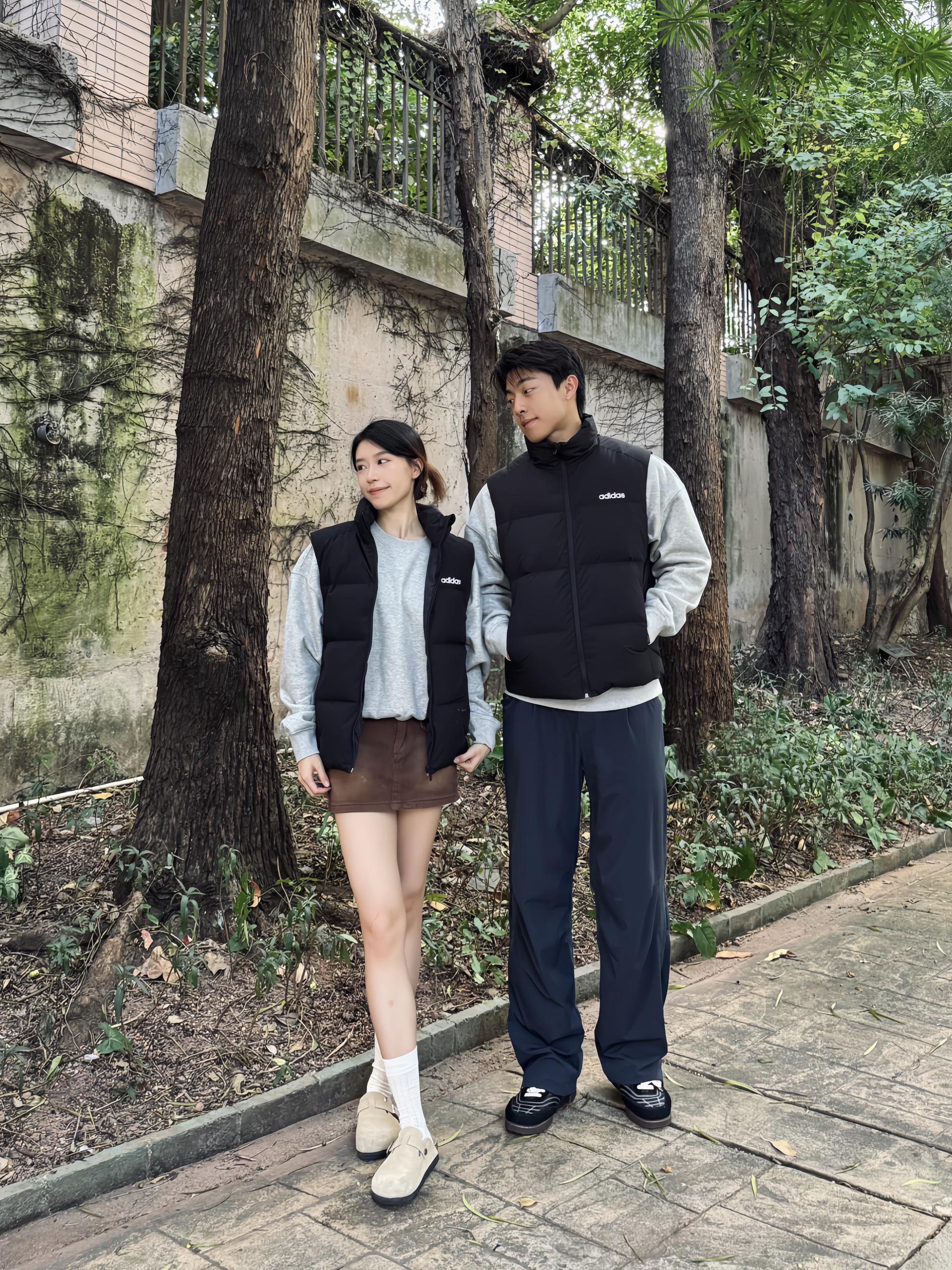 分享情侣Ootd 拒绝不了羽绒马甲带来的叠穿时尚感 卫衣➕阿迪达斯羽绒马甲 🆒到了! 立领设计防风护颈好实用~ 简约的Logo设计 耐看又百搭 👧165/90 穿S码 👦185/160 穿XL码
