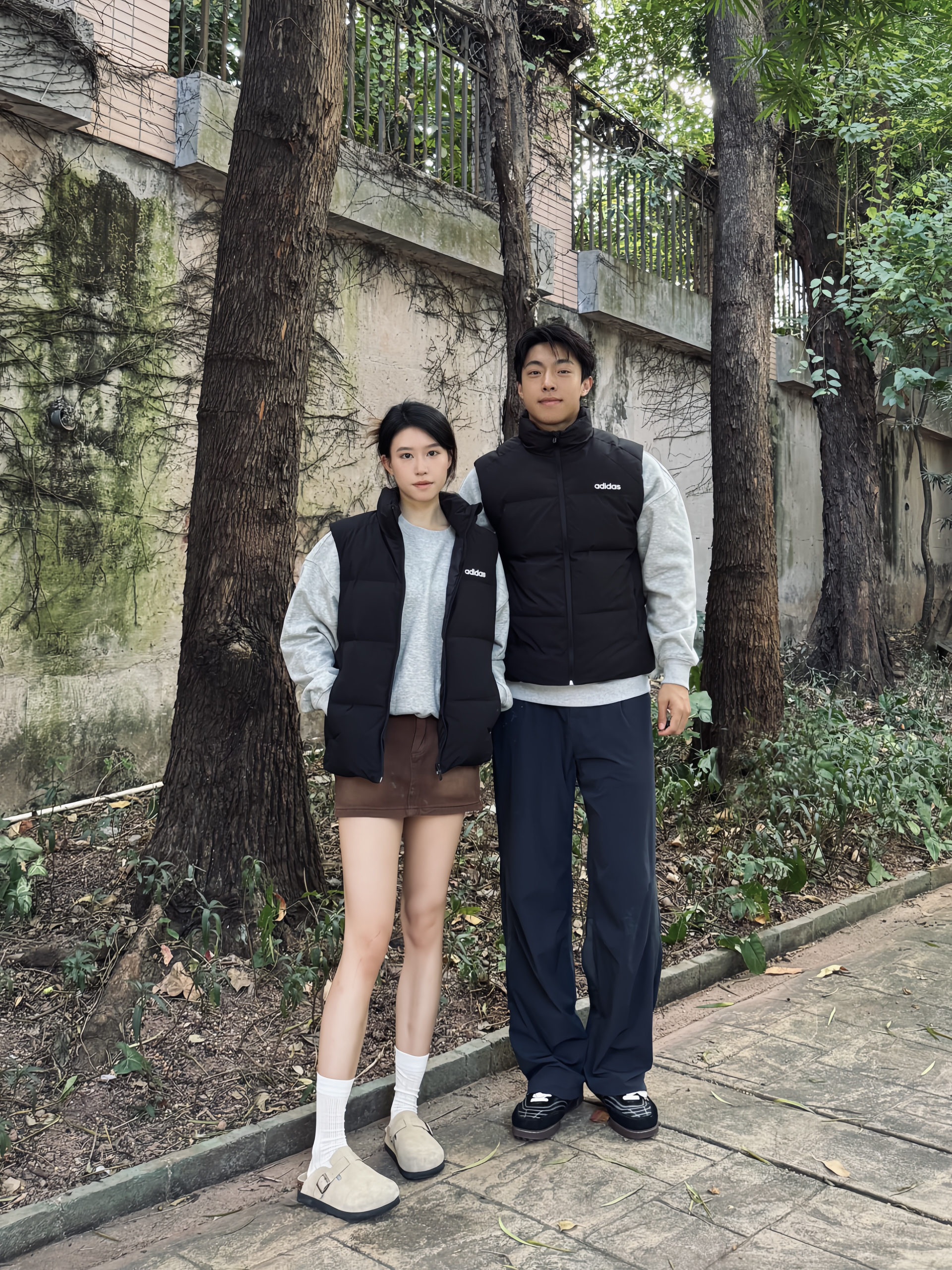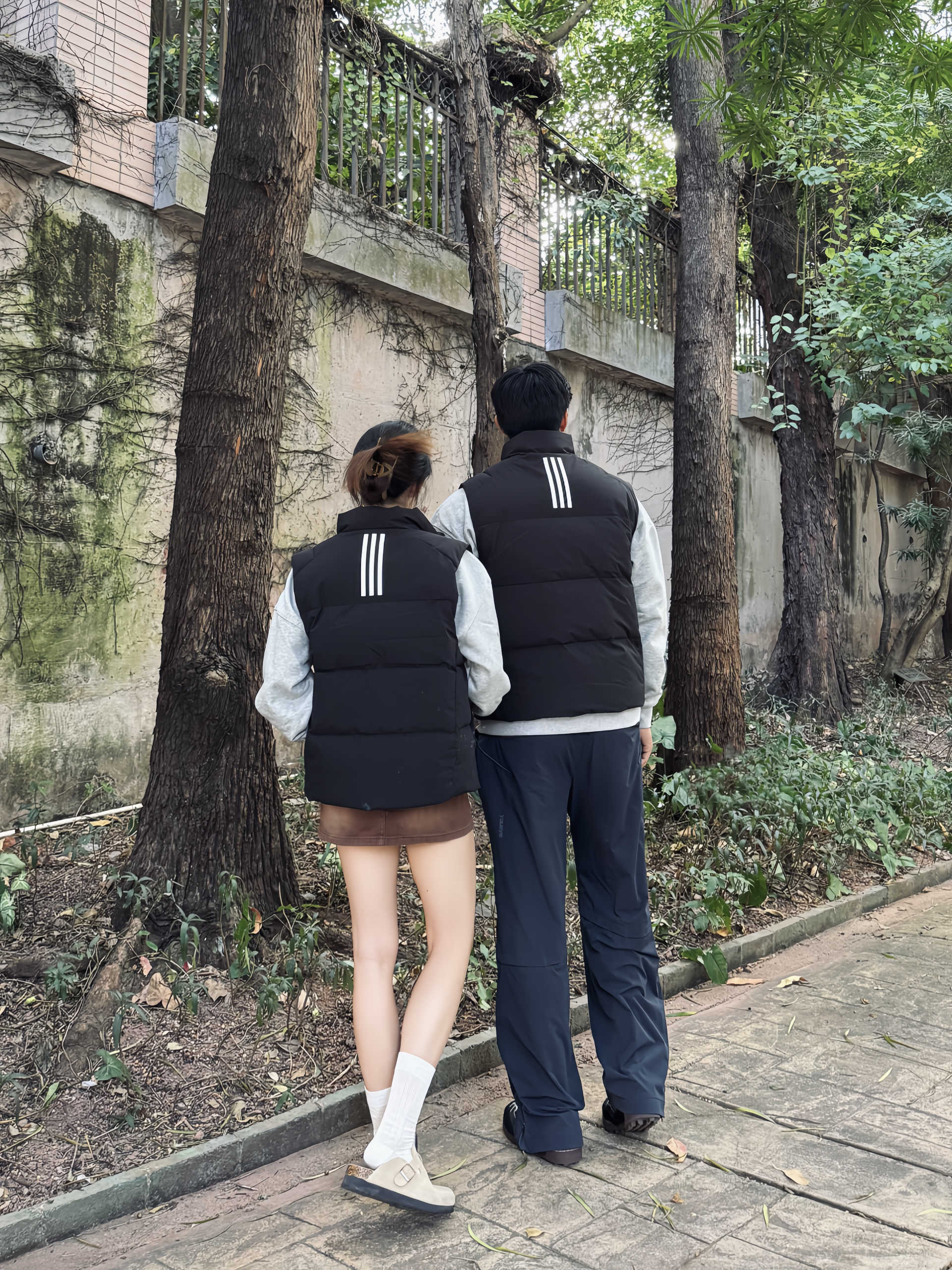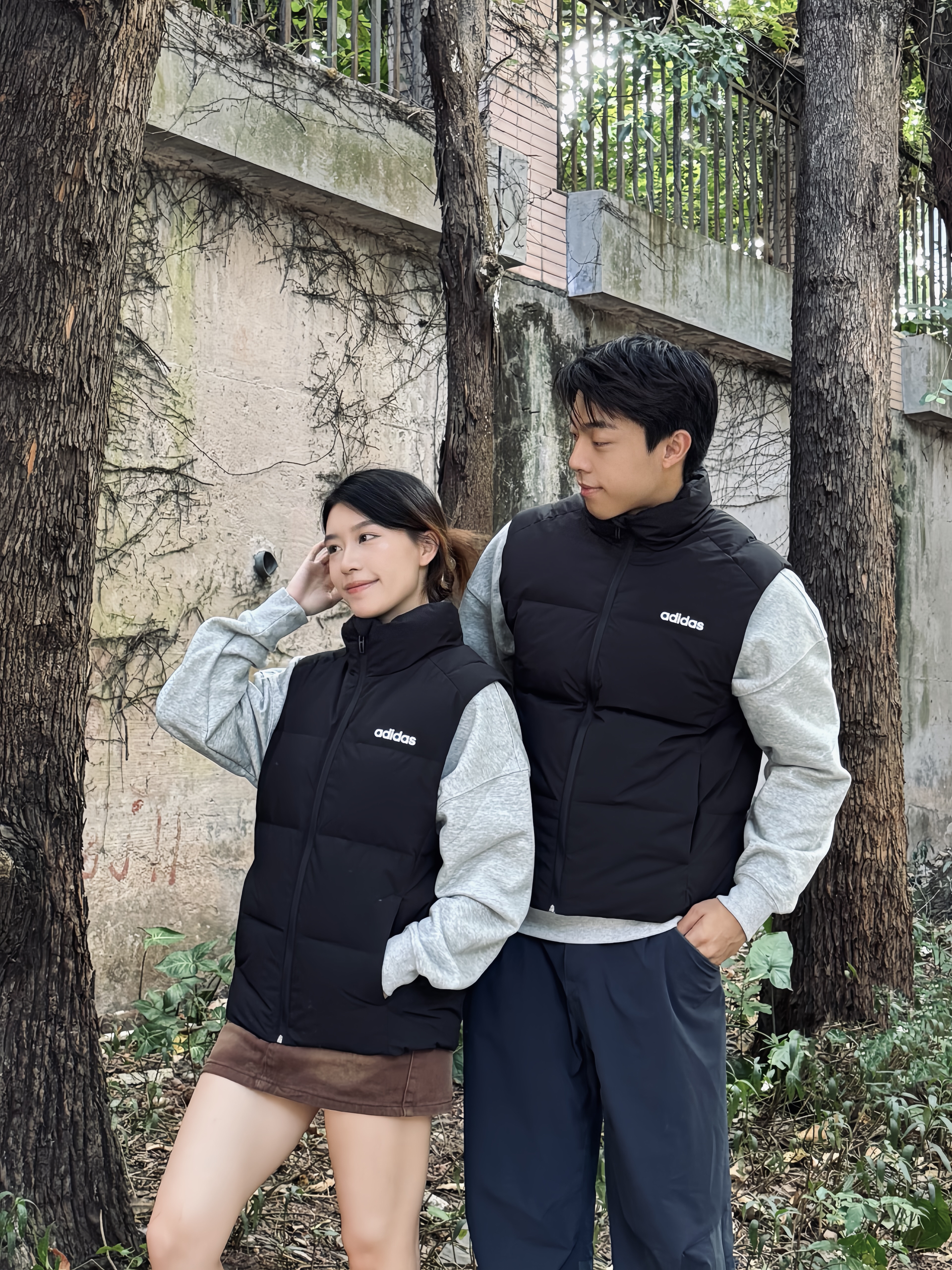 分享情侣Ootd 拒绝不了羽绒马甲带来的叠穿时尚感 卫衣➕阿迪达斯羽绒马甲 🆒到了! 立领设计防风护颈好实用~ 简约的Logo设计 耐看又百搭 👧165/90 穿S码 👦185/160 穿XL码