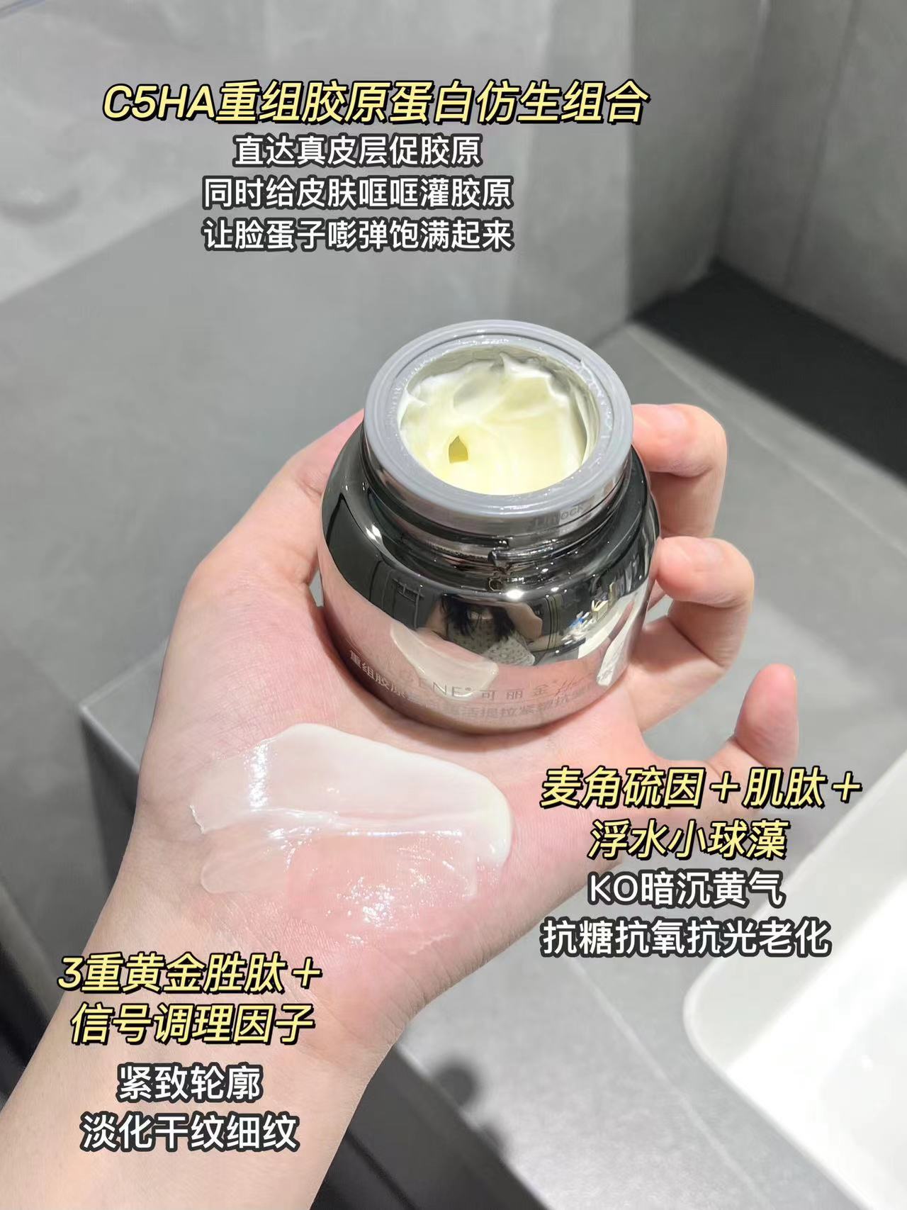 可丽金!你真的不愧是巨子生物旗下的! 做重组胶原蛋白真的超专业的好嘛! 💘用过一段胶卷面霜以后觉得! 真的不愧是你啊!脸真的不垮了! 三位数用出四位数的效果你也是牛! 我看谁还不冲的! 一瓶能够面对抗老+淡纹+紧致问题的面霜究竟有多厉害! 不仅加了C5HA重组蛋白胶原仿生组合! 🤩给肌肤胶原不断增能! 3重黄金胜肽和信号调理因子! 直接淡纹抚平!脸上的小细纹都不用再担心了! 第二天早上醒来细纹肉眼...