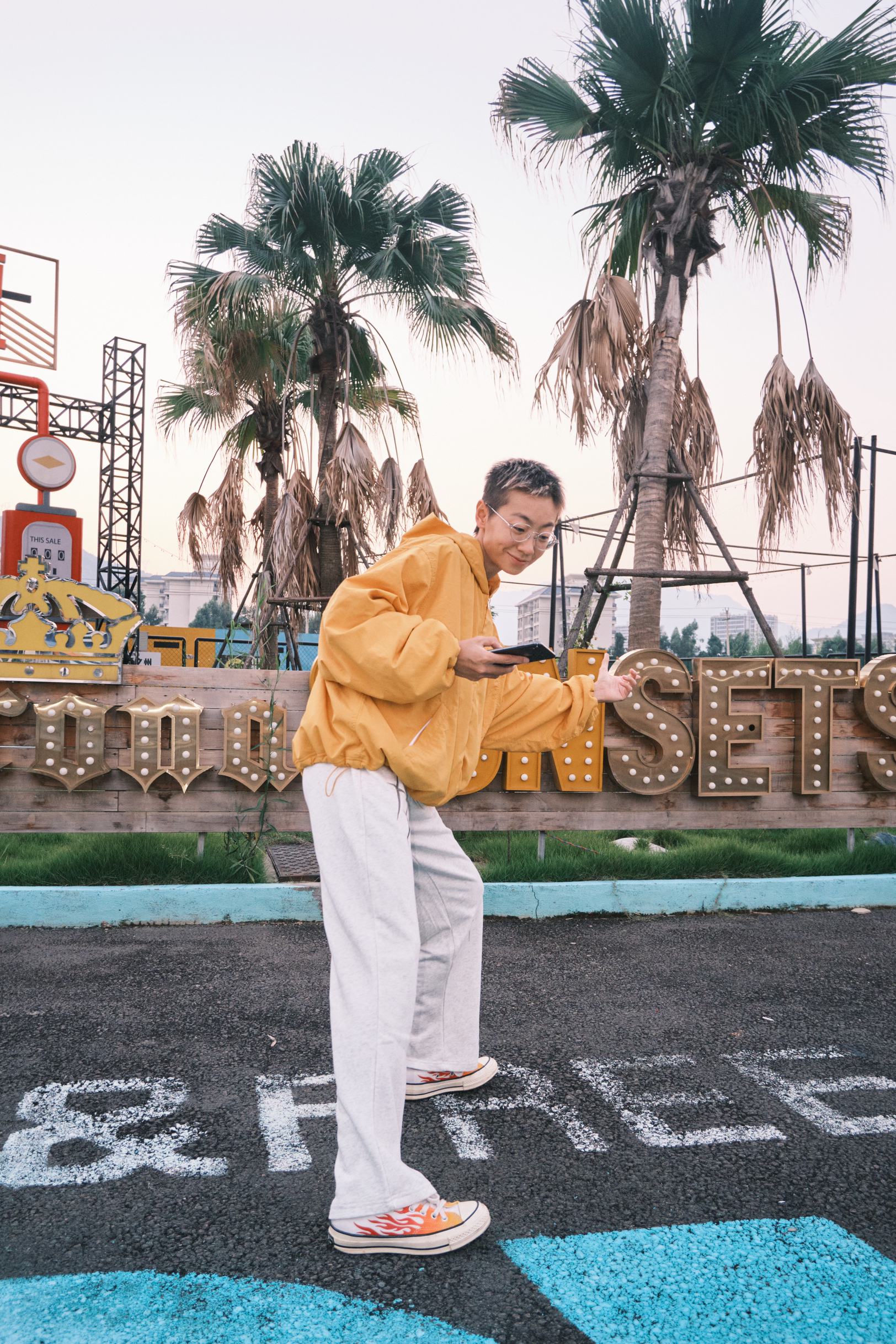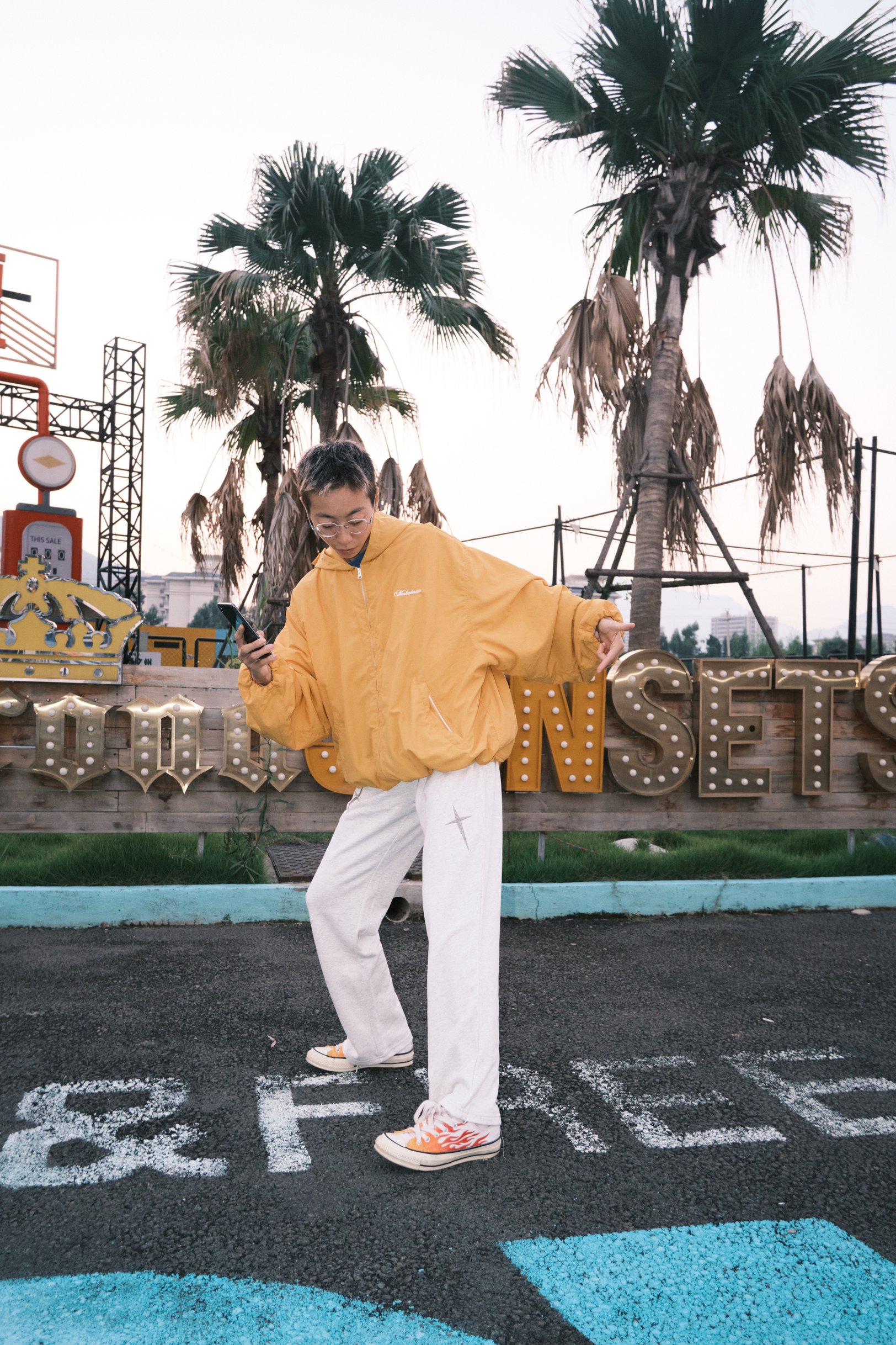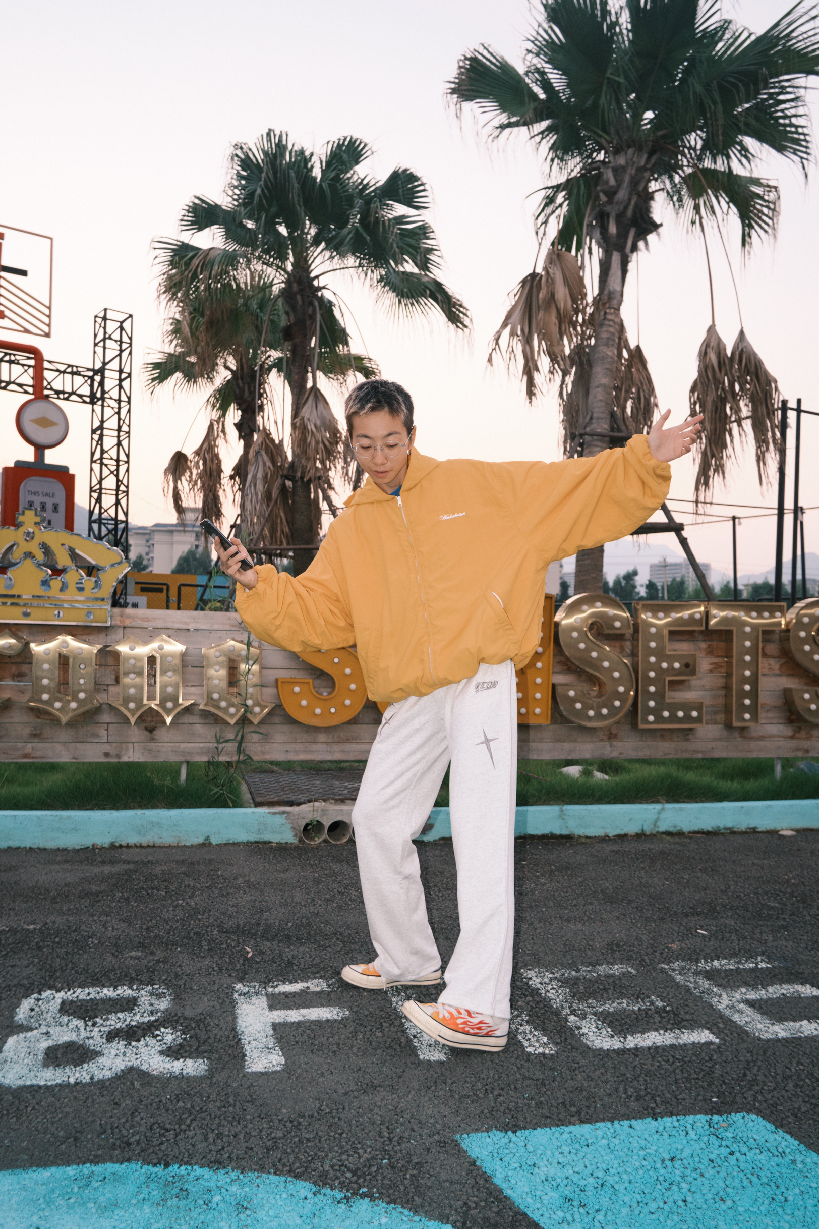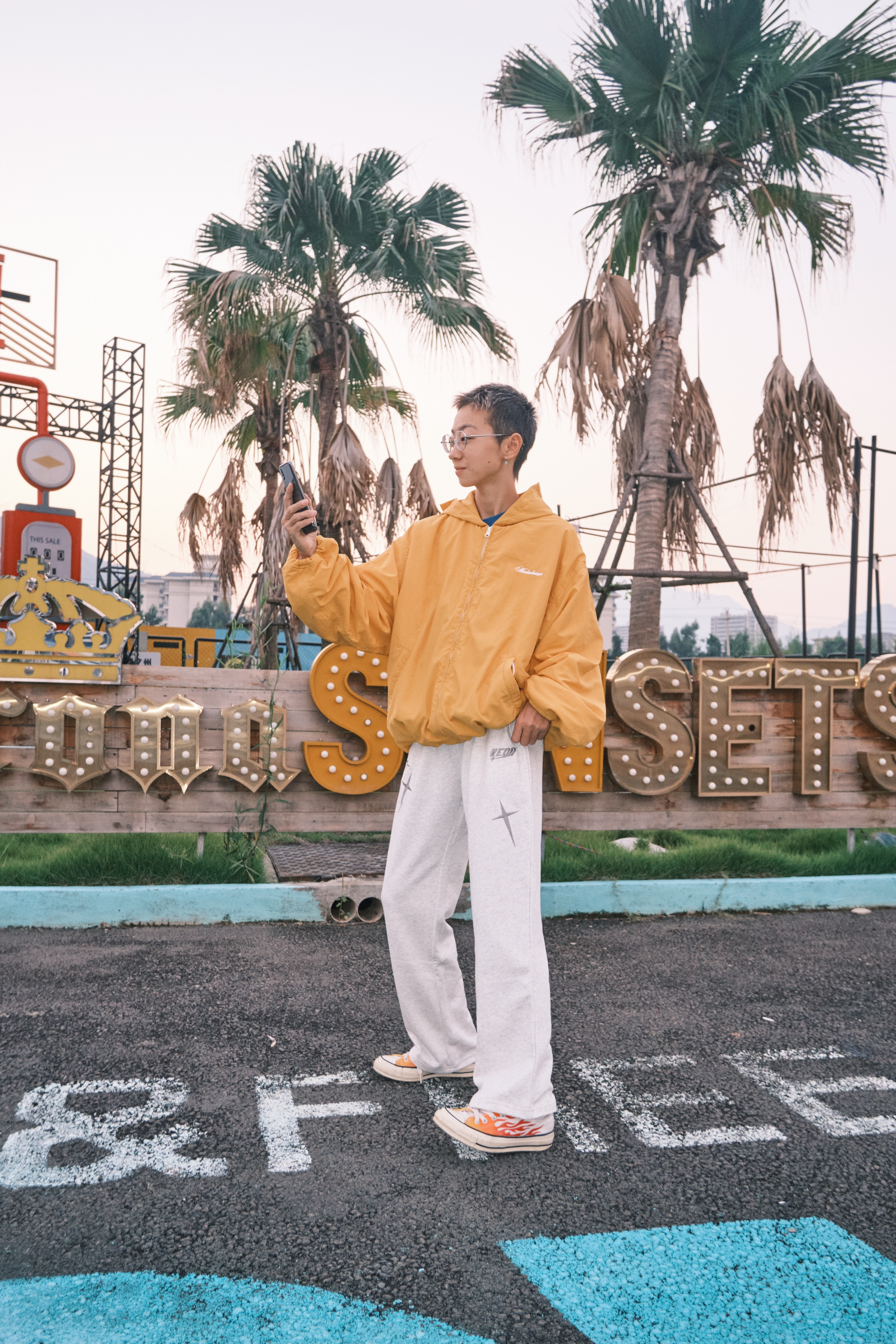 哈喽,欢迎来到哇哇哇穿搭分享频道! 168CM|45KG|👔:M 👖:m|👟:39码 秋冬潮流感穿搭来咯 上身黄色外套 吸睛还显白 下半身穿个灰白星星💫直筒裤 在穿个火焰🔥匡威 今天看了日落 一整身穿搭和日落很配哟