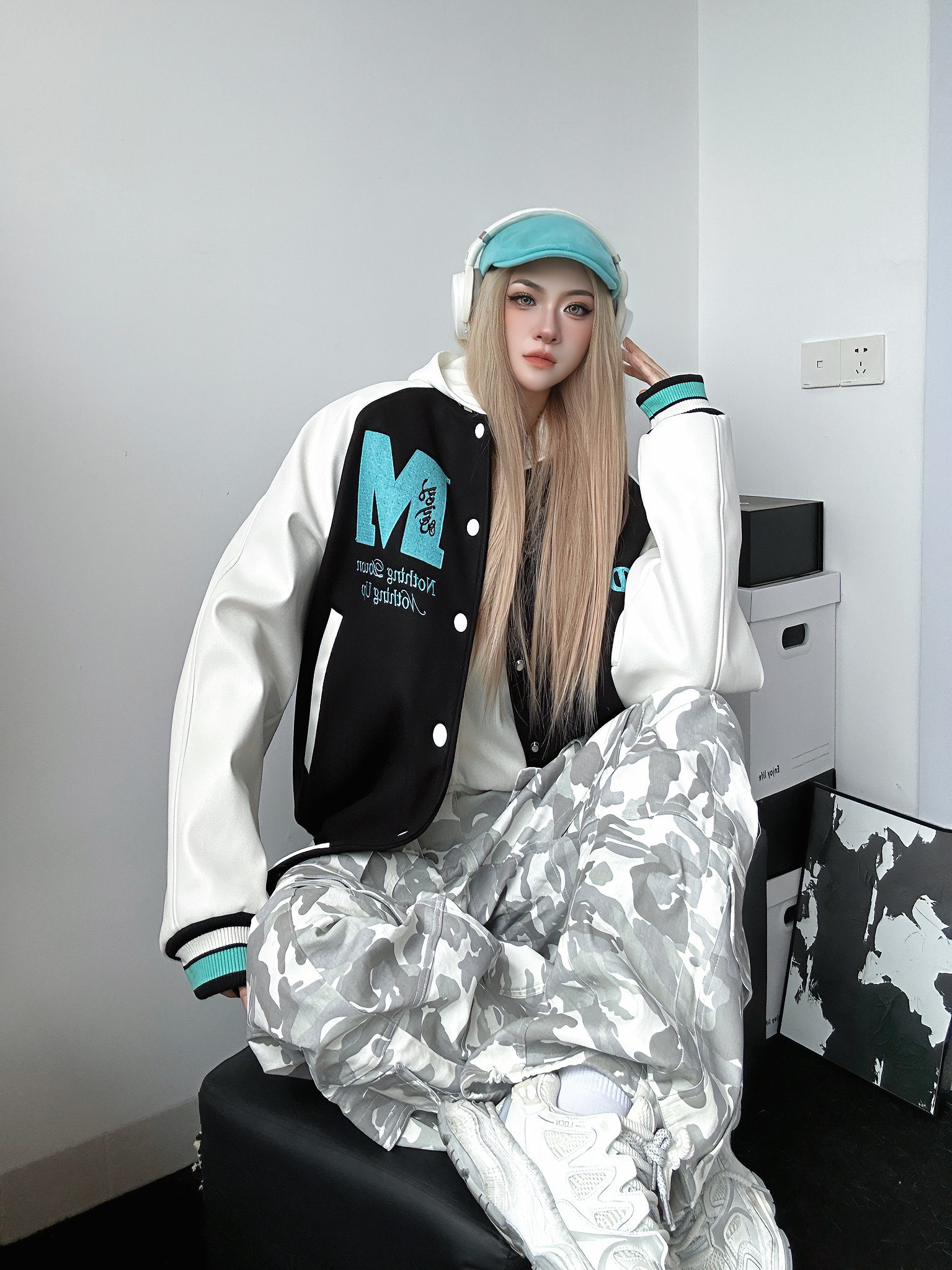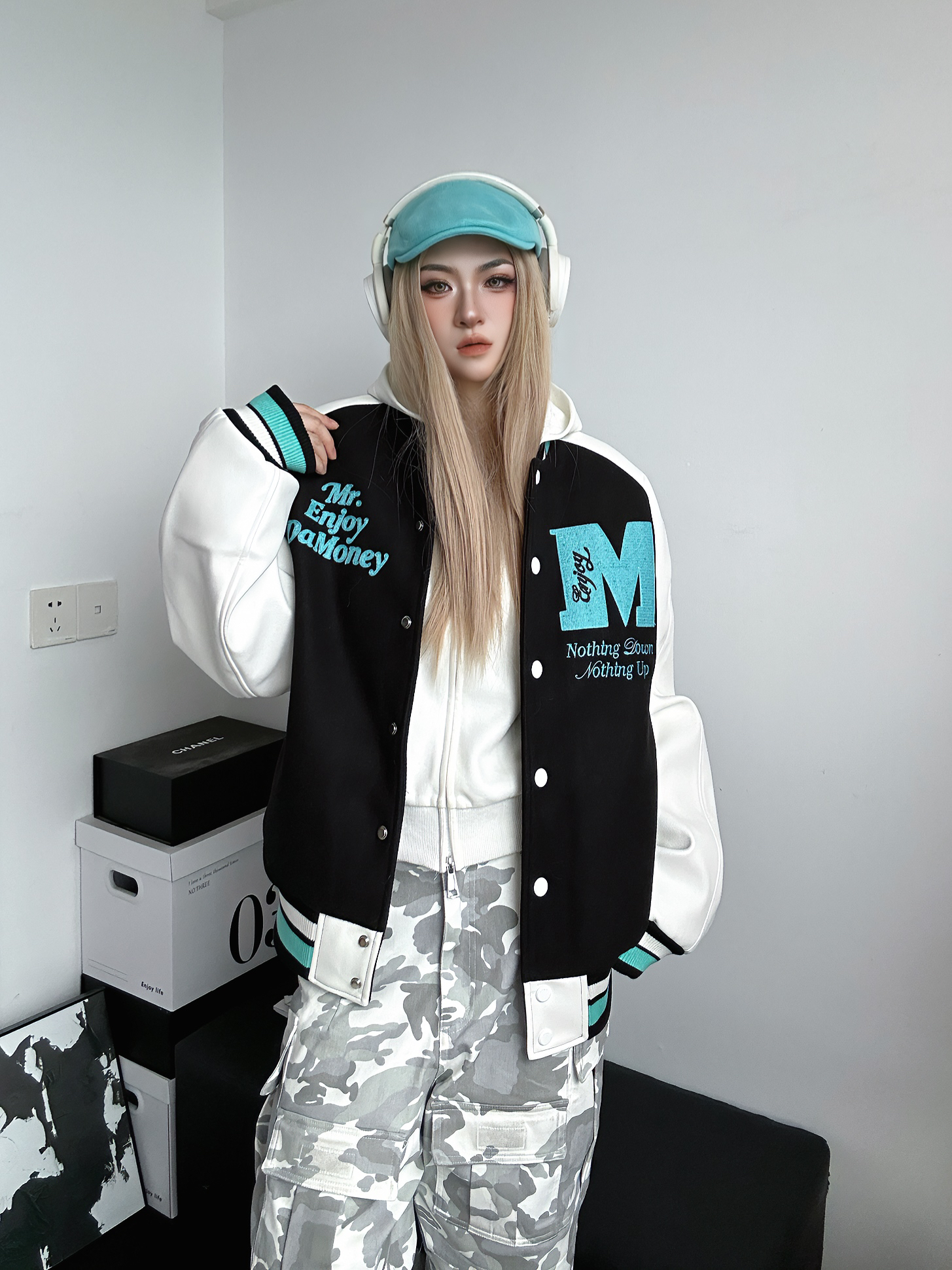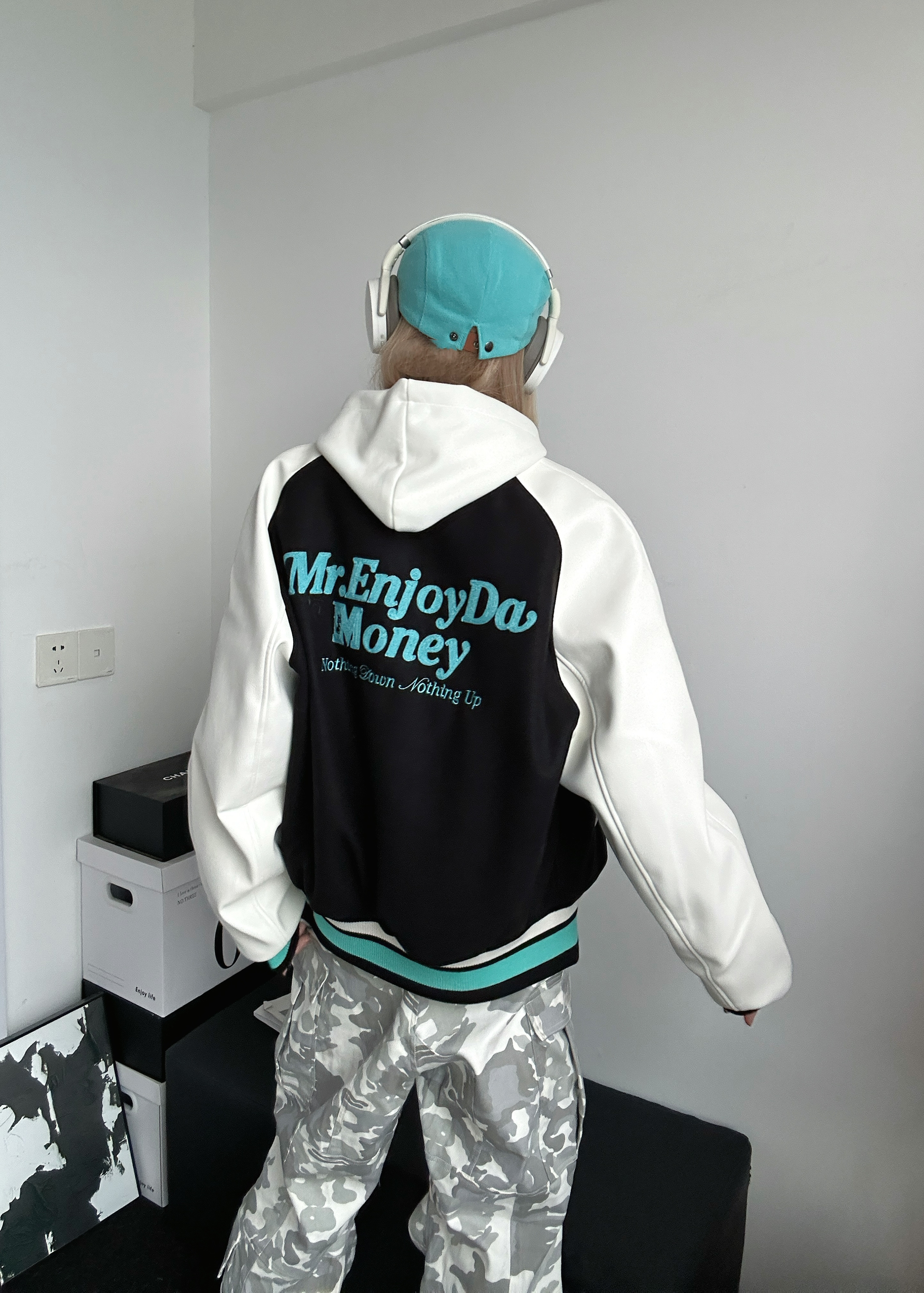 今日穿搭好物分享 上身棒球服来自MEDM 个人非常喜欢的国潮品牌之一 这件棒球服也是我的心头好 黑色➕薄荷绿的跳色搭配出乎意料的好看 衣服非常重工 刺绣🪡高级感十足 怎么搭配都不会出错的一件 衣柜必备棒球服