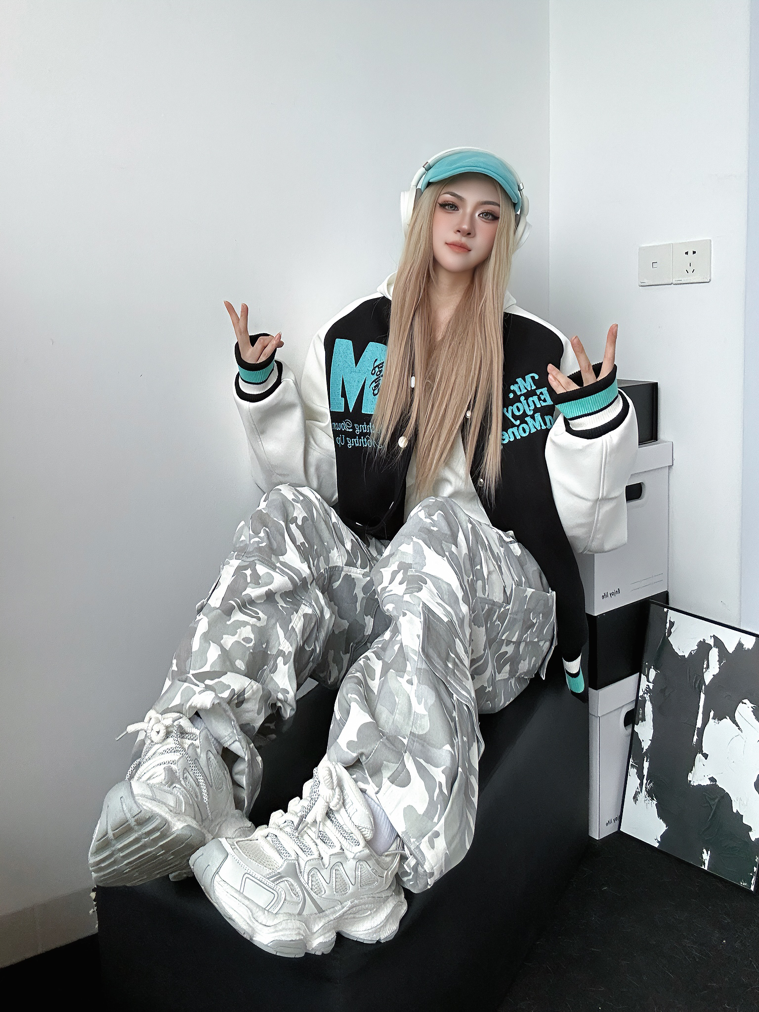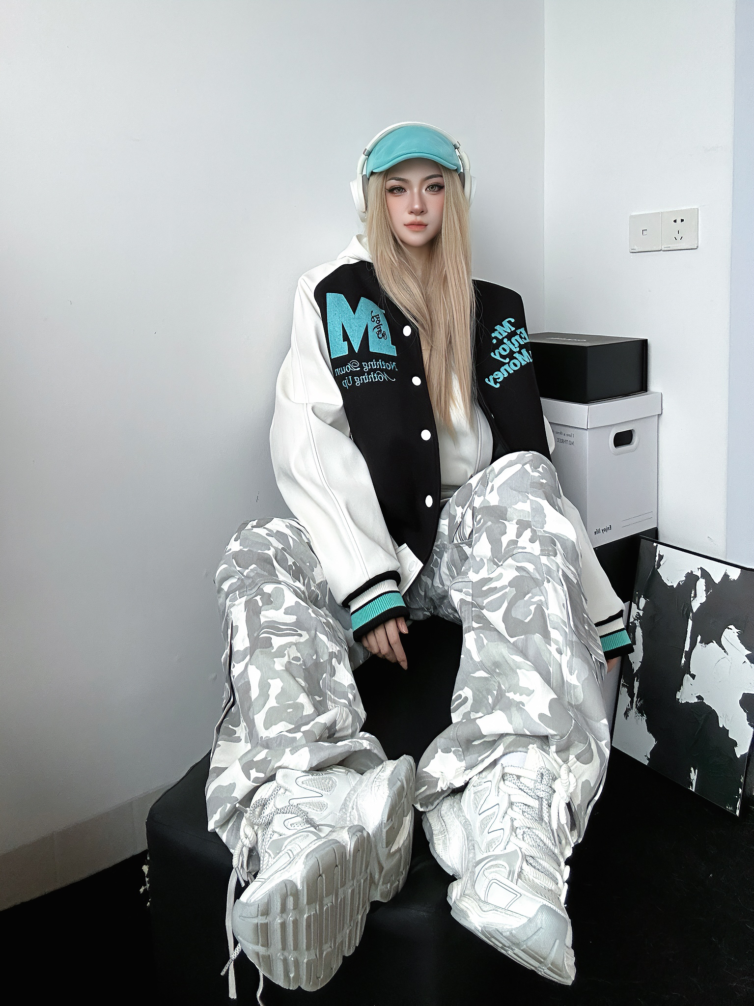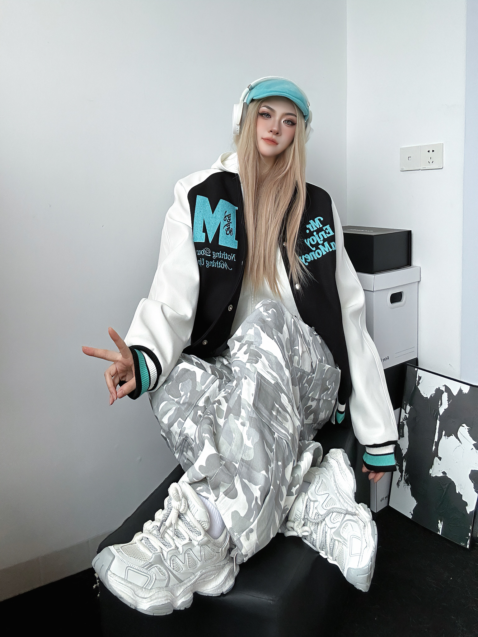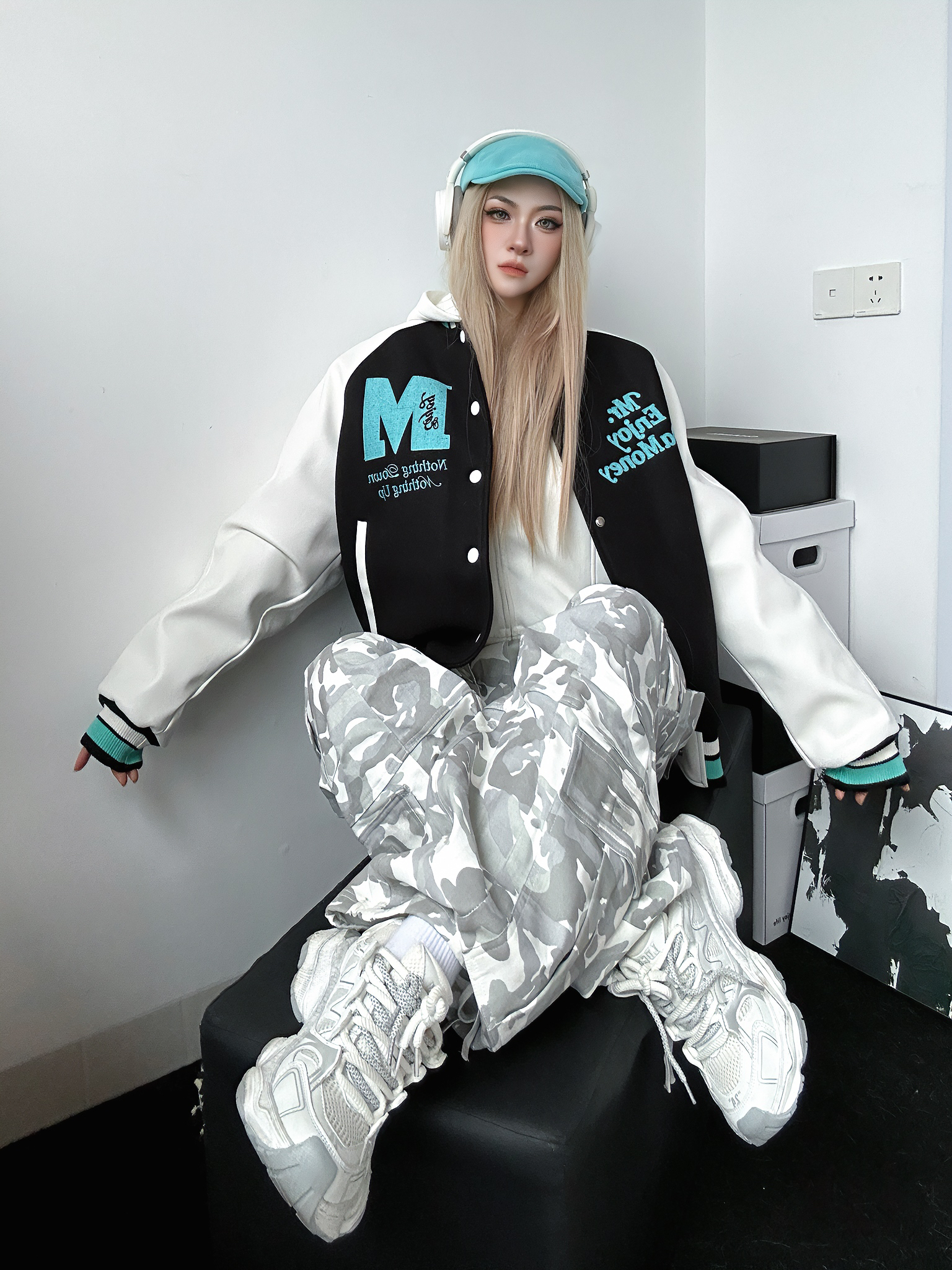 今日穿搭好物分享 上身棒球服来自MEDM 个人非常喜欢的国潮品牌之一 这件棒球服也是我的心头好 黑色➕薄荷绿的跳色搭配出乎意料的好看 衣服非常重工 刺绣🪡高级感十足 怎么搭配都不会出错的一件 衣柜必备棒球服