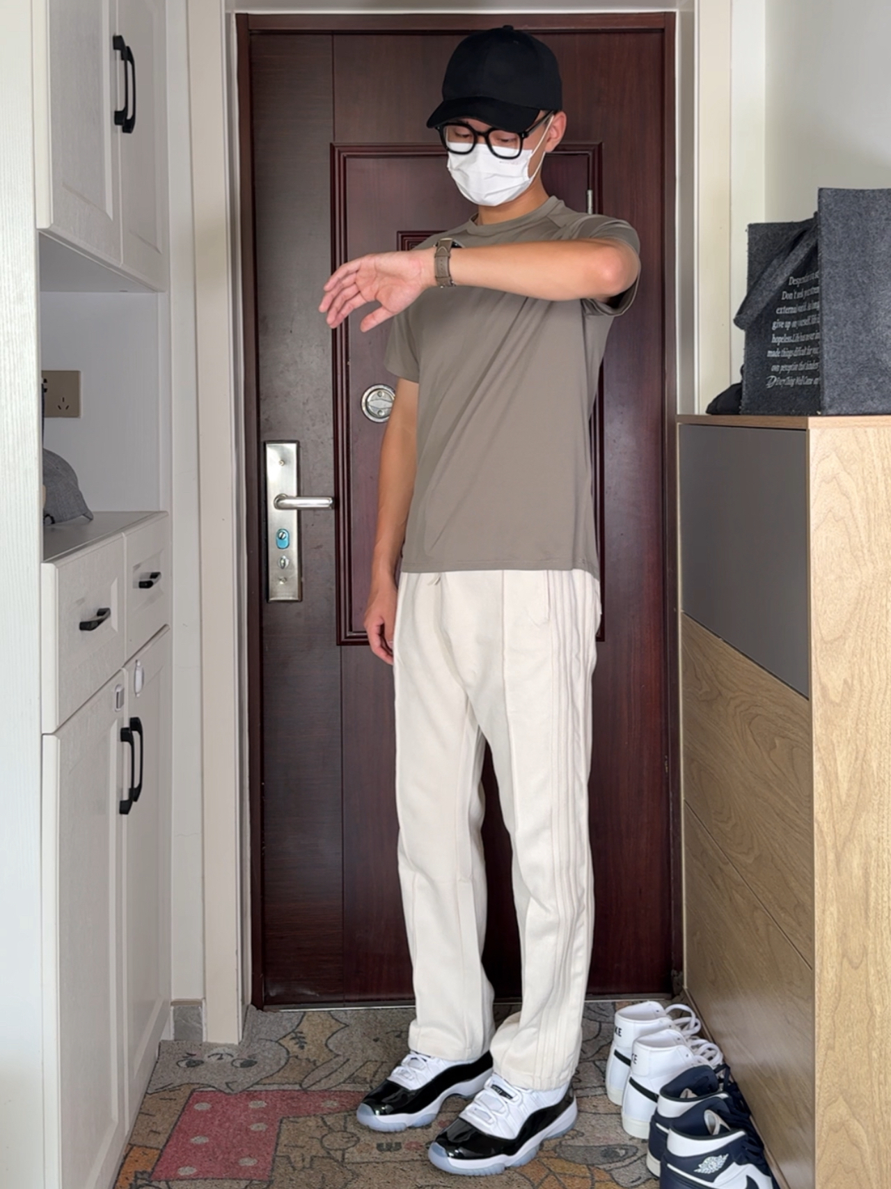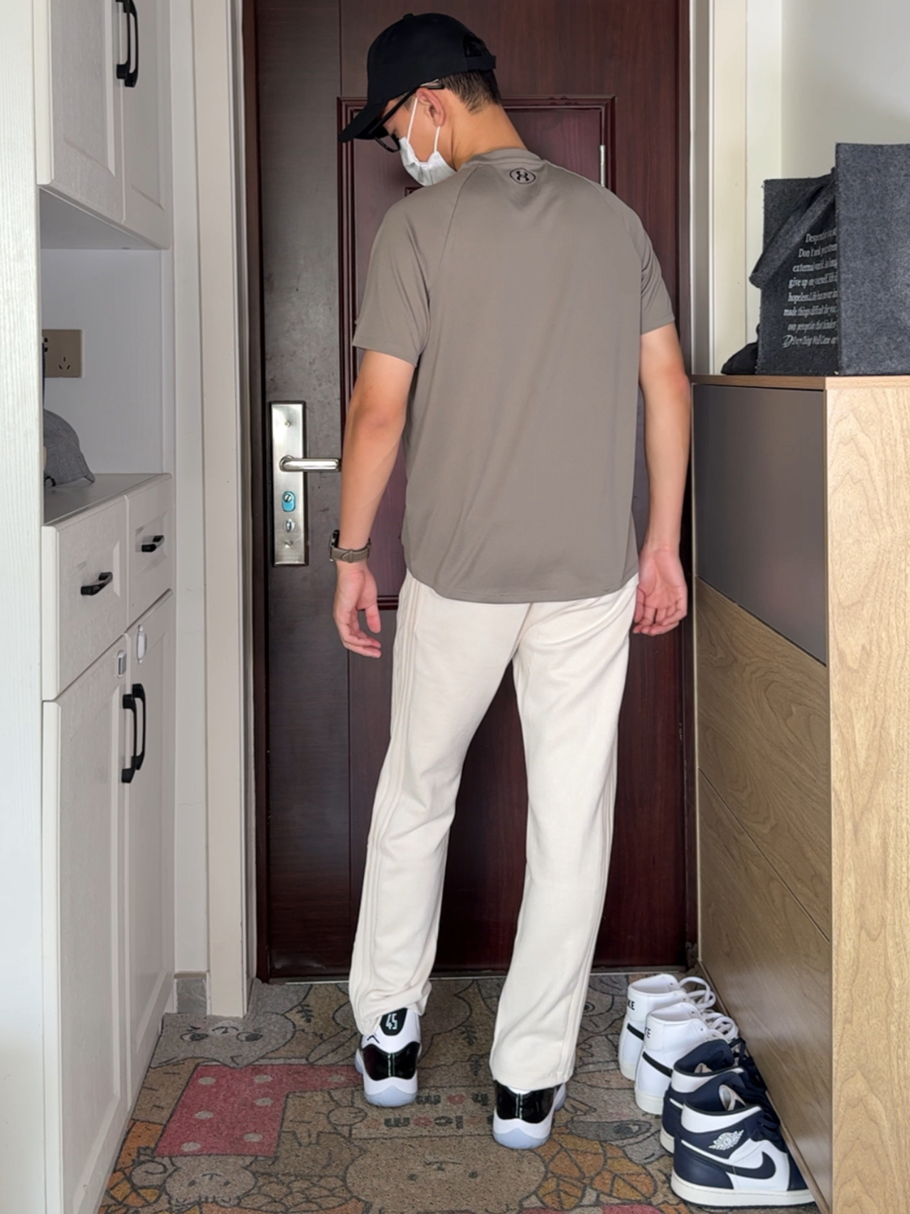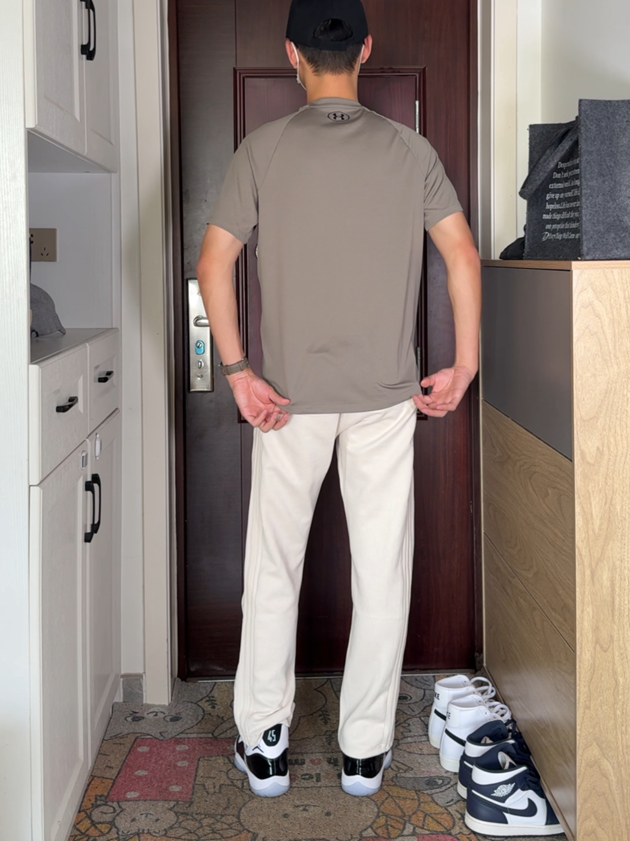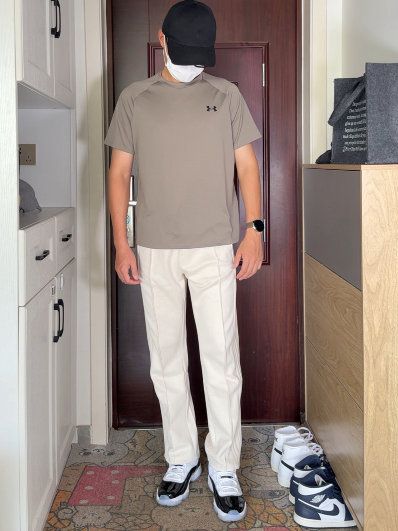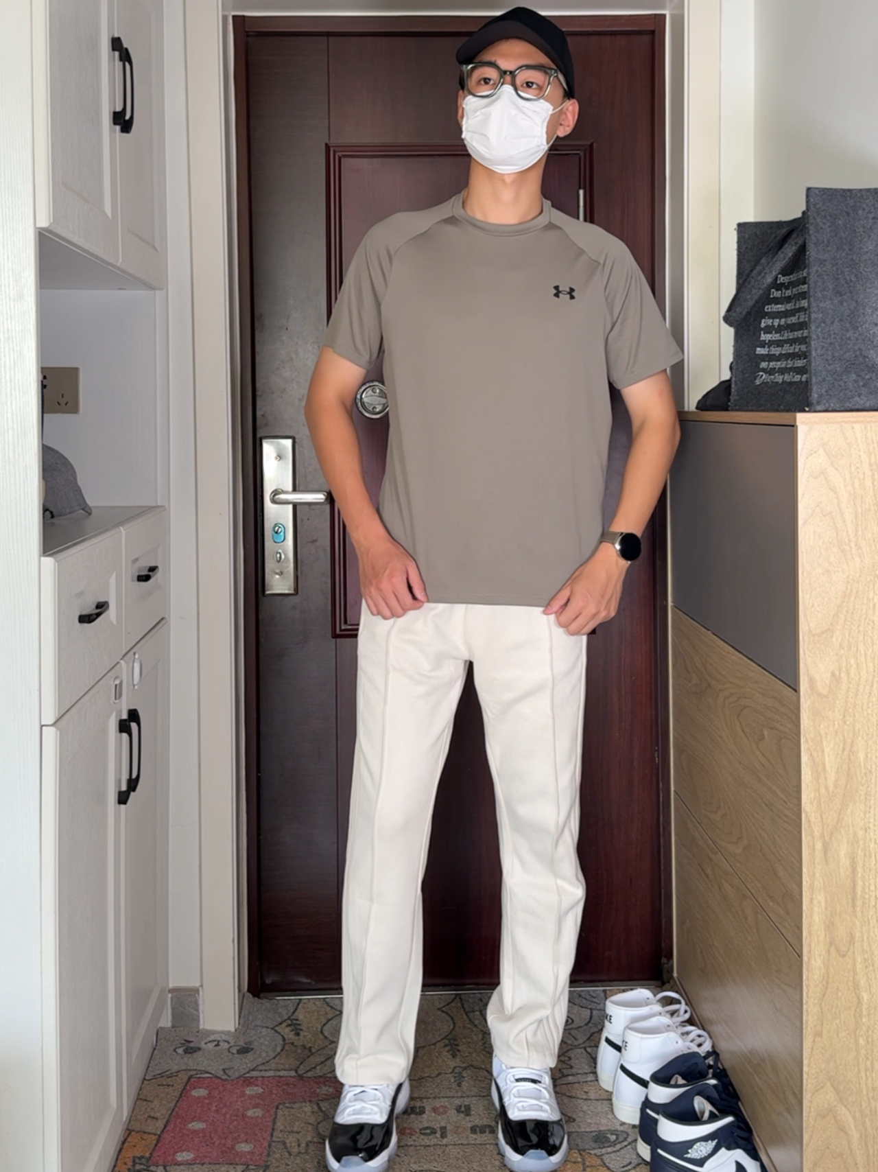 健身房运动和户外骑行都可以穿的一件速干面料短袖 安德玛的材质一如既往的舒适😊 麂皮面裤子搭配aj11的亮漆面质感高级😎 参考身高体重 : 180cm | 68kg