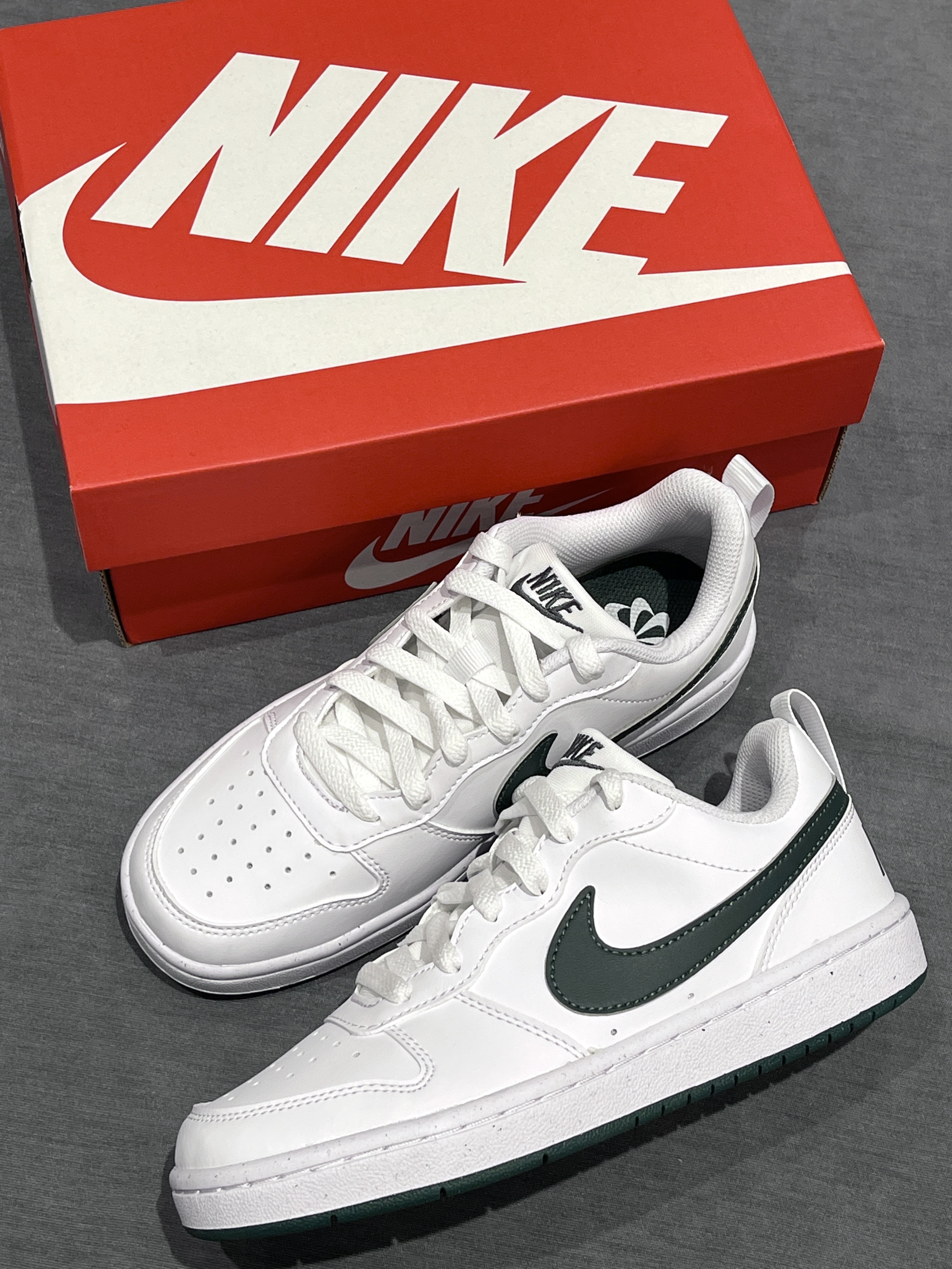 本篇笔记关联了Nike Court Borough 复古 舒适透气 防滑耐磨 轻便 防水耐穿 板鞋 运动休闲鞋 GS/白色/深绿色等商品,为用户提供真实的使用体验和购买参考。