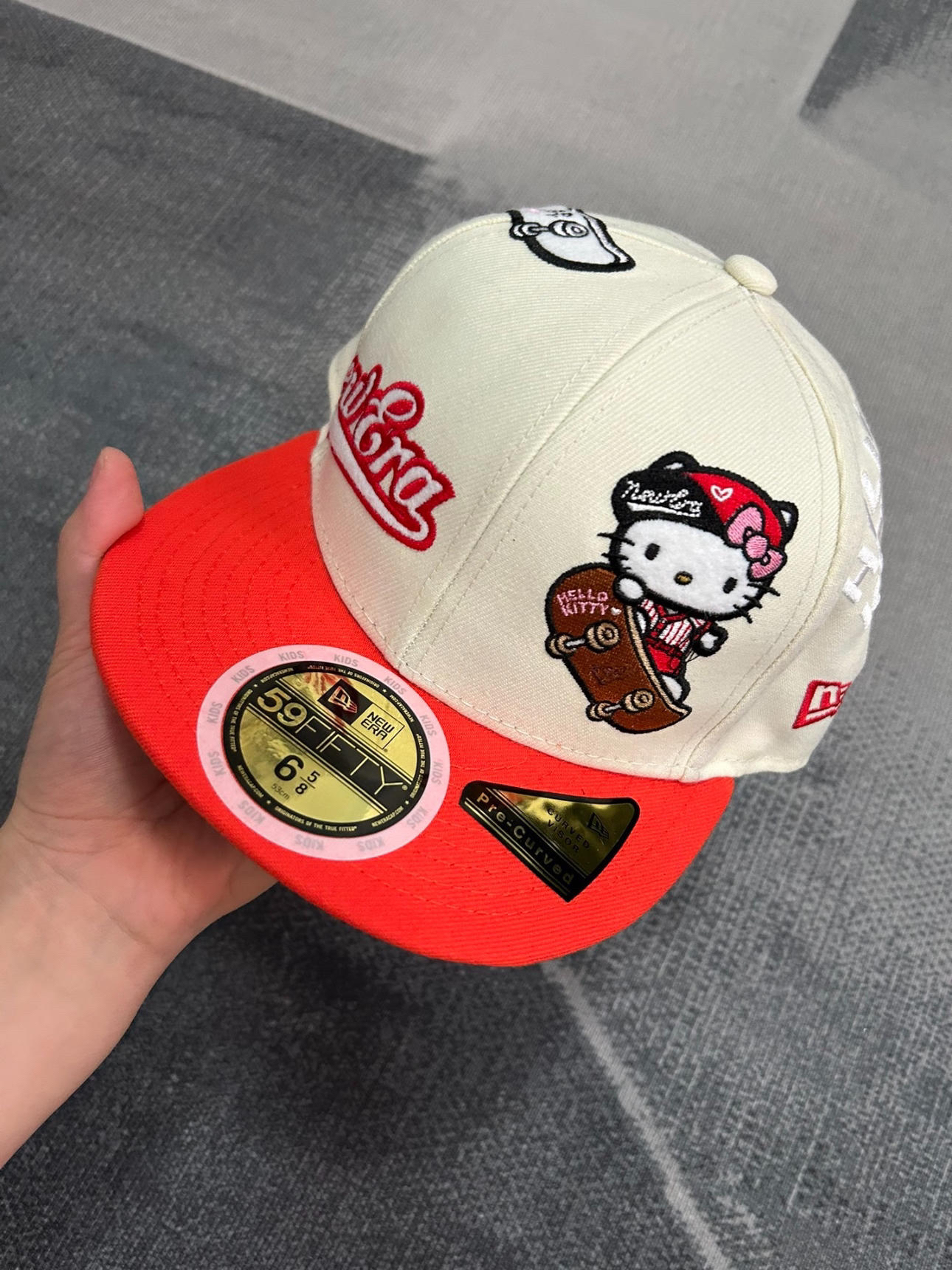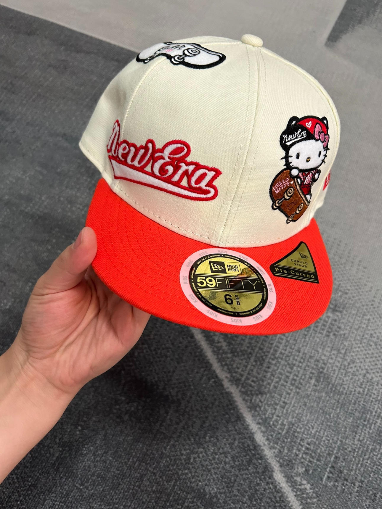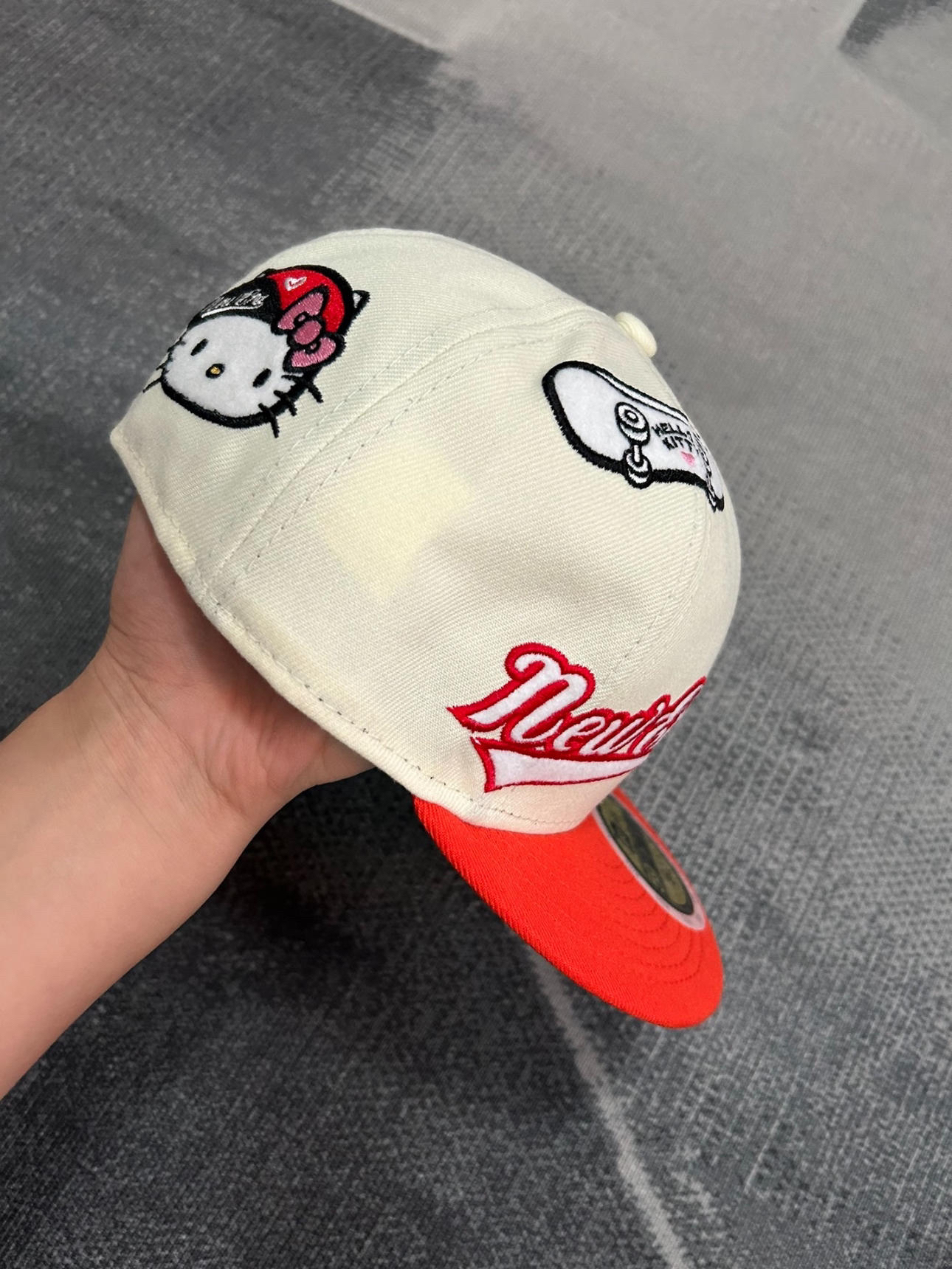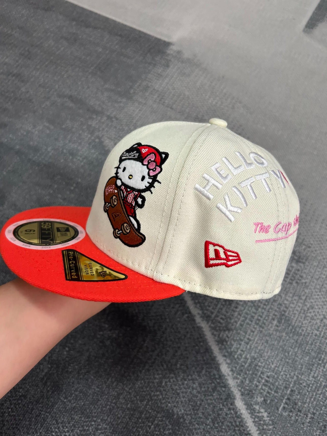我心中一百昏的new era鸭舌帽出现了 后面不可以调节全封闭帽子 帽子反戴贼帅 出去炸街没错~ 有hallokitty的刺绣图案 真的太帅啦! 实物巨好看~送给朋友也是不错的选择滴