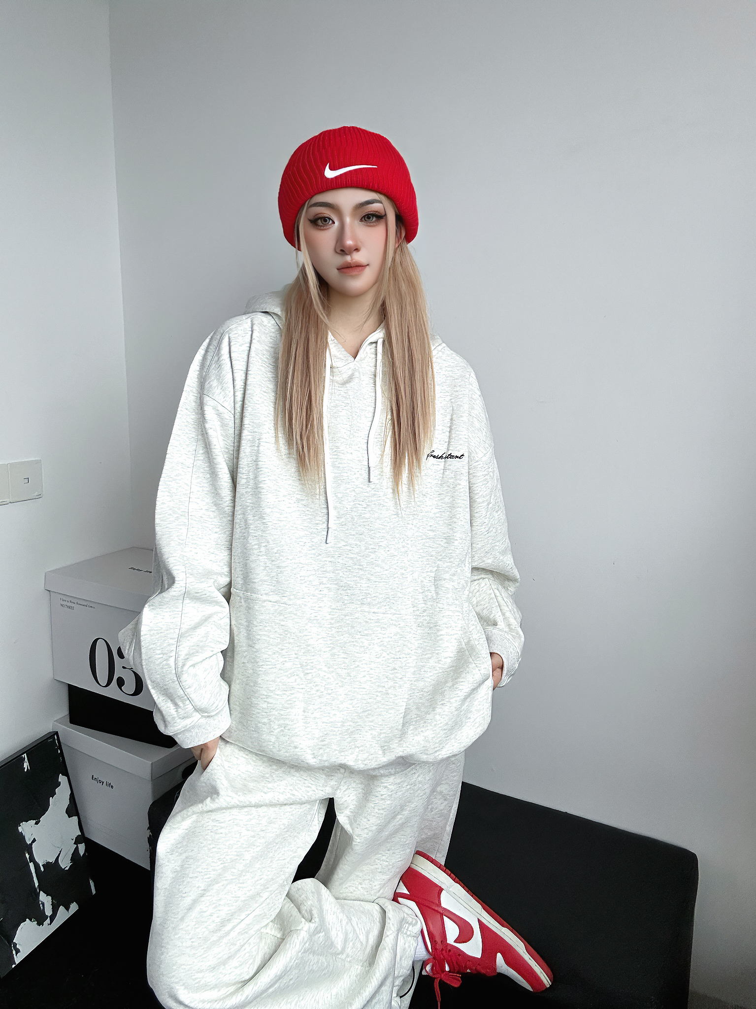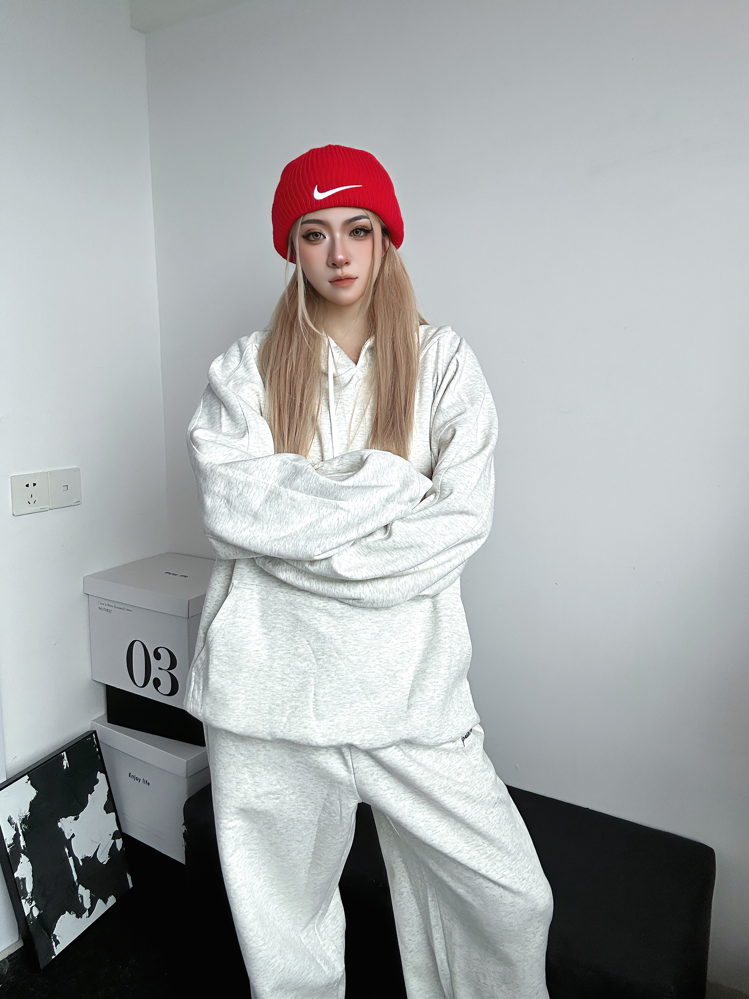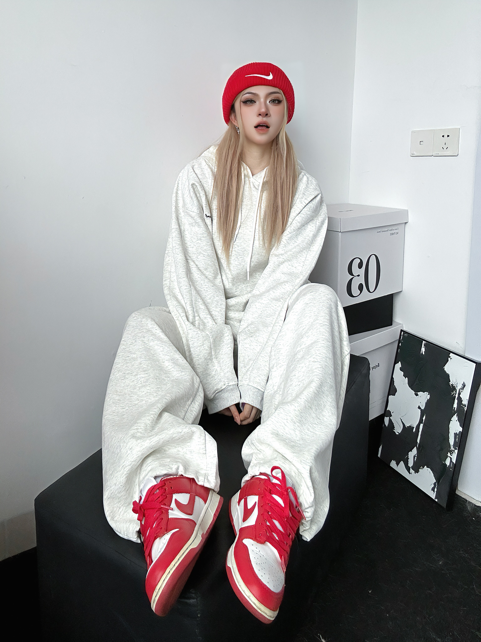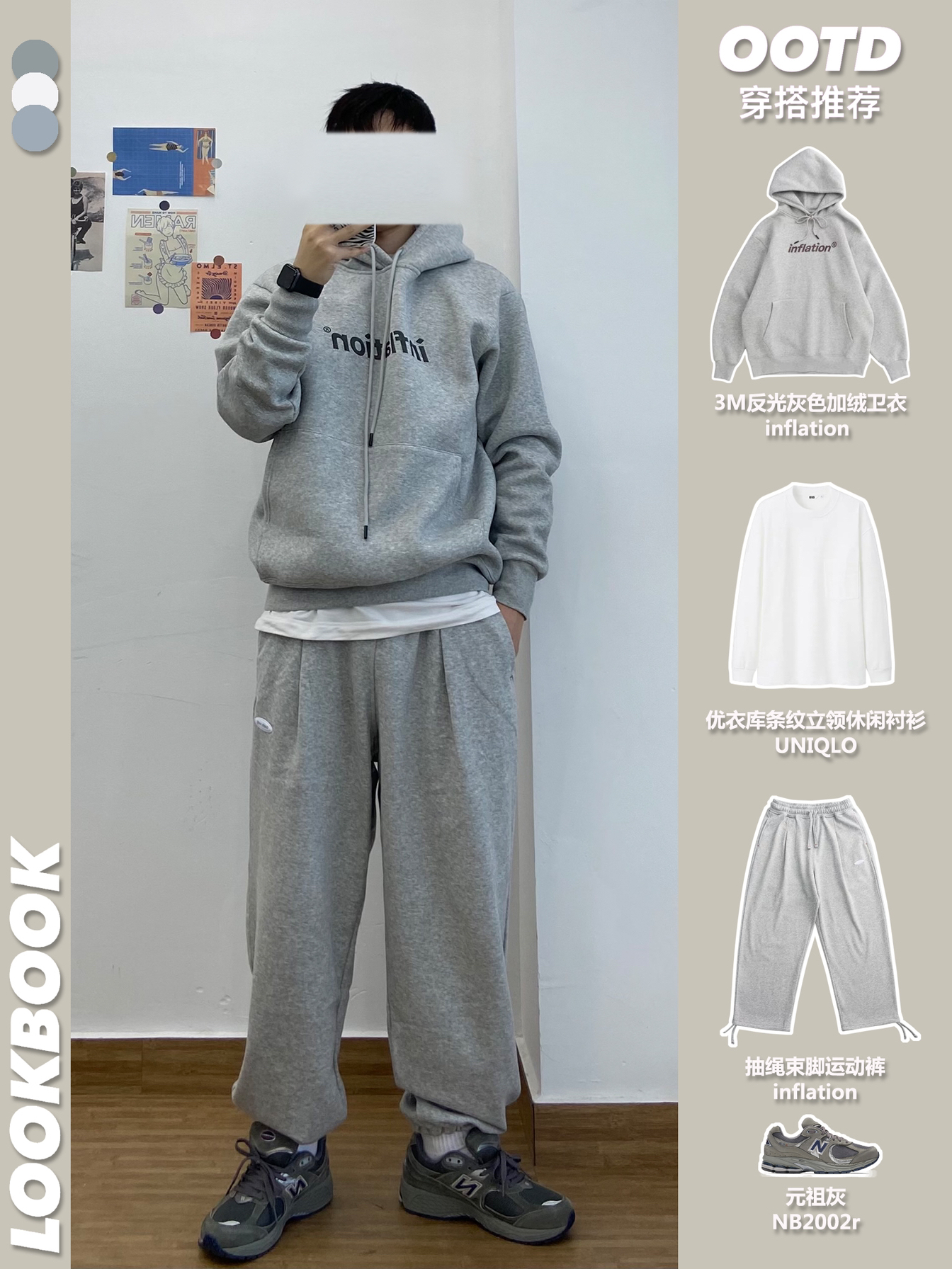 今日穿搭分享 今日一套灰色系的卫衣卫裤都来自neotcg 花灰色很高级的一个颜色 设计也非常简约 没有多余或者大面积的涂鸦✍️ 简简单单就很帅 搭配红白dunk 呼应同时也带上一顶红色的针织帽 不得不说很帅的一套哦