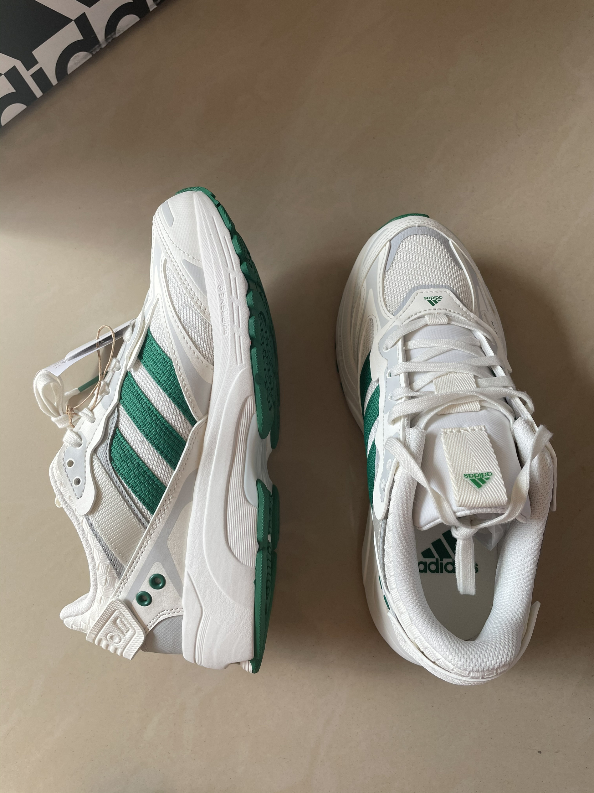 鞋面采用皮革织物网面拼接,鞋子以淡灰为主深灰点缀低调百搭高级感十足! 属于非常百搭一个款,日常或通勤都可以哦!!! 而且复古鞋层次感丰富,搭配柔软中底,上脚轻盈舒适。 实物颜色超正,超级有质感!好喜欢!