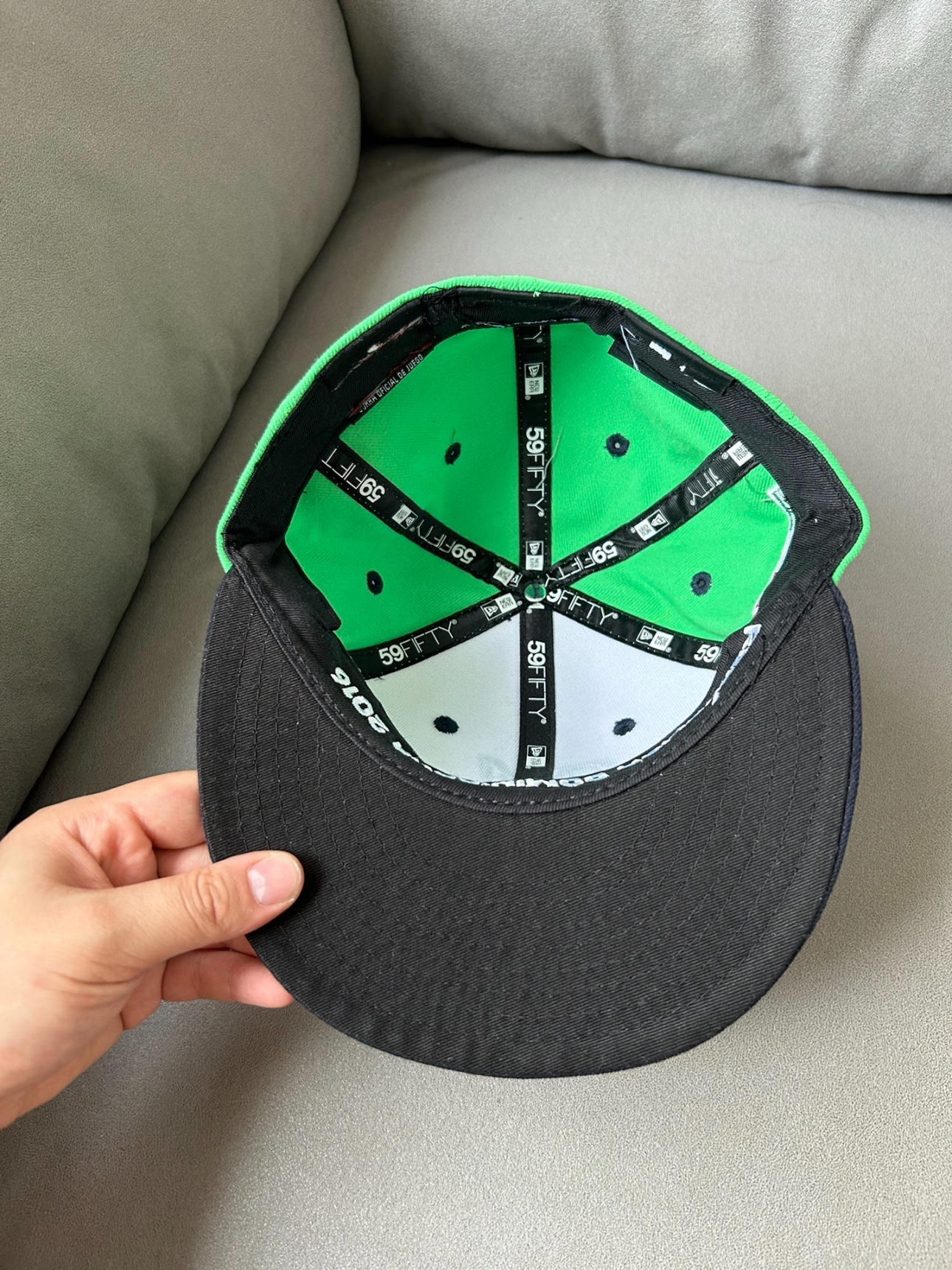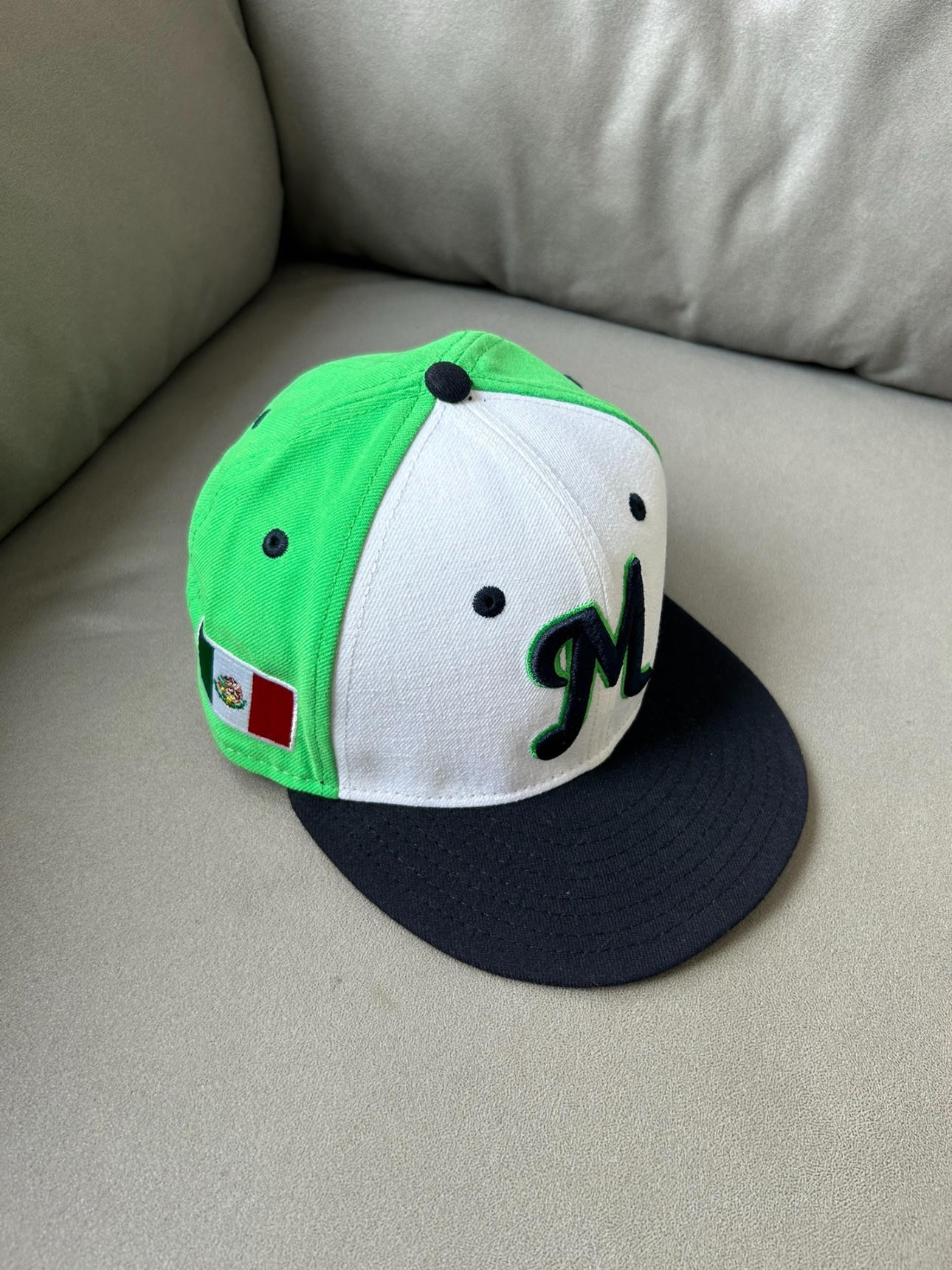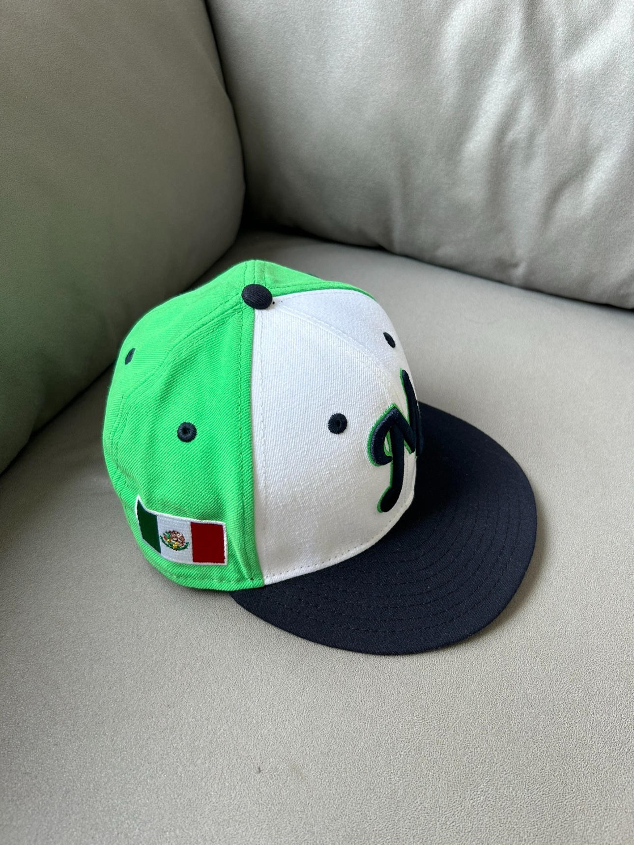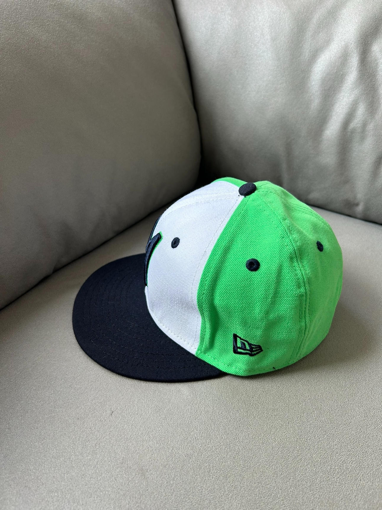 是全封款new era平沿帽棒球帽 后面不可以调节 秋天反戴yyds 而且绿白黑这个颜色搭配真的帅! 还有大大的刺绣 质感非常舒适啀!!! 潮流还显白 无论休闲还是工作都非常适合穿搭