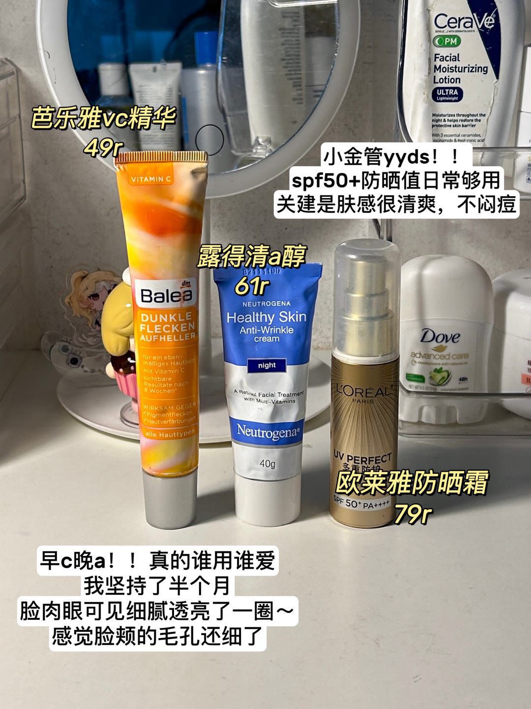本篇笔记关联了三月理 红茶控油抗痘水乳套装 舒缓 爽肤水120ml+柔肤露100ml、L'OREAL/欧莱雅 小金管防晒露 多重防护高倍清爽 【经典版】养肤SPF50+、Neutrogena/露得清 维A醇晚霜 细腻养肤紧致抗皱淡化面部细纹 【1.0】小蓝管等商品,为用户提供真实的使用体验和购买参考。