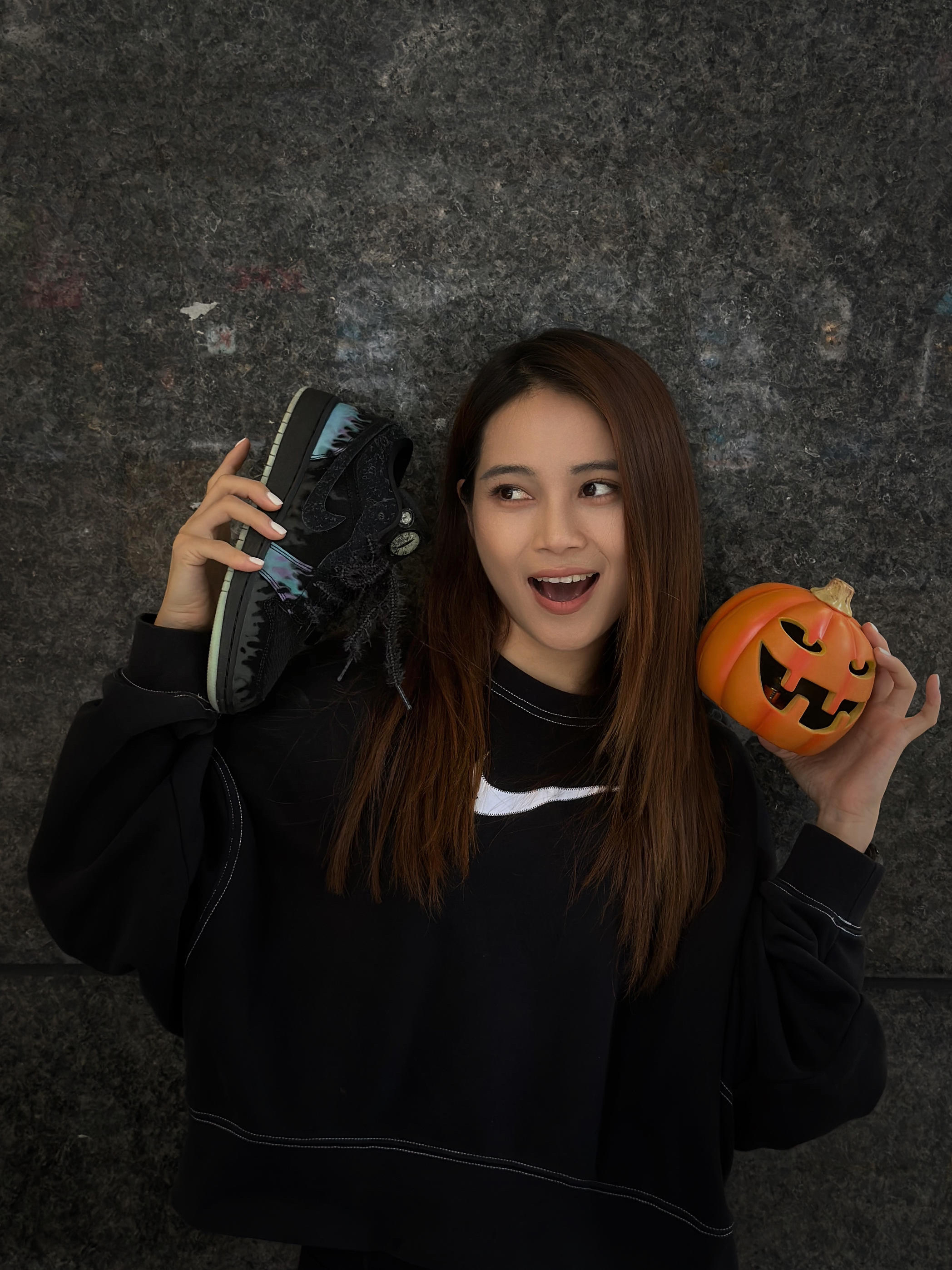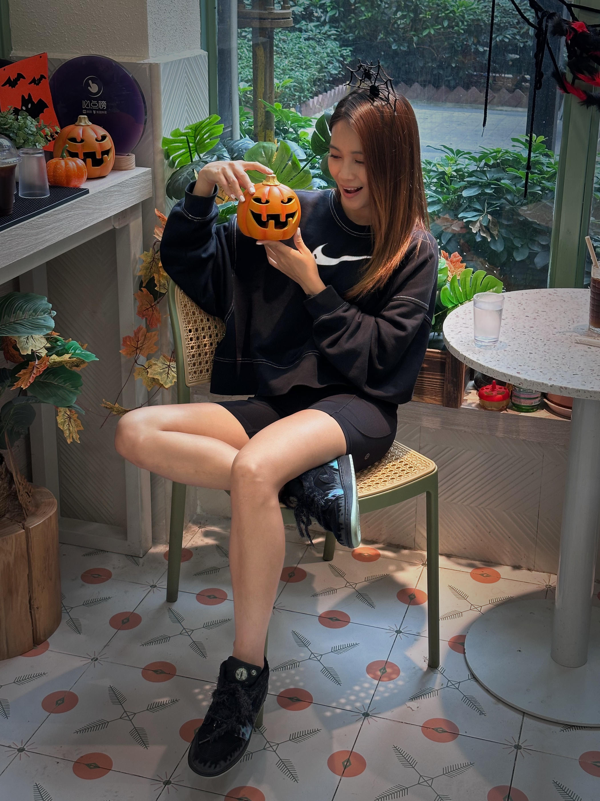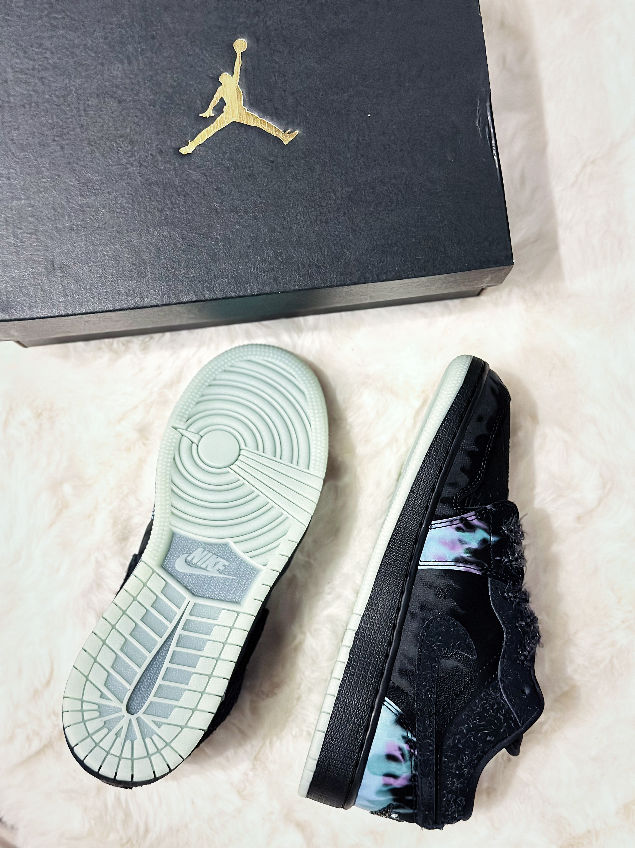 💀 魔幻夜光来袭 🕷 招财飞蛛这双 AJ 1 真的太绝了! 黑色猫眼鞋舌搭配夜光鞋底,走在夜晚的街头分分钟吸引目光。👁鞋身的招财蜘蛛细节不仅酷炫,还带来满满的节日气息!潮流与惊悚感并存!🎃👻 #AJ头号玩家 #今日份AJ女生 #万圣节穿搭