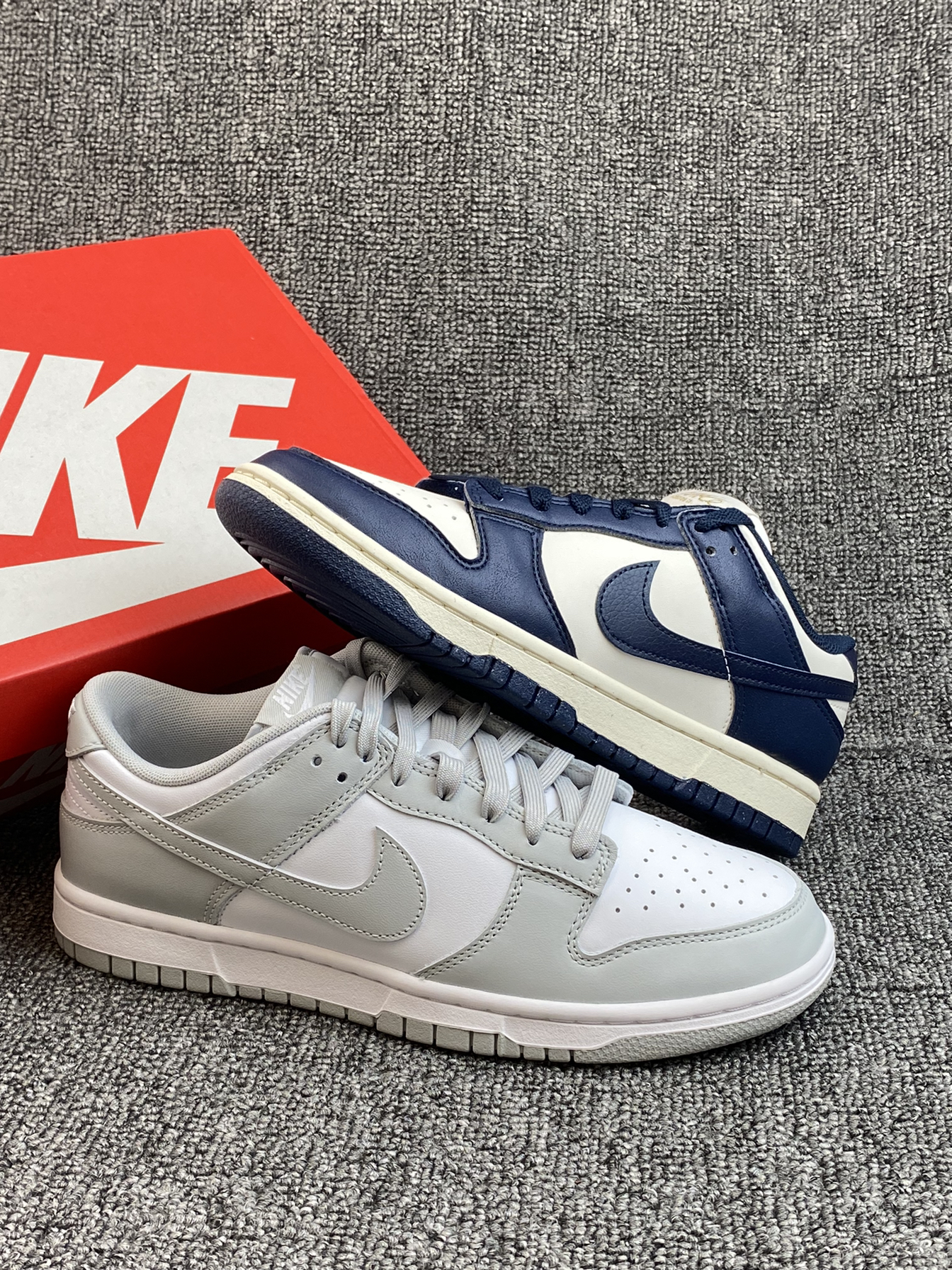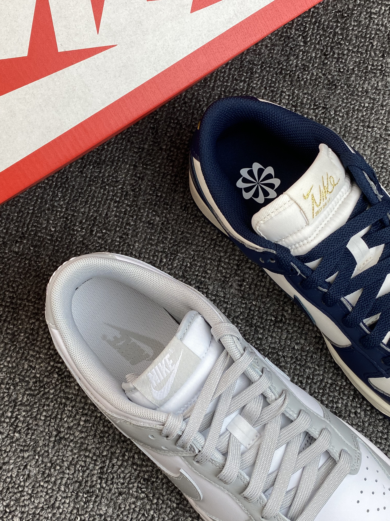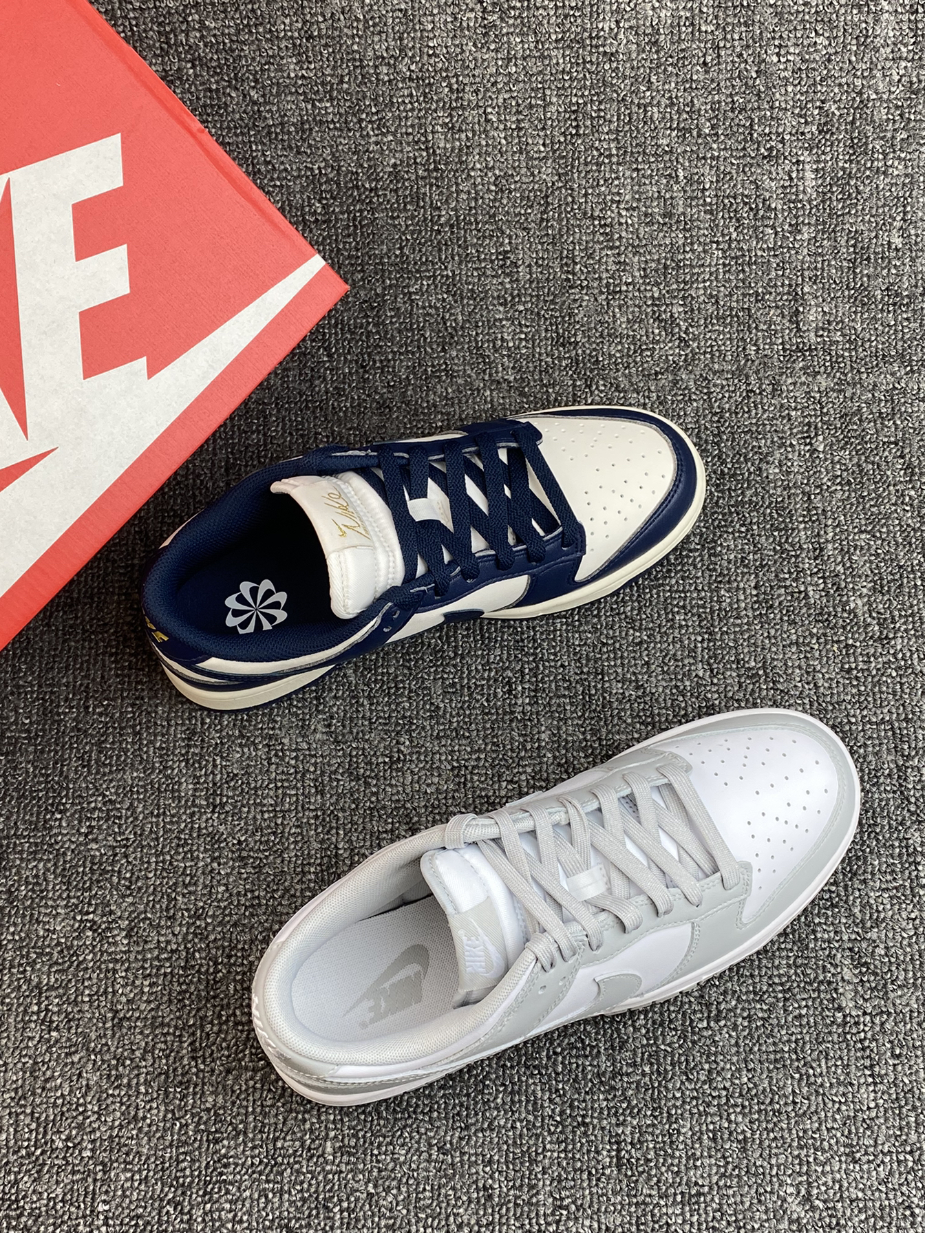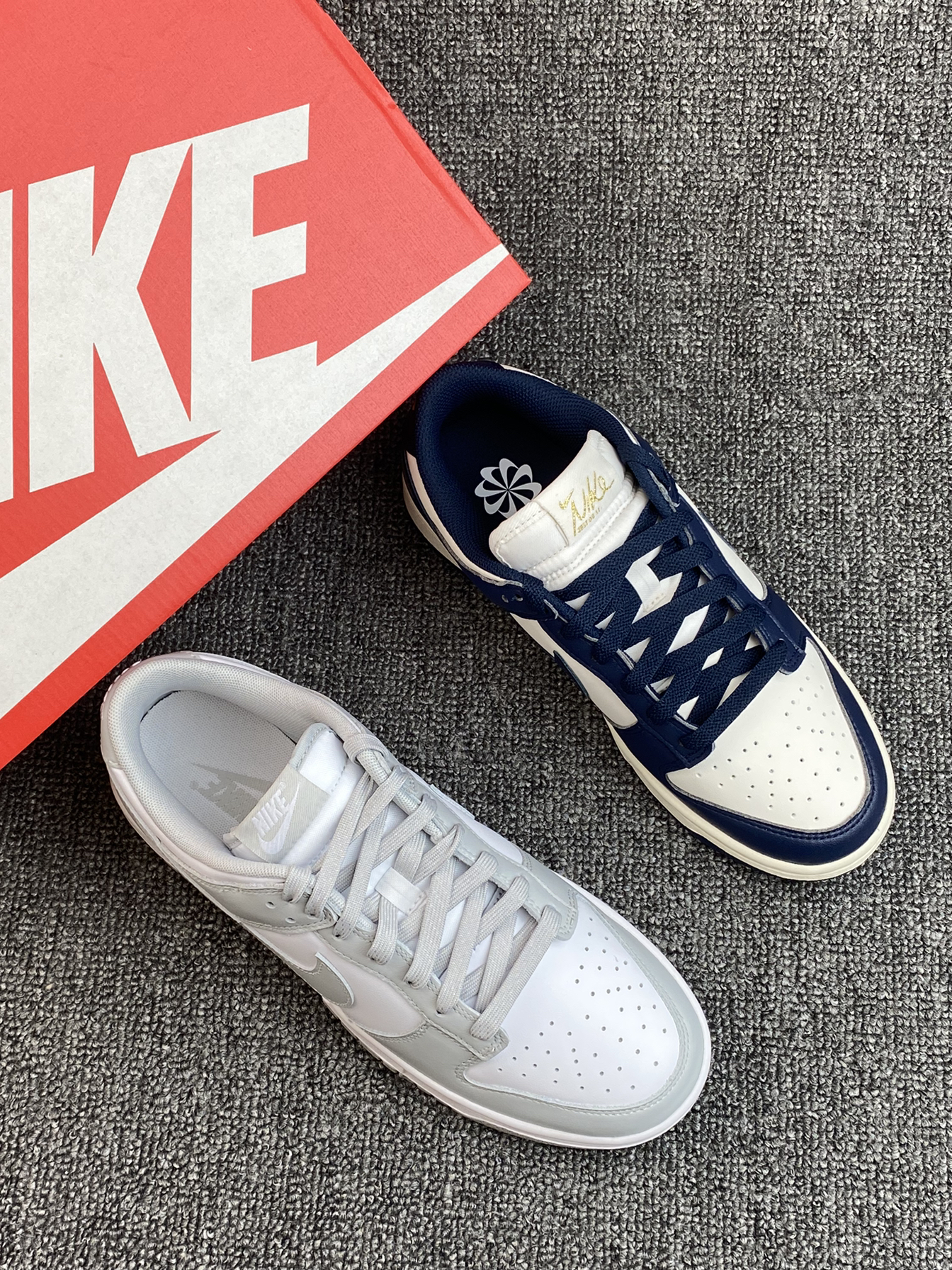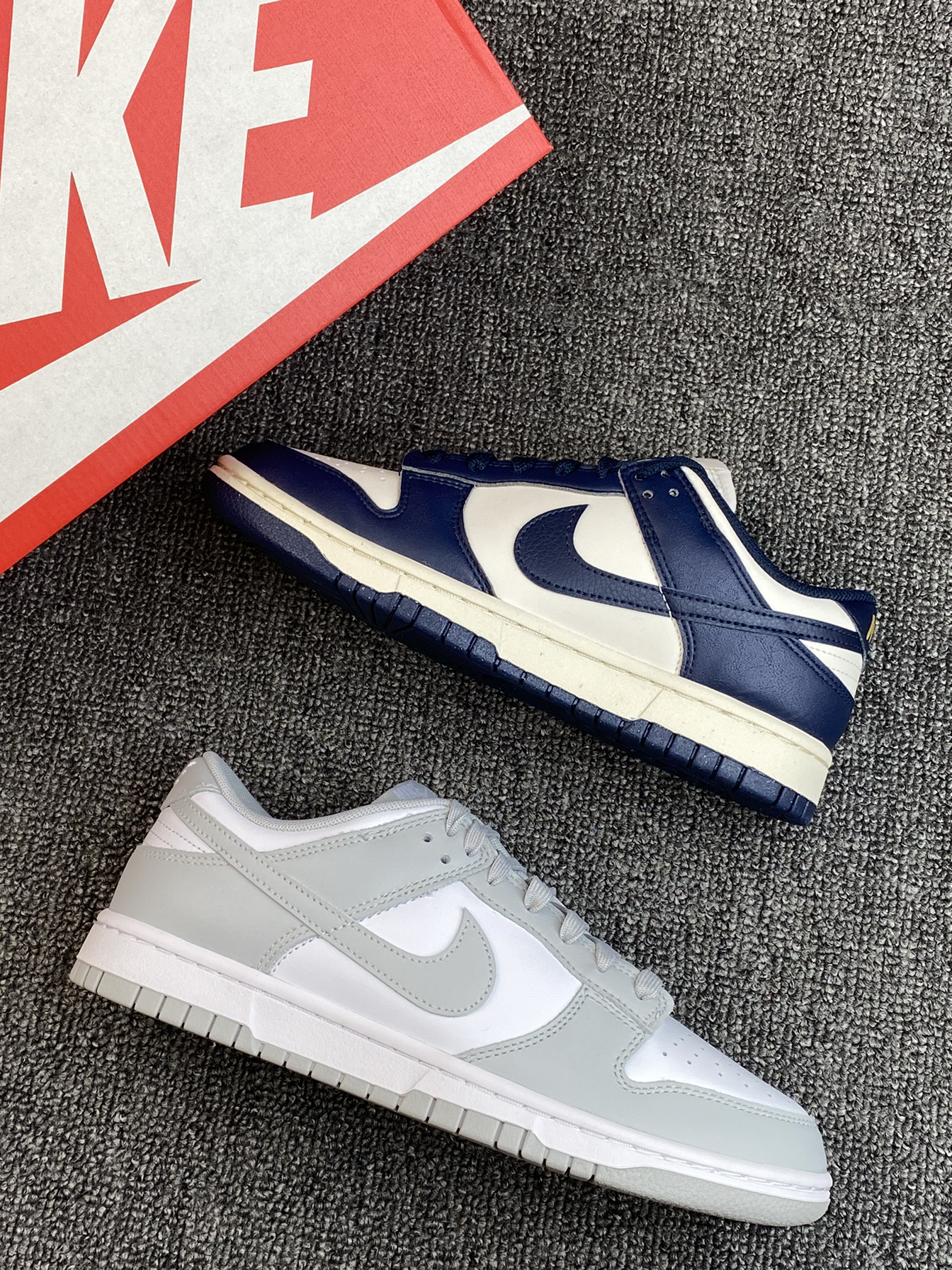 ✨现在的Dunk真的很香,之前有入手熊猫配色,别说真的很百搭。这次这两双又让我陷入纠结了。 🌸两双都比较低调的,灰白的颜色更素些,海军蓝的会更有少年感,另外鞋舌处有烫金的刺绣,蛮吸晴的👍两双都是皮面的,打理也方便。 💫百搭不挑人的两双,如果是你,你选哪双?