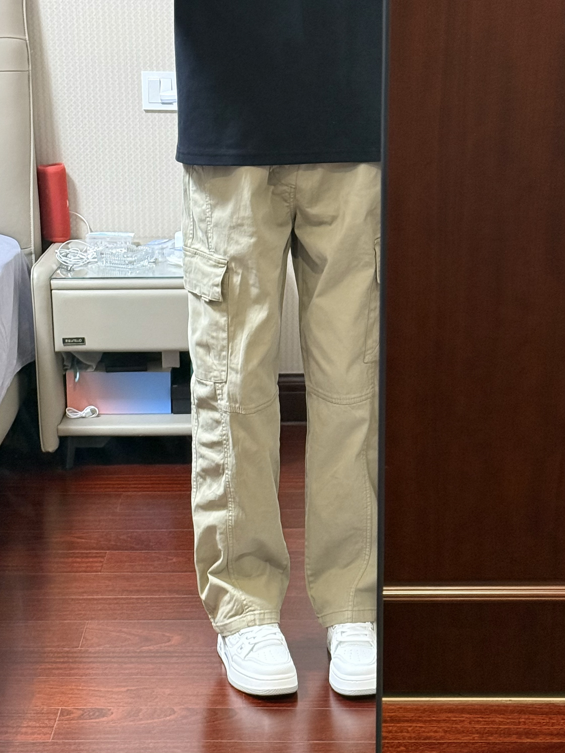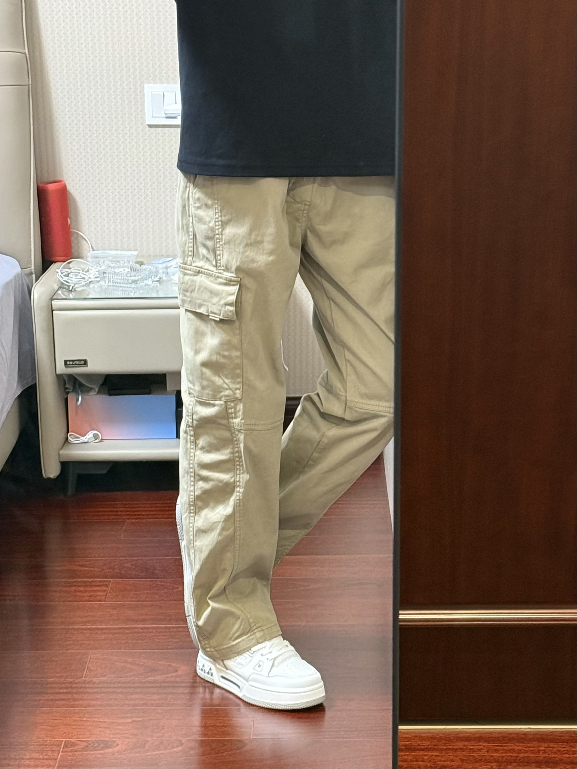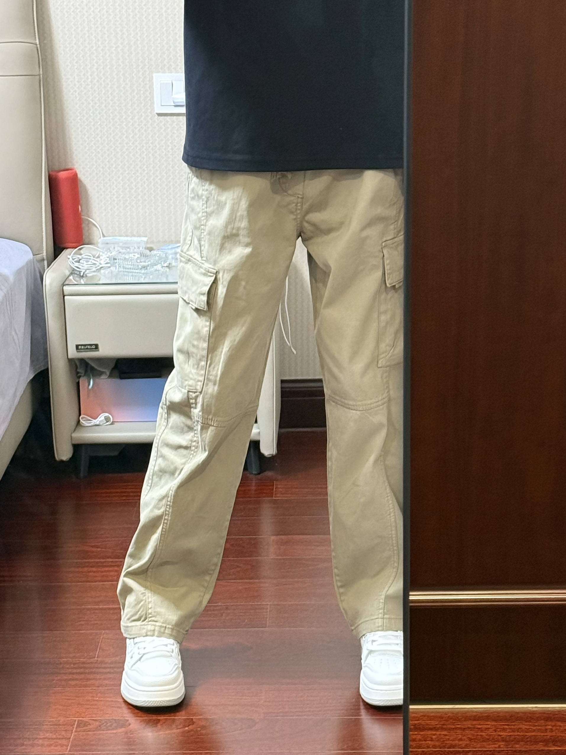 啊啊啊这条卡其色直筒工装裤真的太帅了,多口袋设计感满满,这个颜色也很百搭随便搭配一身就很帅了,面料上身舒适,宽松直筒版型上身显高显腿长,男女同款,谁穿谁帅,简直就是我的梦中情裤啊!