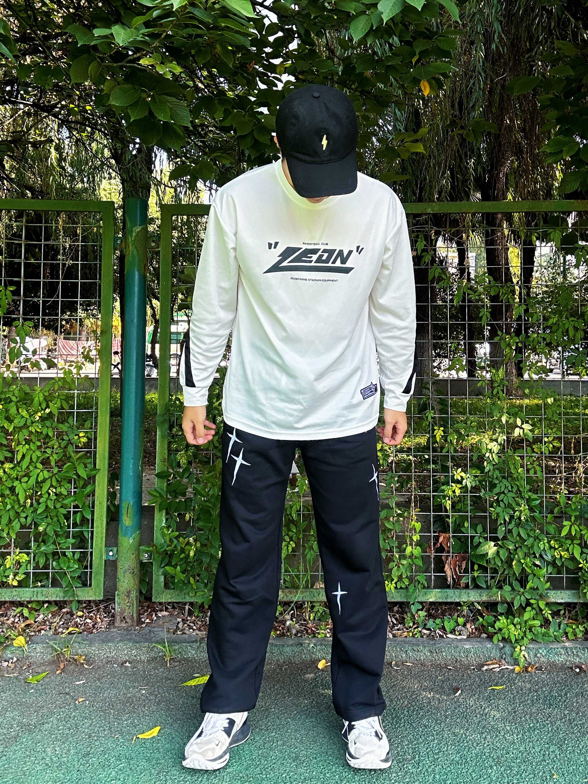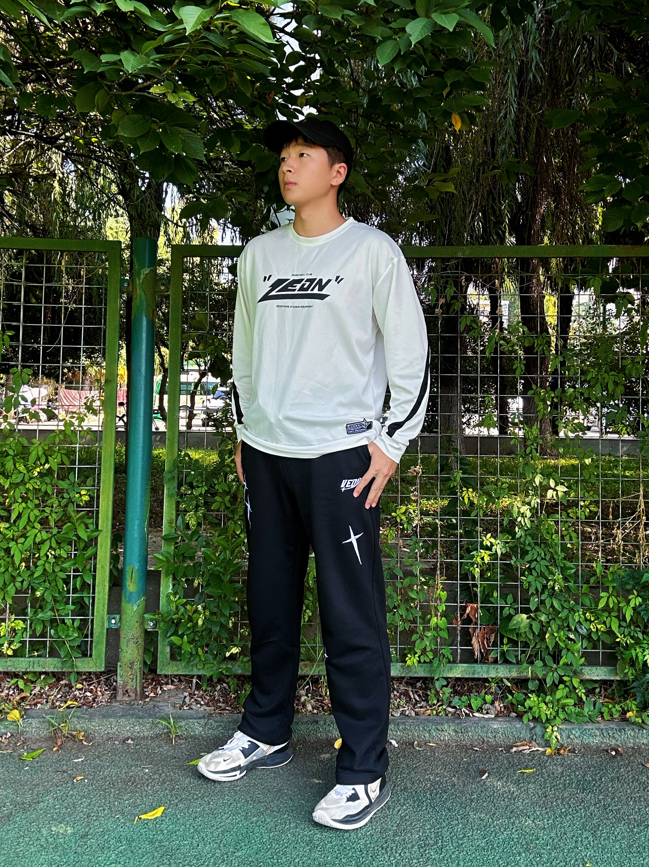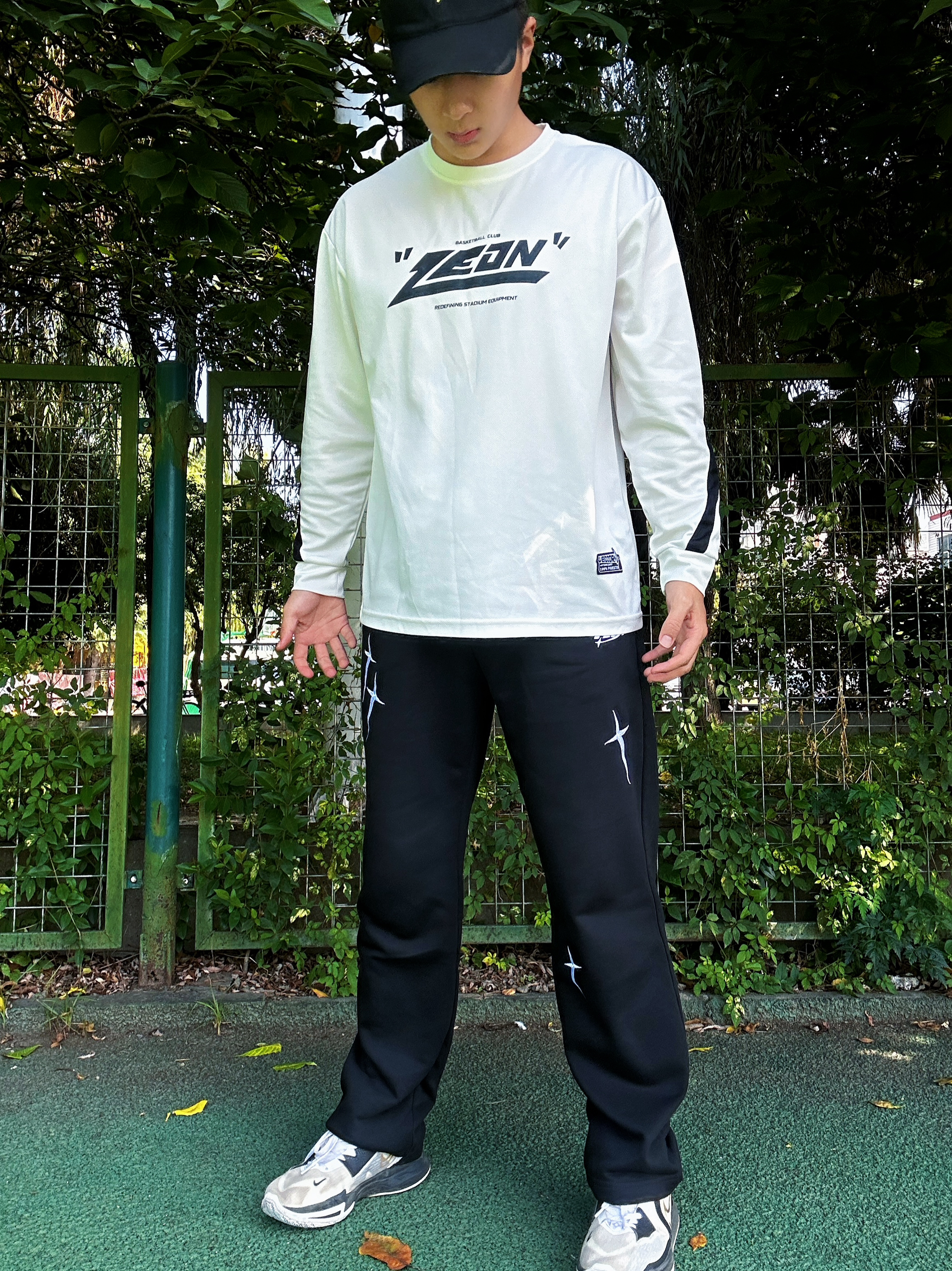 之前看别人穿这条裤子好看就很喜欢 👕上身白色长袖投篮服 👖下面穿 维动 VEIDOORN耀影直筒长裤 裤子上的星星是真的帅啊 黑色阔腿裤穿上更显腿长了 82%的含棉量穿上也不会冷 秋天运动休闲穿都很合适 我174cm72kg穿L码可以 Nike 欧文low5