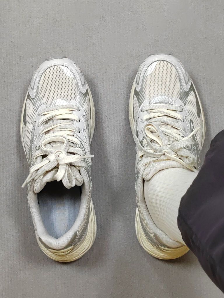最近入手了一双银灰色的慢跑鞋 看着复古风满满 真的好喜欢 鞋面是网布➕皮革拼接而成的 再加上双鞋带的一个配置 高级感简直不要拉得太满 透气性也蛮不错的 久穿没感觉到闷脚 上脚脚感挺舒适的 Eva材质的中底尊嘟给力 还有耐磨防滑的橡胶大底加持 无论是日常休闲慢跑亦或是通勤穿着 感觉都是挺百搭的 尺码方面偏大 我平时穿的是44码 这双要选42