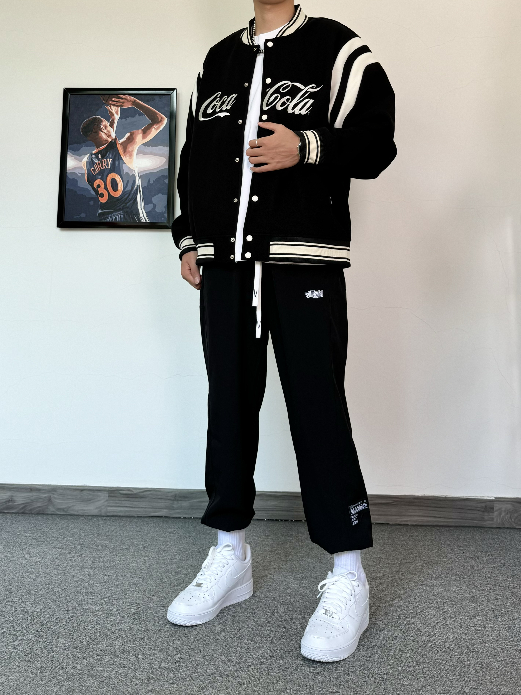 秋冬真的是适合叠穿的季节 棒球服➕T恤 帅气十足 运动味儿满满都束脚裤 更是多了几分街头酷感 脚上的空军则会成为穿搭的加分项 低帮板鞋几乎可以适配所有裤子!
