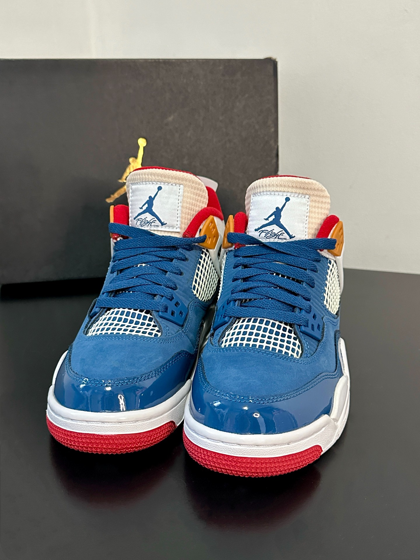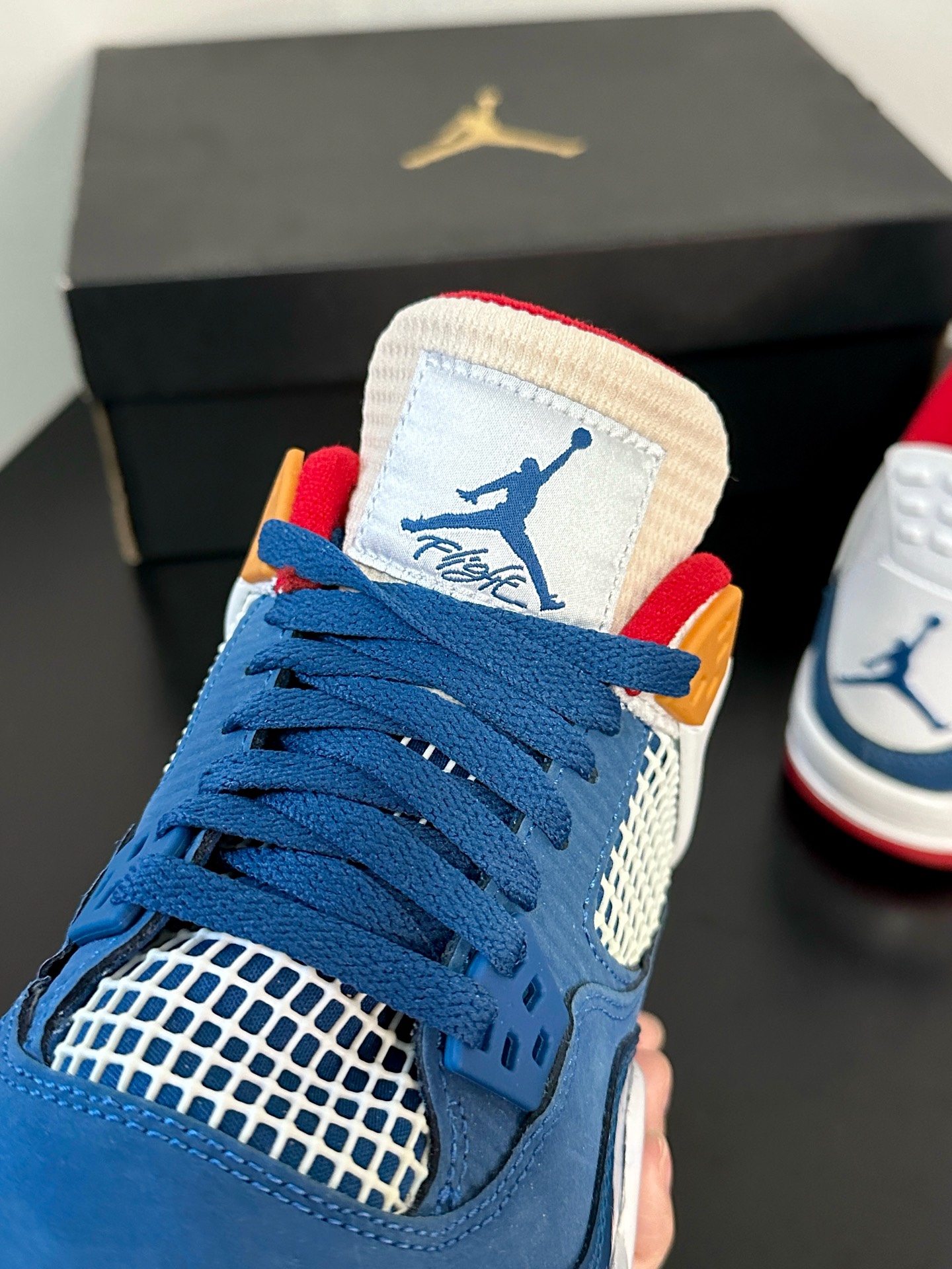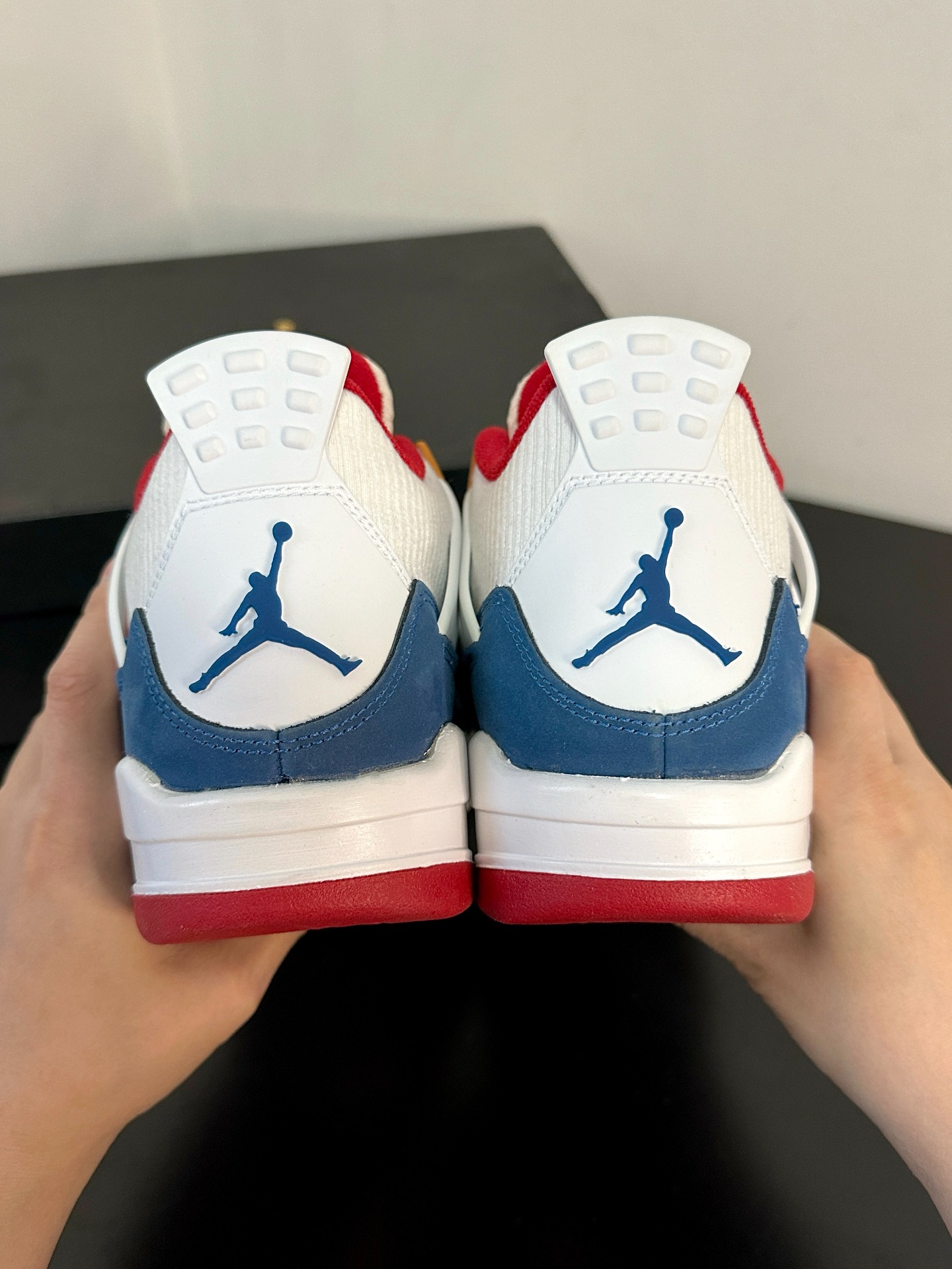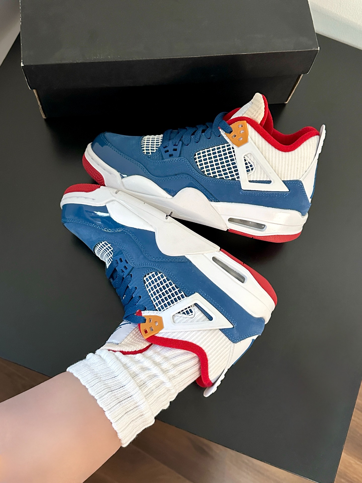 最近很喜欢的鞋就是这双AJ4了,量很小,颜值不错价格也低👌蓝红白搭配很清爽,经典复古配色 💙❤️🤍 漆皮材质拼接自带光泽✨✨✨小飞人logo还挺多,不想撞鞋的姐妹们看过来噢~ #最近很喜欢的鞋 #晒晒你的宝藏aj4 #超百搭复古板鞋 #分享宝藏神仙板鞋 #这双鞋我穿了很久