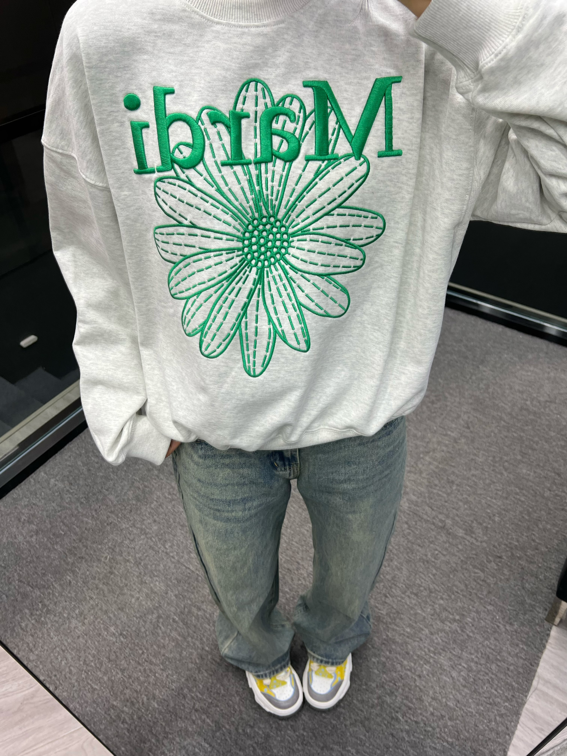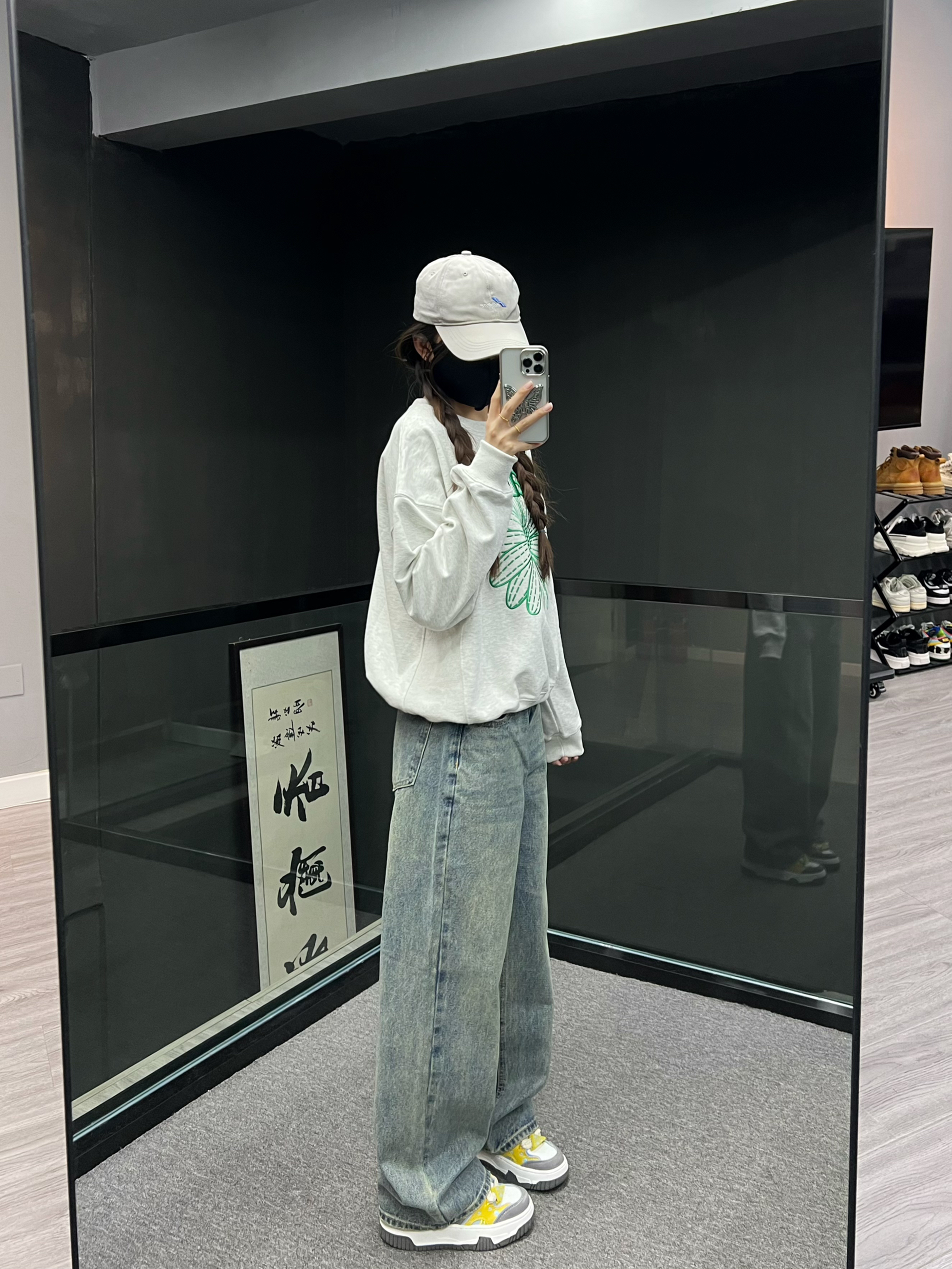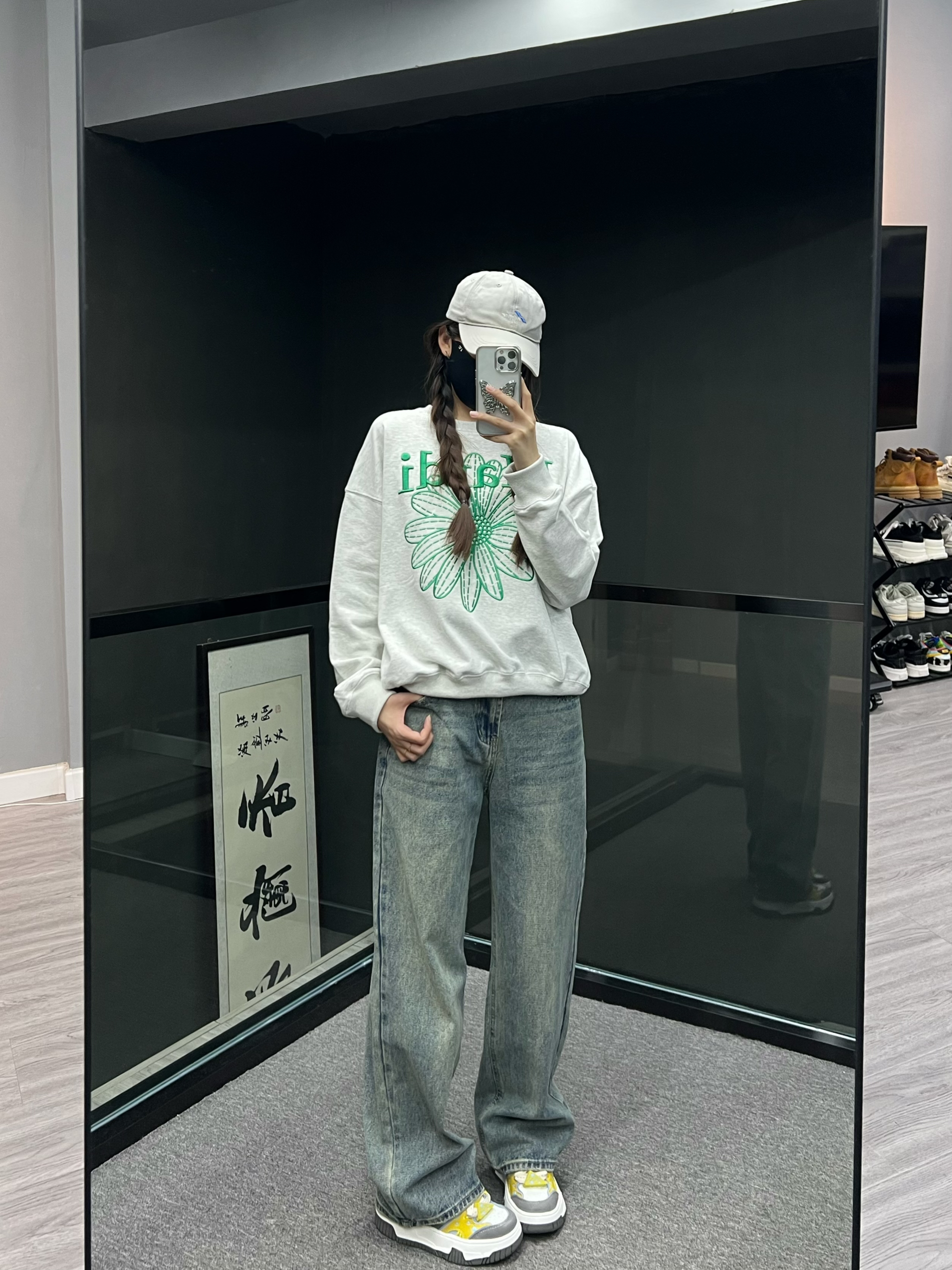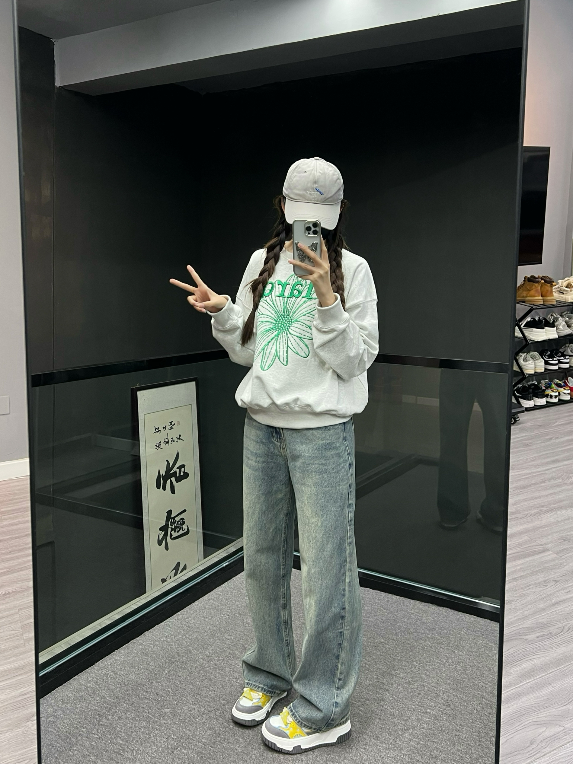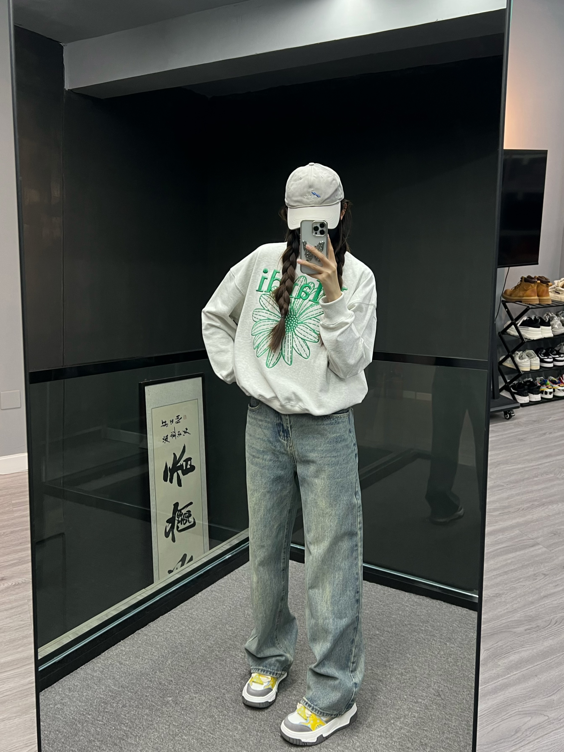 今天一整套松弛感穿搭 休闲又舒适~ 韩系卫衣 主打一个chill🧉 花朵图案穿上好有治愈力! 下装搭配蓝色牛仔裤 韩系街头感拿捏🎧
