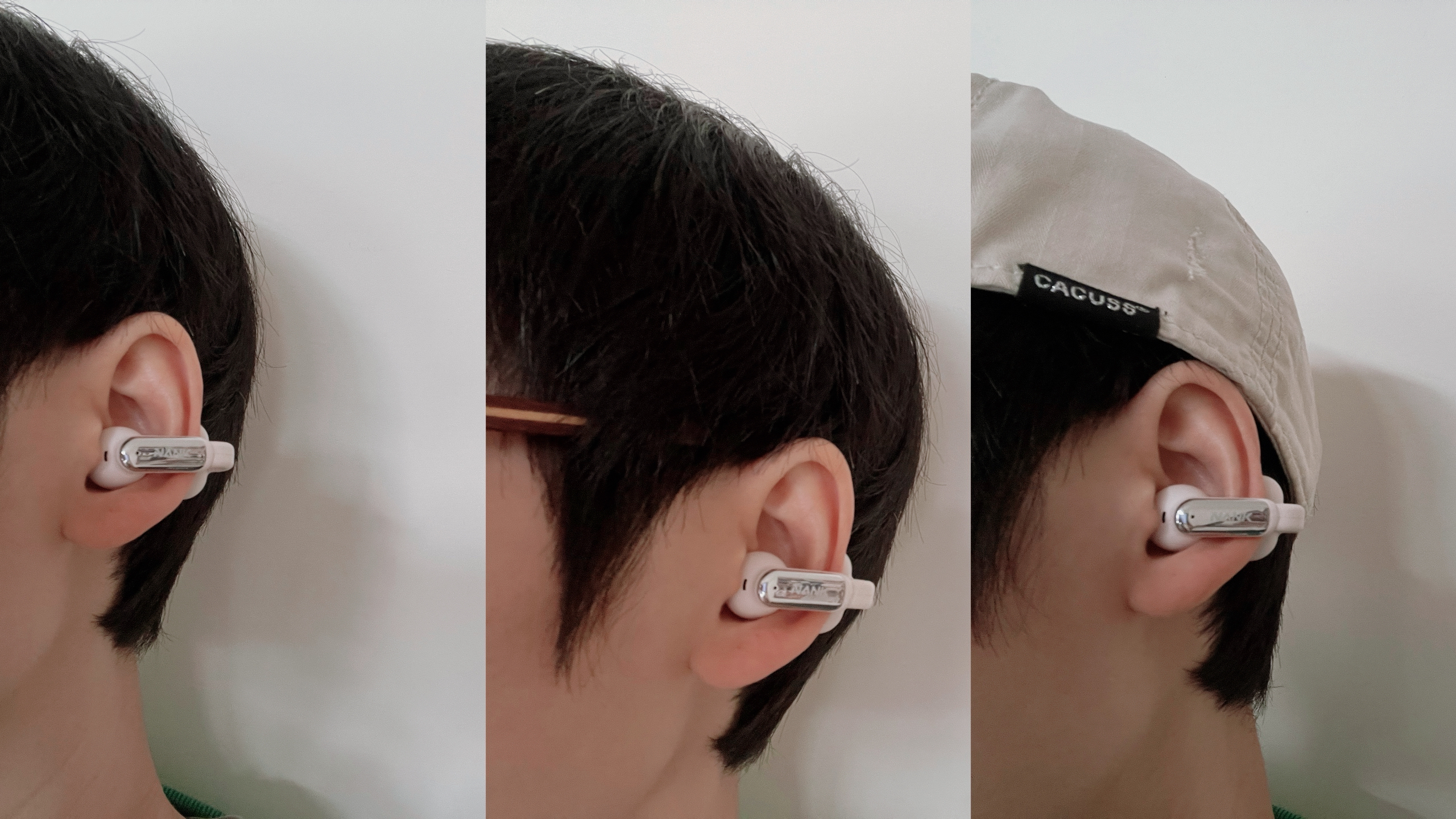 还有一点,在佩戴的时候,南卡Clip Pro并非真的是“夹”在耳朵上,更确切的说,它应该是贴在耳朵上,不入耳也不挂耳更不夹耳,靠着航空级弹性记忆钛合金材料,可以通过凹折找到自己适合的形状,稳稳贴合在耳朵上,当作一个耳饰来使用也很不错。