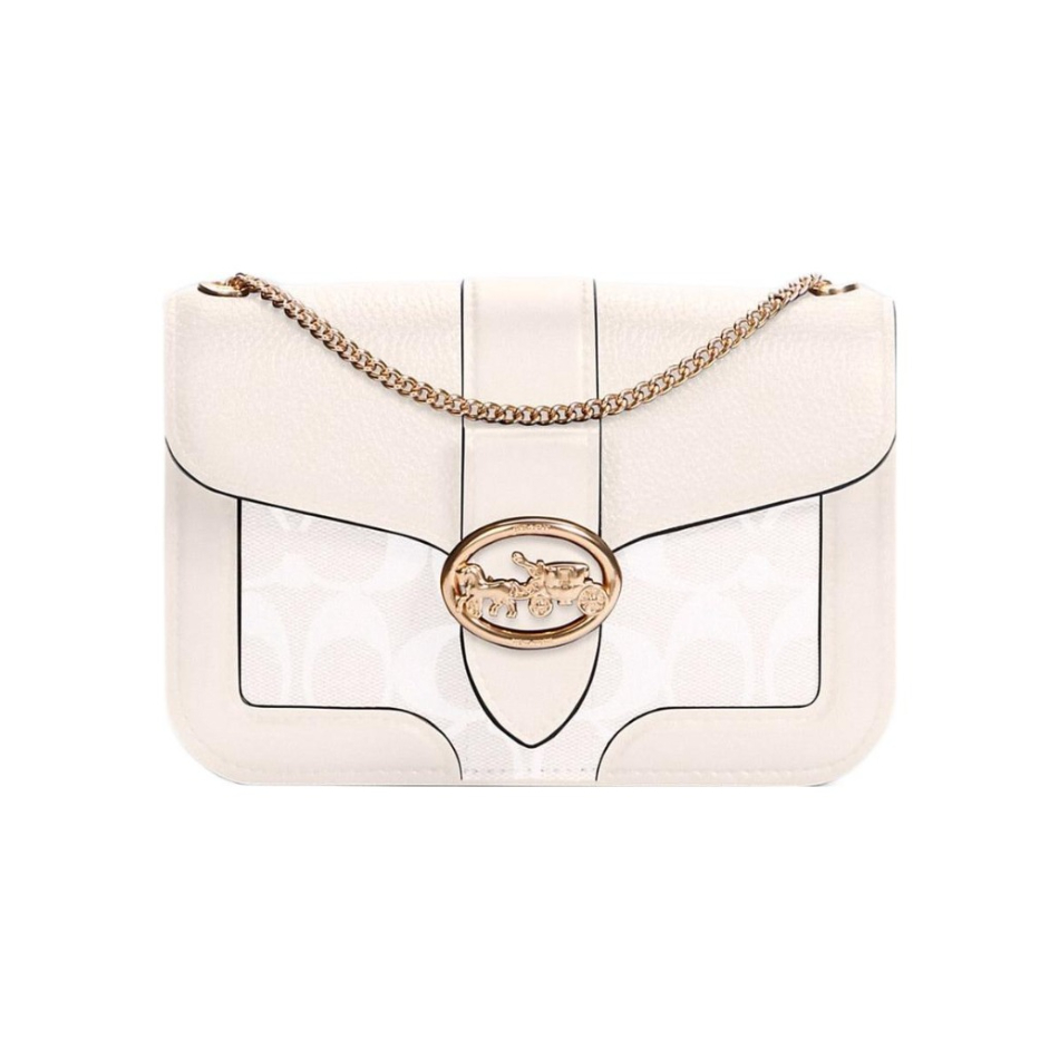 本篇笔记关联了Coach Georgie 20 小号 老花马车扣帆布配皮涂层拼色链条小方包单肩斜挎包 米白色等商品,为用户提供真实的使用体验和购买参考。