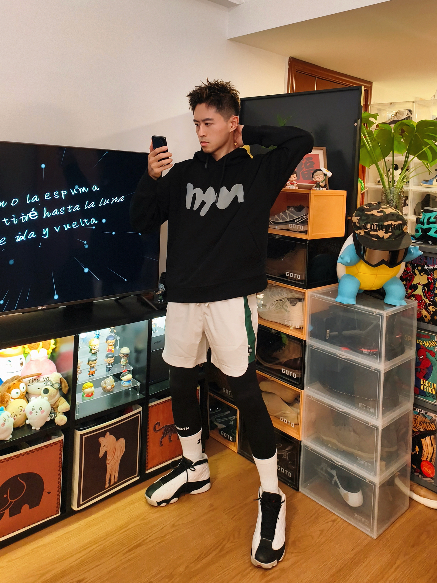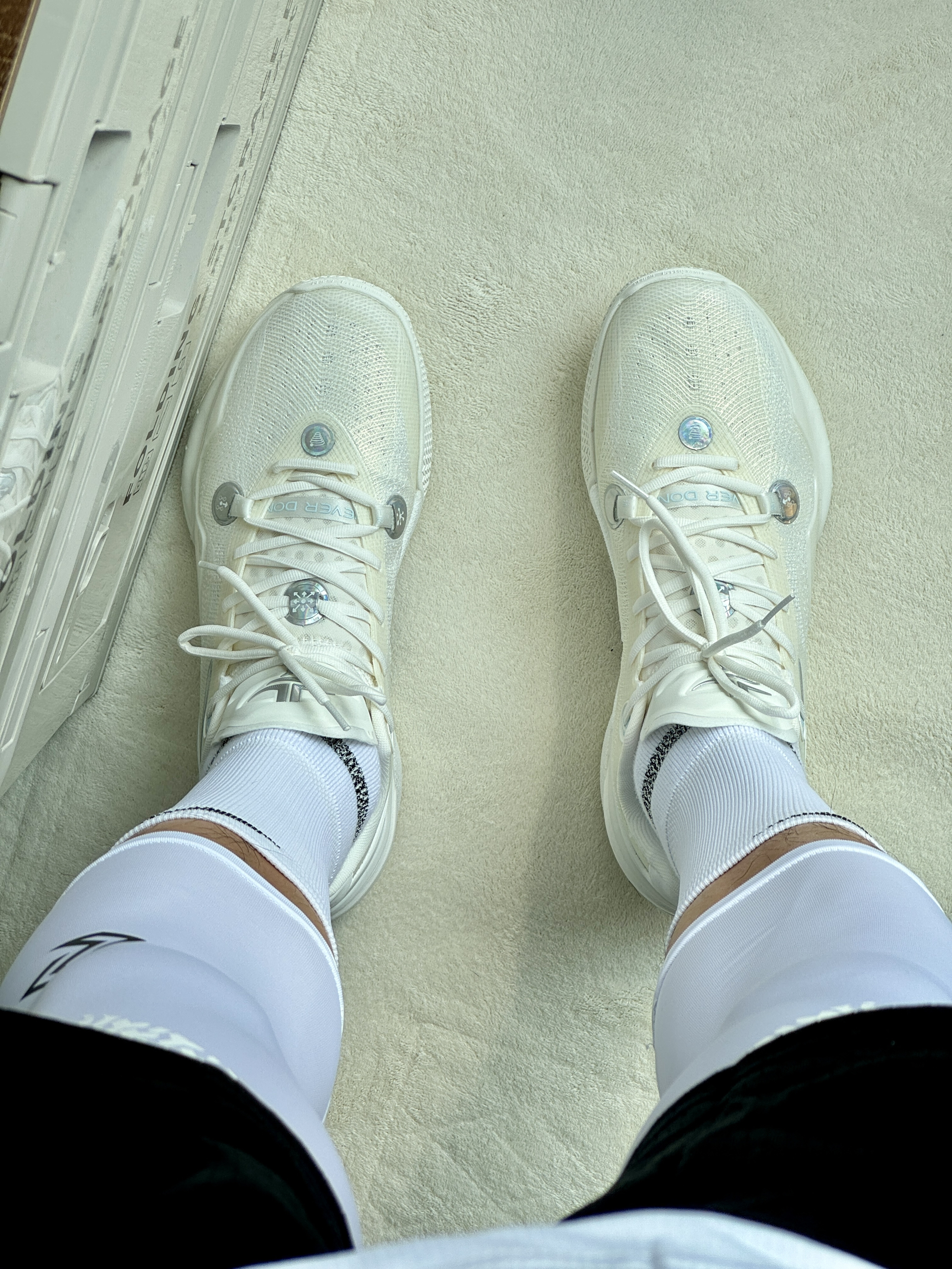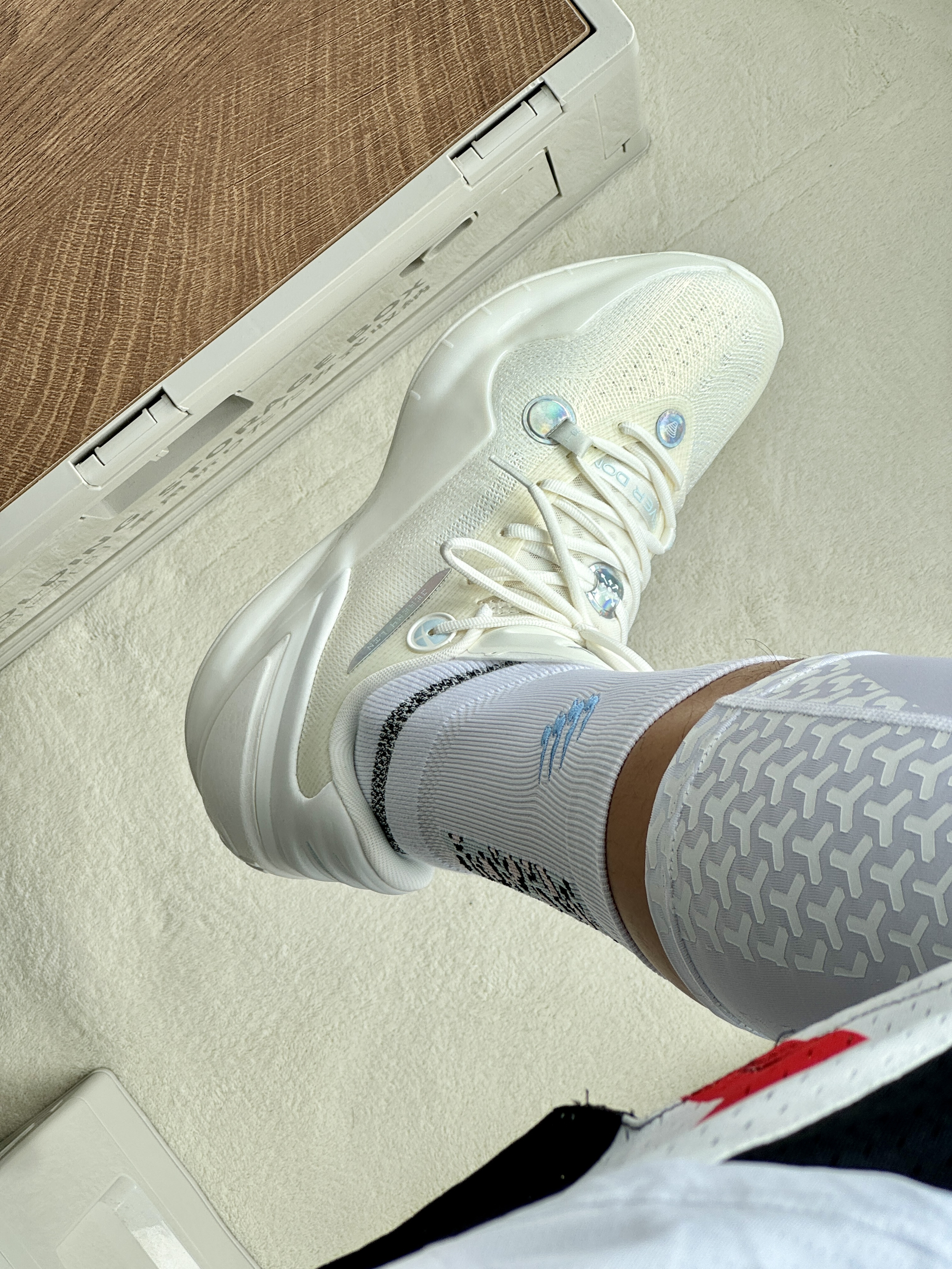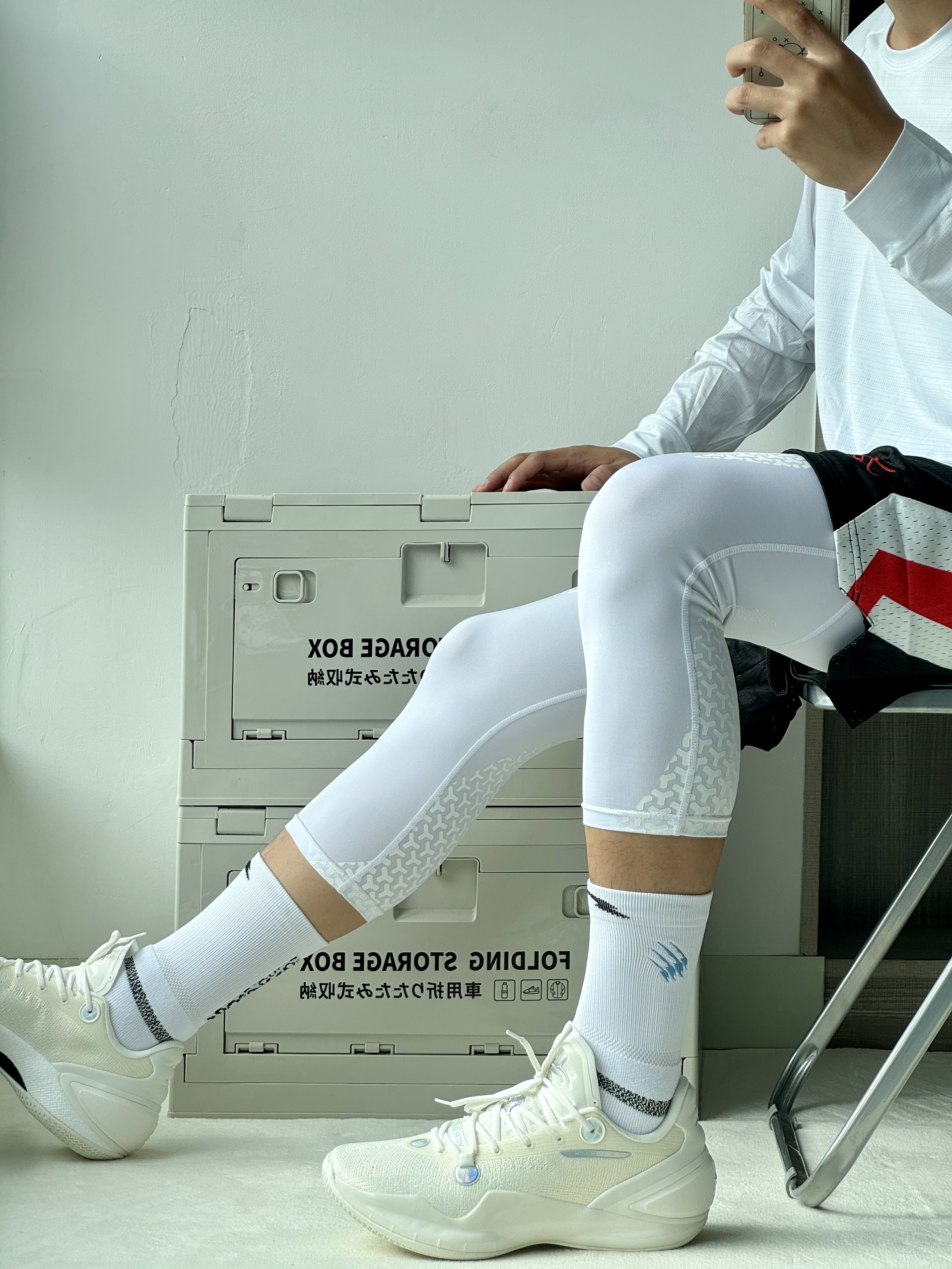 oi哈喽大家好这里是爱打球的小学生的故事又到了周末打球时间穿搭分享也来喽! 👔🩳 选择一件白蓝色速干投篮服简单好看舒适再搭配一条黑色短裤和白色紧身裤蛮百搭 👟 林书豪5自信配色整体设计很有速度感侧面tpu和纯白的鞋面上脚帅的很脚感也比较韧弹打球穿很可以