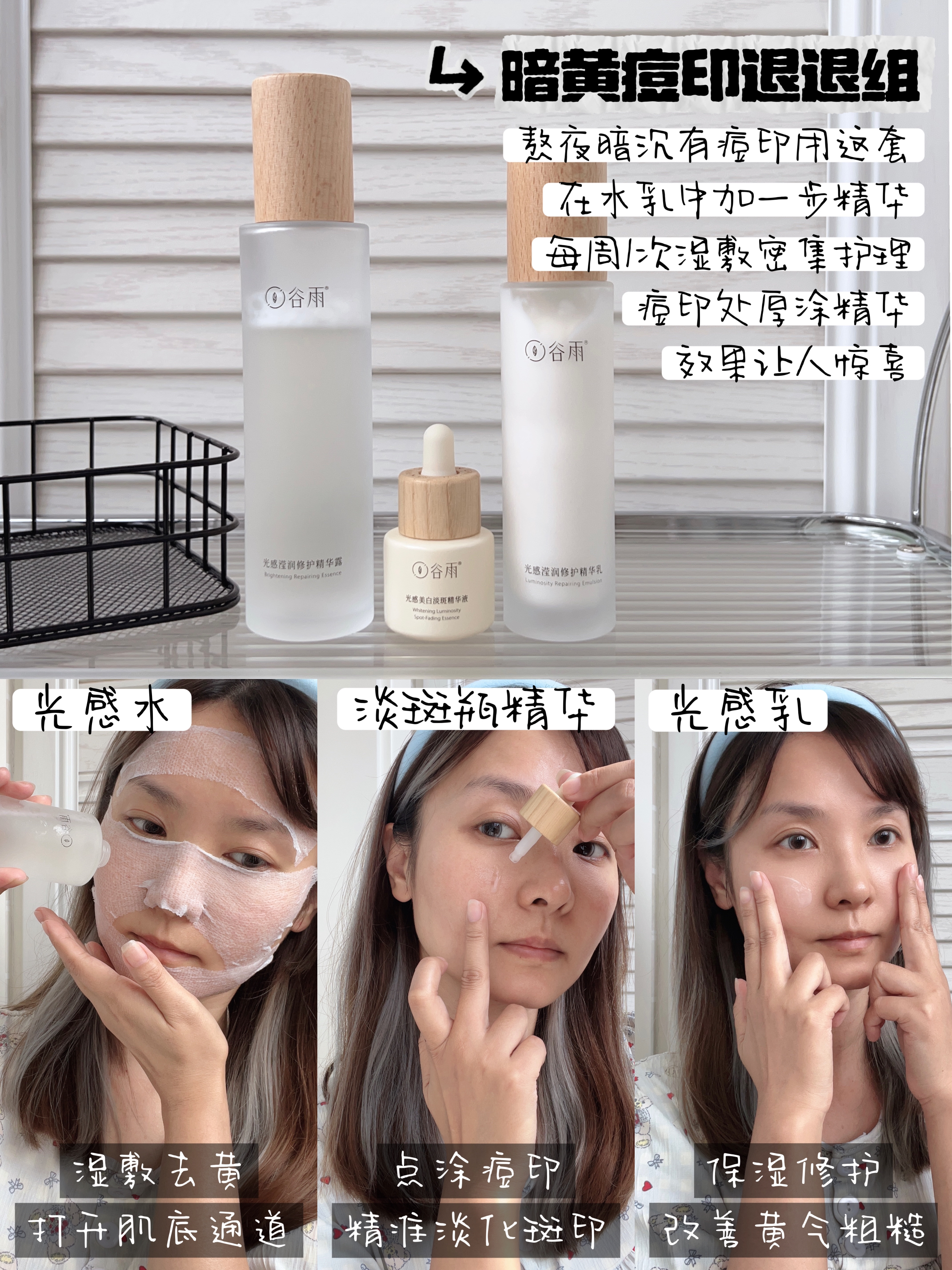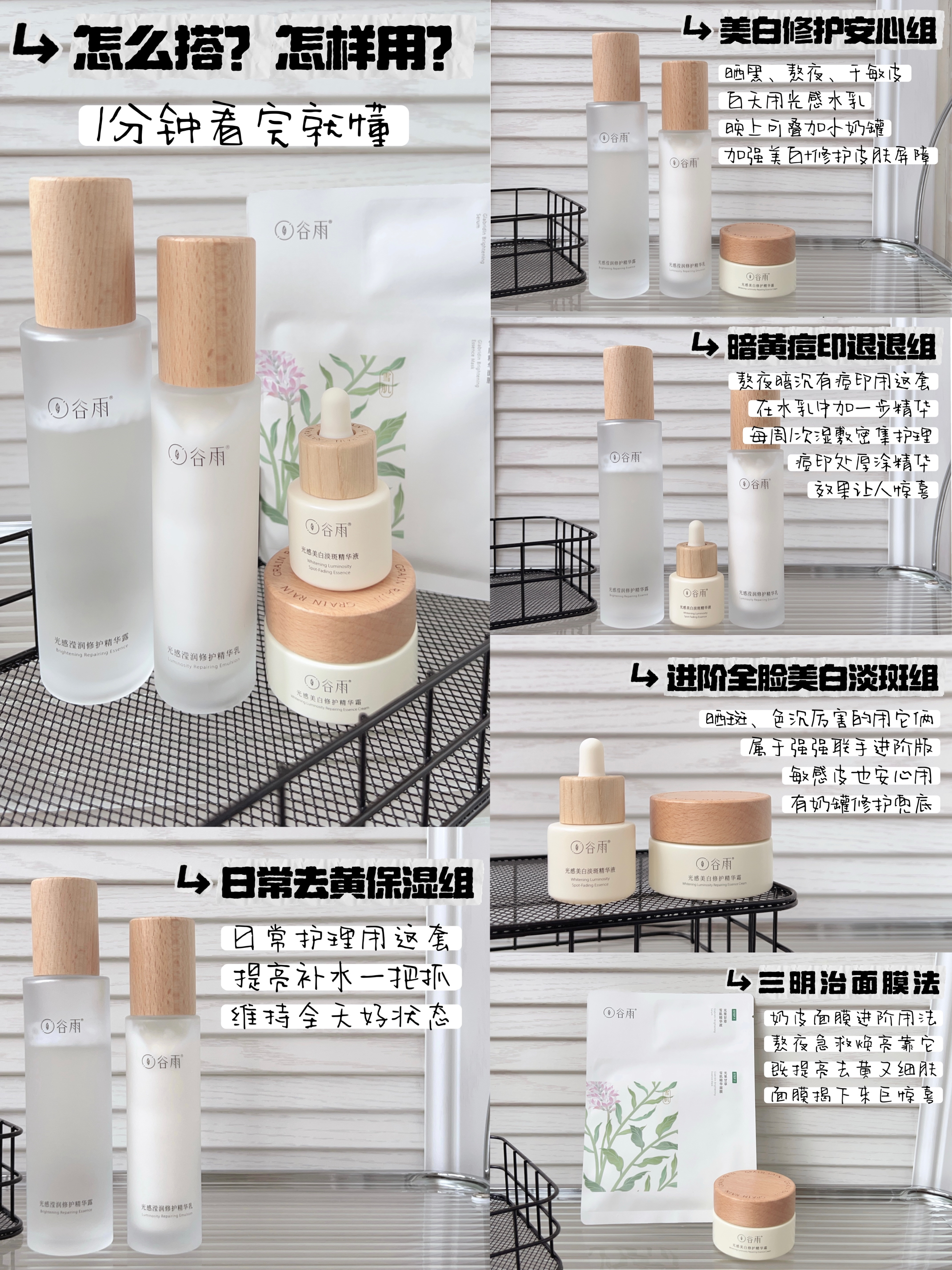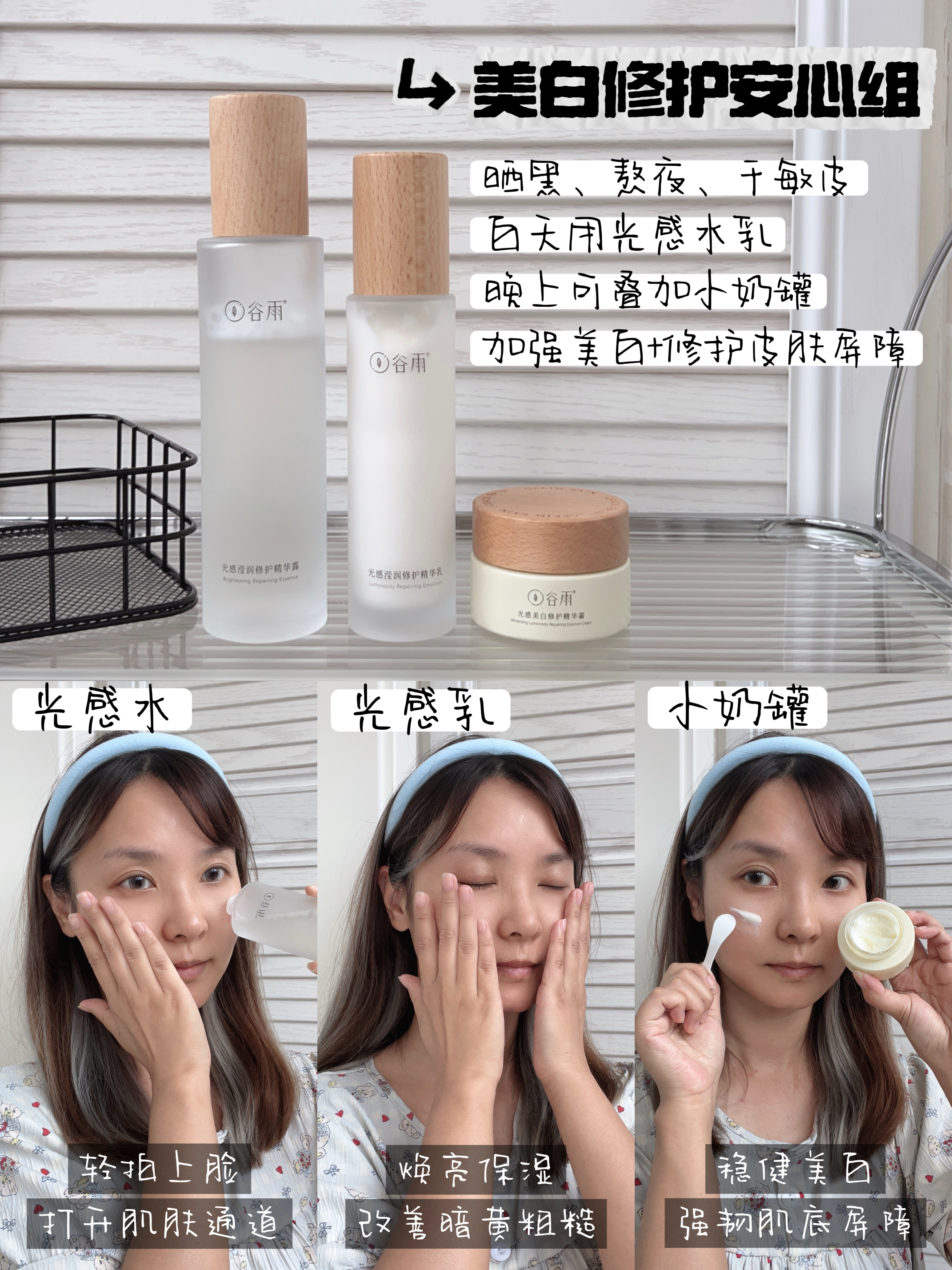 喂饭干货篇!双十一想买和已经买了谷雨光感系列的宝子请进来做功课! 作为一个谷雨老粉,光感系列我分享了好多次,本黑黄皮觉得很好用。 用过才有说服力,这回儿帮大家把光感系列的各种搭配用法,都给整理出来了! ◆日常去黄保湿组◆ 【光感水+光感乳】 暗沉肌日常精简护理就用这套,既提亮去黄,又补水保湿,足够维持一整天的水润好气色。 ◆美白修护安心组◆ 【光感水+光感乳+奶罐面霜】 平时晒黑了、经常熬夜、...