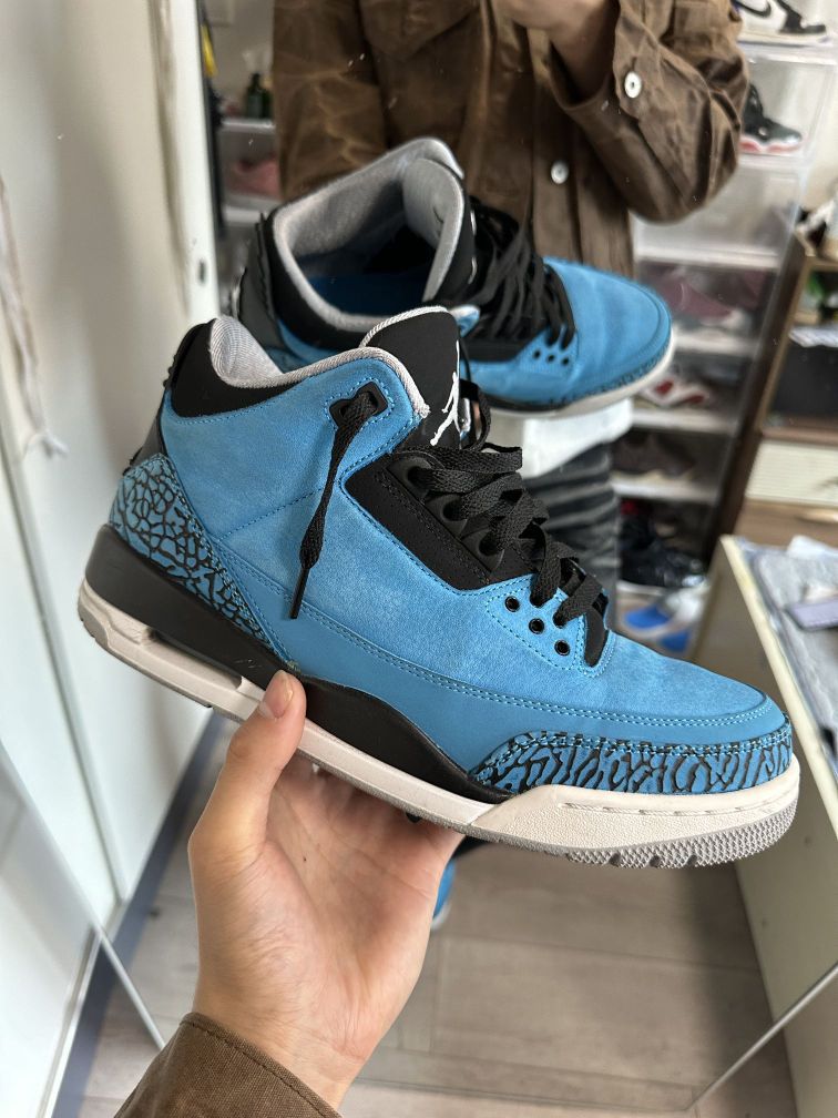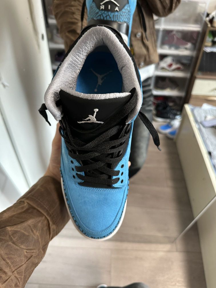 175ootd🧍♂️穿搭简介: (鞋款上脚感受,穿搭场景分享,风格分享) 今日超有范 👟球鞋:Jordan Air Jordan 3 Retro Powder Blue 阿凡达 爆裂纹 拼接 中帮 篮球鞋 男款 黑蓝色 2014年版 👕上衣:白背心 👖裤子:clf