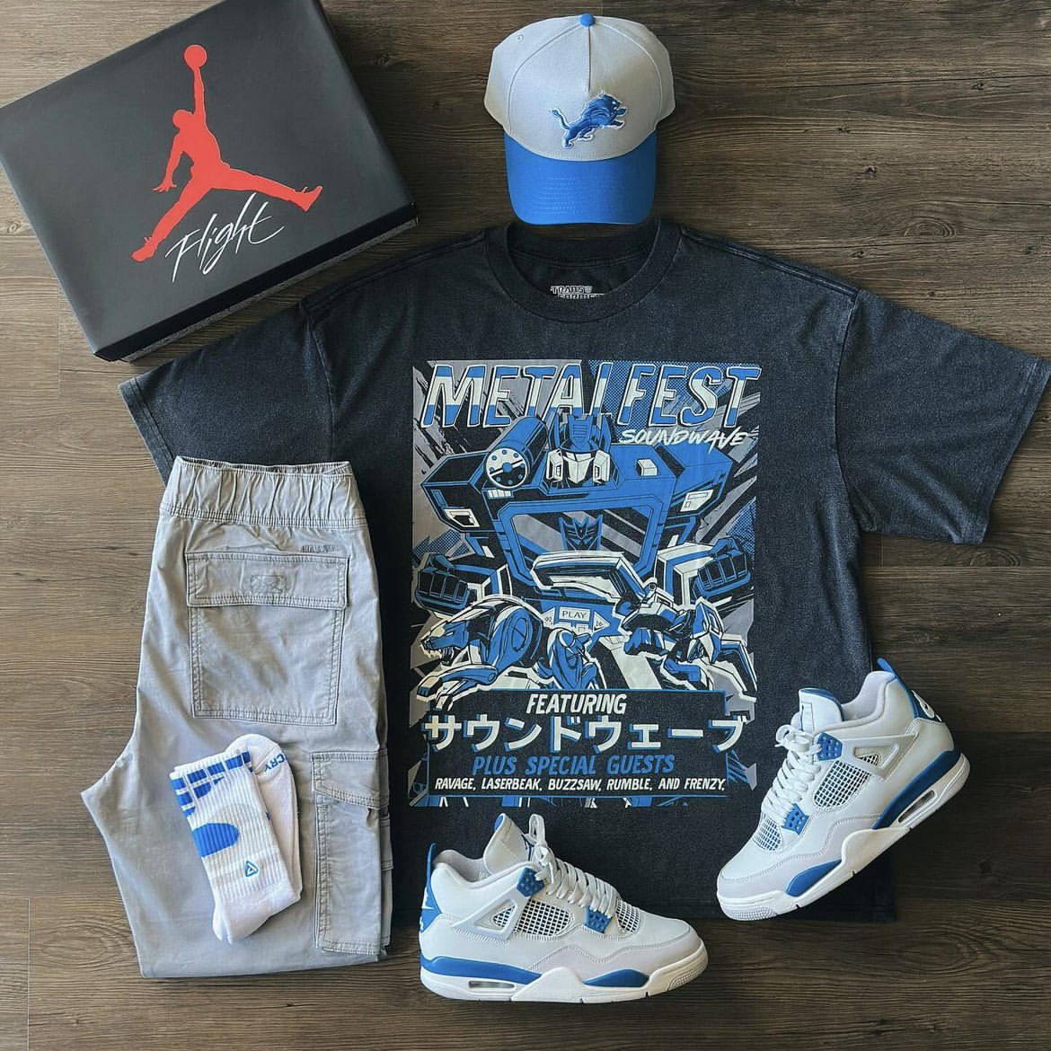 我搭配一套带有变形金刚T恤的服装。没有让我失望失望!你觉得呢,可以去试试。 2024 Air Jordan 4 Retro 'Military Blue'