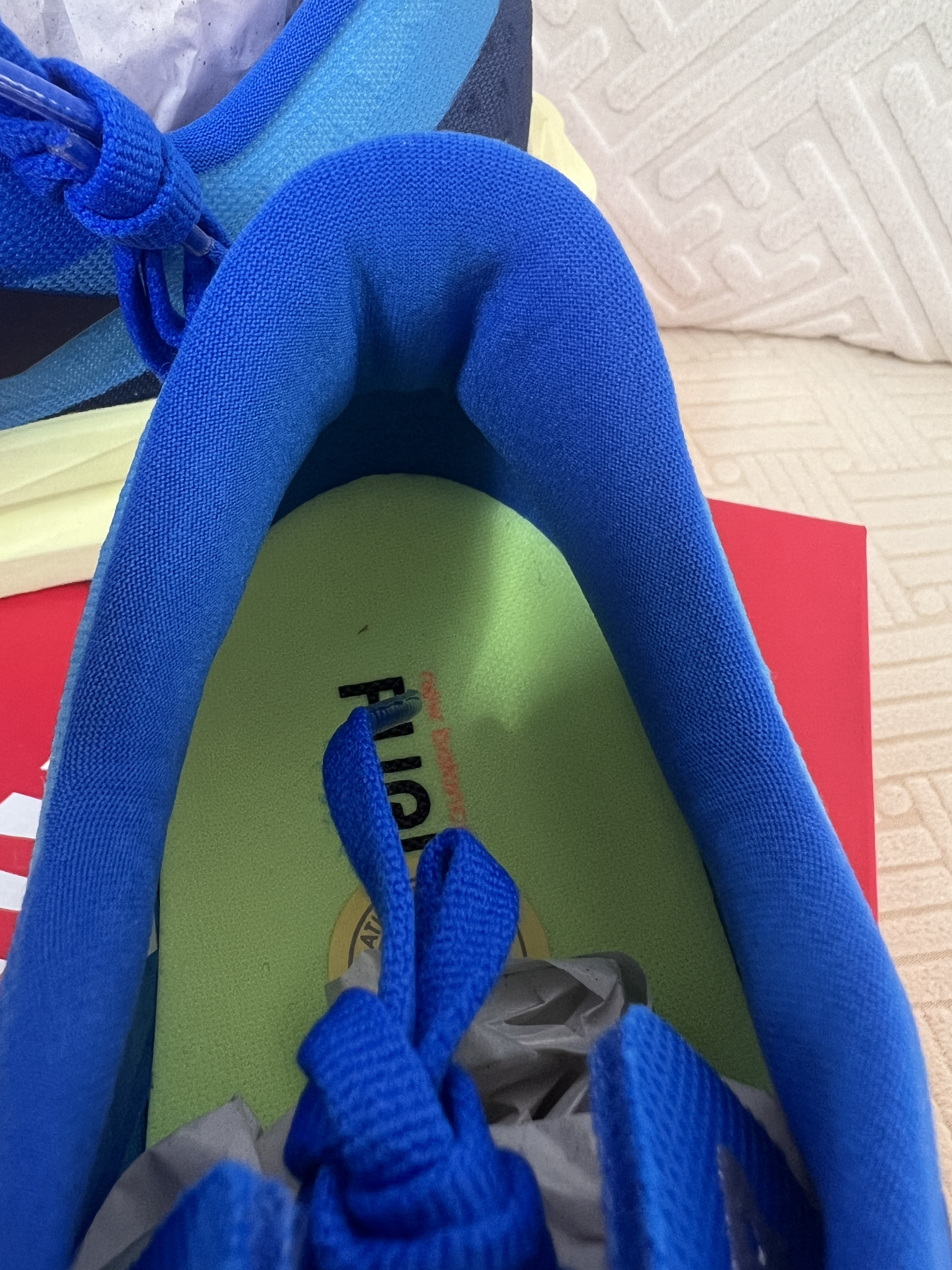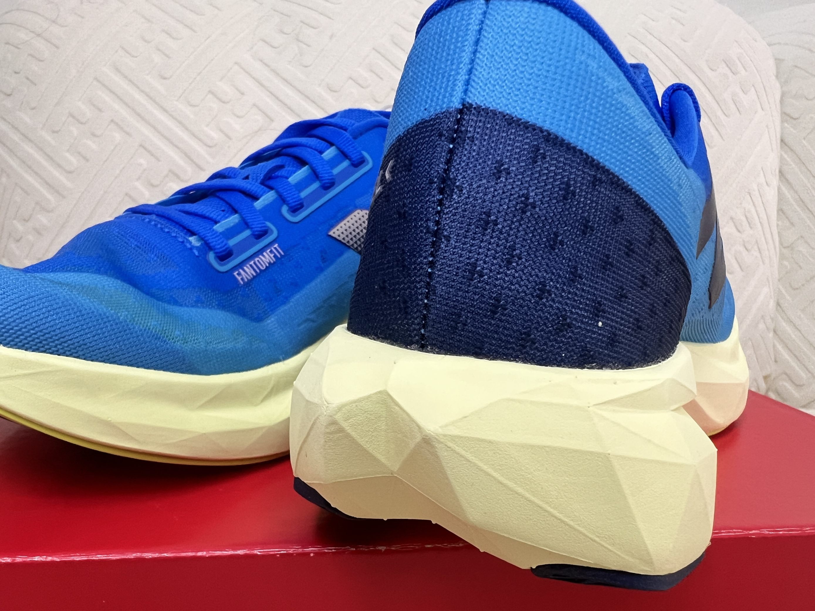 接着呢,咱得好好看看这鞋面啦。这鞋面采用的可是全新材料的工程网眼鞋面哦,用手轻轻摸上去呀,就能感觉到它那种细腻的质感呢,而且透气性那叫一个好呀,就想着要是穿着它出去跑个步啥的,这脚部在运动过程中肯定能一直保持干爽舒适的呀,毕竟谁也不想跑着跑着脚闷得难受对吧。还有哦,这搭配的薄柔夹层鞋舌,再加上Fantom Fit鞋面支撑科技,那可真是厉害啦,你看这鞋舌,稳稳地锁定在那儿,一点都不晃动呢,而且这鞋面也支撑得特别有型,不会塌陷下去,就感觉整个鞋面的设计都是为了让咱们穿着更舒服、更稳当呀。